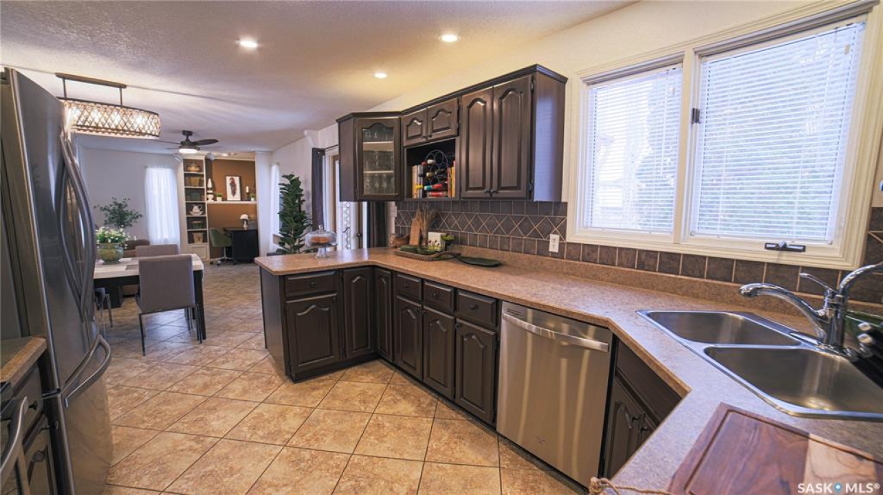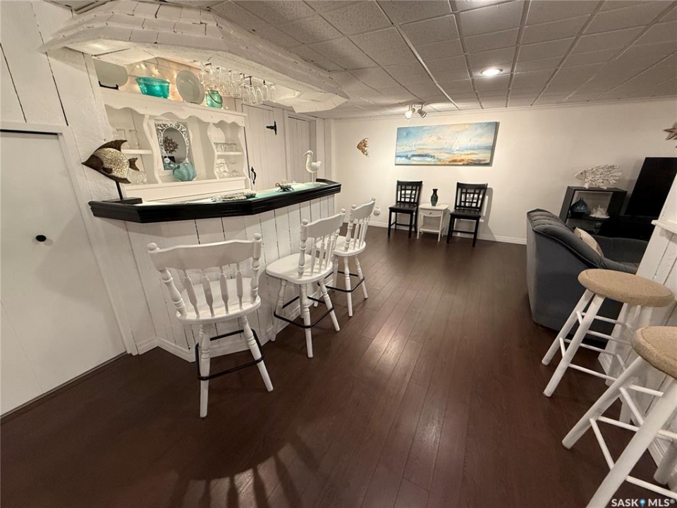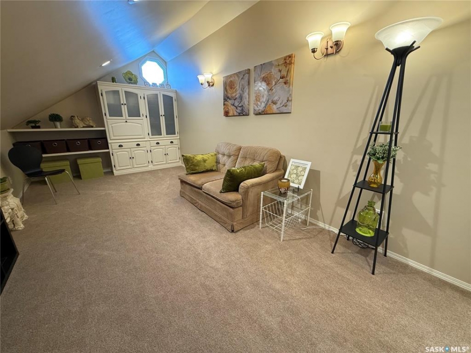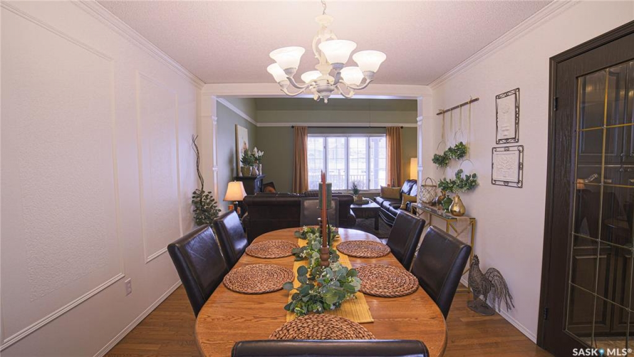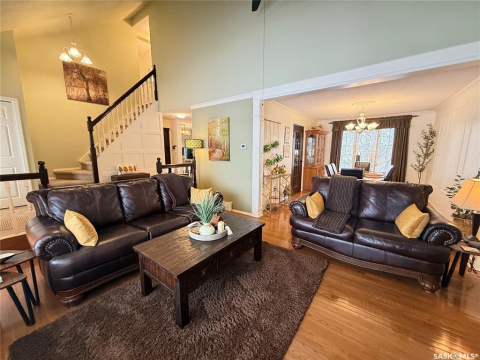 This exceptional home is a rare find in one of Estevan's most desirable neighbourhoods. Offering over 2,000 sq. ft. of living space above grade, this beautifully maintained property stands apart from the ordinary with its thoughtful layout and immaculate condition inside and out. Step into the spacious front foyer where you're immediately welcomed by soaring vaulted ceilings in the bright front living room, creating an impressive first impression. The living room flows seamlessly into the large formal dining area, perfect for entertaining. The eat-in kitchen is ideally situated between the dining room and a cozy secondary living space, providing the perfect spot to relax with family. From here, patio doors lead to the incredible backyard featuring a covered deck, mature trees, and lush foliage that creates exceptional privacy throughout the summer months. A convenient two-piece powder room and direct access to the attached double garage complete the main floor. Upstairs you'll find three generous bedrooms plus a versatile bonus room that would make an ideal playroom, office, or hobby space. The spacious primary suite features a walk-in closet and a stunning five-piece ensuite complete with a heated whirlpool tub. A second full bathroom and conveniently located laundry complete the upper level. The fully developed basement is an entertainer's dream, offering a large gathering space perfect for a dining area or pool table, a wet bar, comfortable family room with gas stove, and an additional two-piece bathroom. It's large enough for hosting gatherings while still providing a cozy space for family movie nights. Meticulously maintained from top to bottom, this one-of-a-kind home offers space, comfort, and exceptional care in every detail.