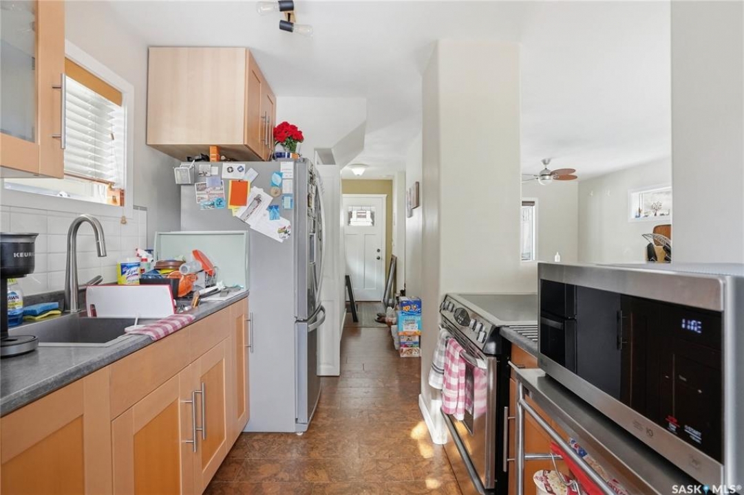Upgraded Character Home in a Prime Location - This charming character home blends classic style with thoughtful upgrades in a fantastic location close to 8th Street and the Broadway area. The bright living and dining area creates a welcoming main floor, while the efficient kitchen leads to a back deck overlooking a large private yard perfect for kids, pets, and entertaining. Established perennials include four fern peonies, raspberries, a saskatoon bush, and a small strawberry patch. The backyard also offers space for a future garage off the alley, with a quote available for a finished 1.5-car garage. The basement has been renovated for improved ceiling height and features an egress window and a convenient 3-piece bathroom, creating additional living space. This home has seen many important upgrades in recent years, including eavestrough improvements (2022–2023), a new 96% efficiency York furnace, York central air conditioner, hot water heater, and expansion tank installed in 2022 by Centennial Plumbing, along with an EcoBee smart thermostat. A radon test completed in 2022 confirmed levels below 200 Bq/m � during winter testing. Additional improvements include hardwired Cat-7 ethernet to the living room (2022), a high-efficiency fridge with professional water line installation (2022), a backyard storm/screen door (2022), and new city water and sewer lines with residential connections and electrical grounding plate (2022). Further updates include a basement bathroom fan and toilet (2023) and new basement handrail, washing machine water lines, and dryer duct (2024). Several custom furnishings are also included: IKEA soft-close closet system in the primary bedroom, IKEA Nordli storage platform queen bed frame, custom Peach + Poppy refinished bathroom dresser, kitchen bar cart and microwave, and backyard storage shed. A well-maintained home with major upgrades already completed. Move in and enjoy this beautiful property in a highly desirable neighbourhood.