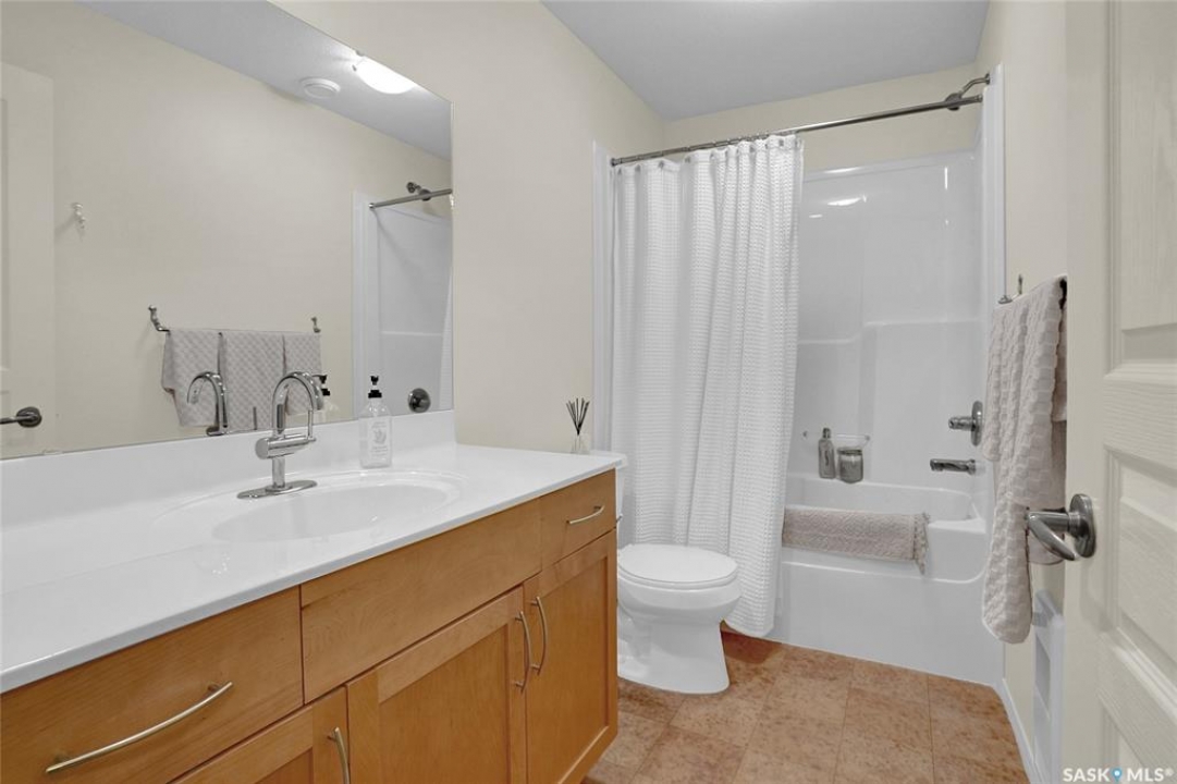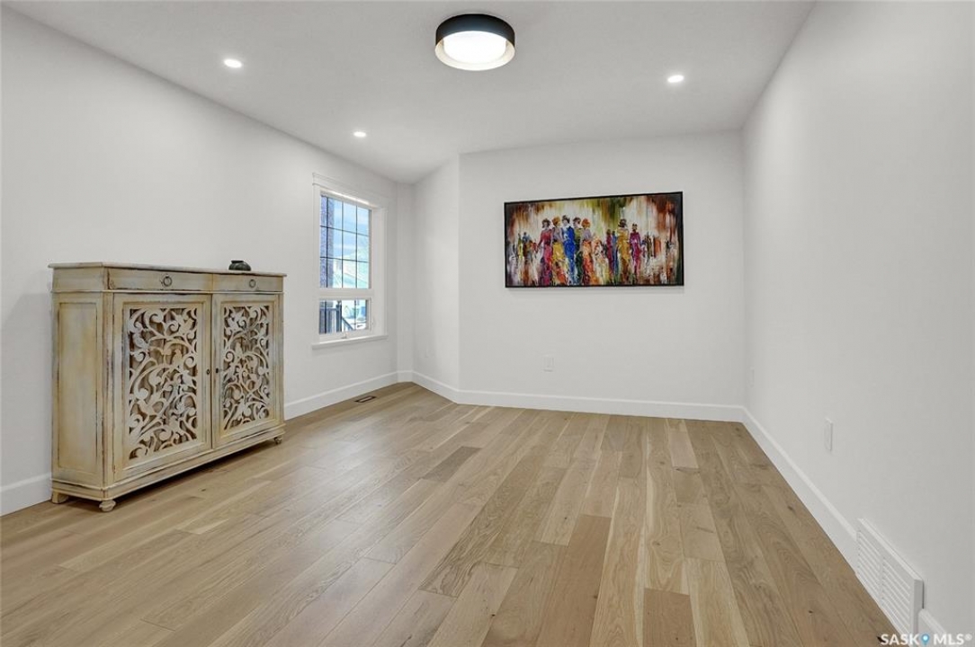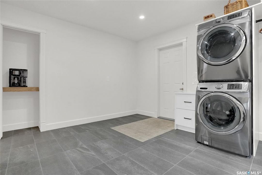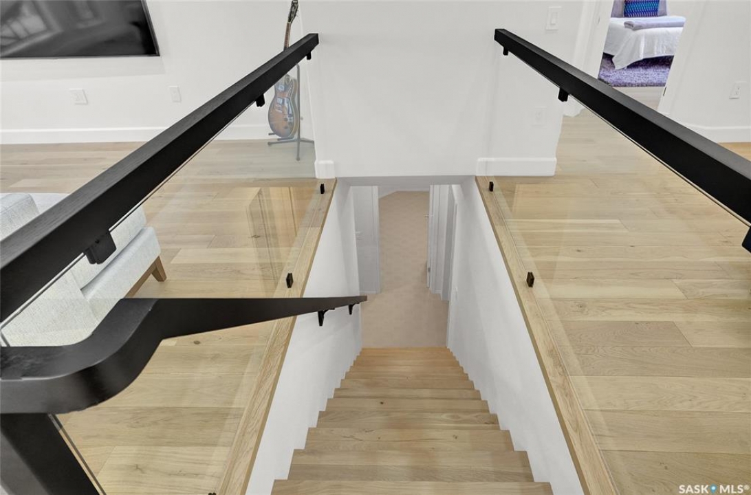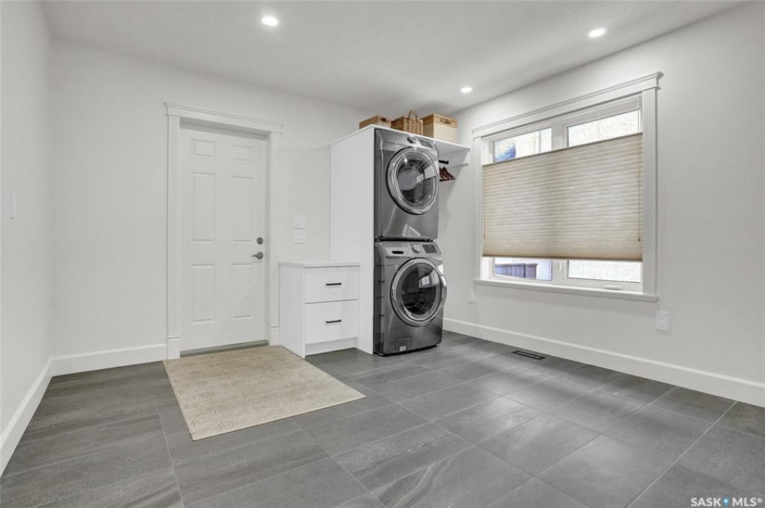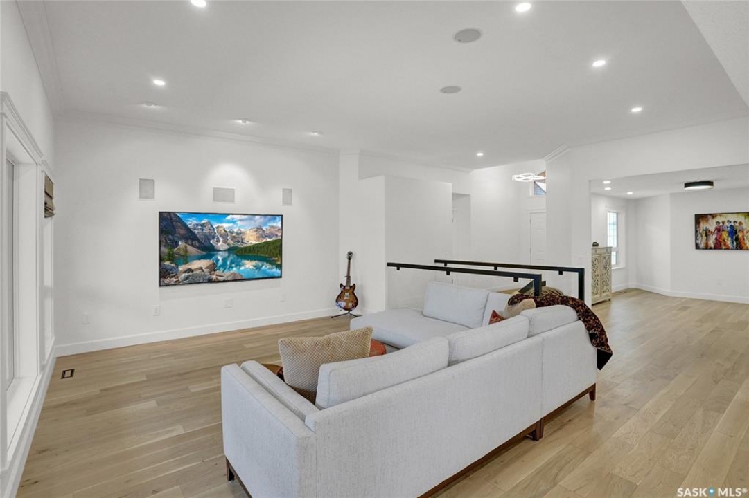 Absolutely stunning 1,922 sq. ft. bungalow backing onto a park in Wascana View. This beautifully updated home offers a bright, open-concept floor plan and has undergone extensive main floor renovations. The main level features all new flooring with white engineered oak by Burkhardt Bros., including custom stair nosing, along with new tile flooring in the bathrooms and mudroom. The completely renovated dream kitchen showcases custom cabinetry by Grace & Mave, a Kraus sink, large island with quartz countertops and quartz backsplash wall, glass accent cabinets, floating shelves, and high-end Bosch stainless steel appliances including a gas cooktop. A spacious eating area overlooks the backyard and park, with a garden door leading to a screened-in deck, perfect for relaxing or entertaining. A formal dining room or main floor office adds flexibility to the layout. The main floor also features all new lighting and updated 6-inch baseboards throughout. The large primary bedroom includes a custom Clutter-X closet and a beautifully renovated spa-like ensuite featuring a dual-sink vanity with automatic under-cabinet lighting, heated tile floors, large zero-entry glass shower, freestanding tub, and private water closet. The second bedroom offers two closets and direct access to the main floor stylish three-piece bathroom. New glass railing, new woodwork and white oak HW on stairs to lower level that is partially developed with a third bedroom, den, and full bathroom offering plenty of additional living space. Additional highlights include a spacious mudroom/laundry area with new tile flooring and cabinetry and direct entry to the insulated and drywalled double attached garage. This is truly a wonderful home in show home condition!