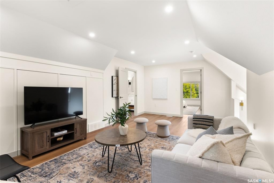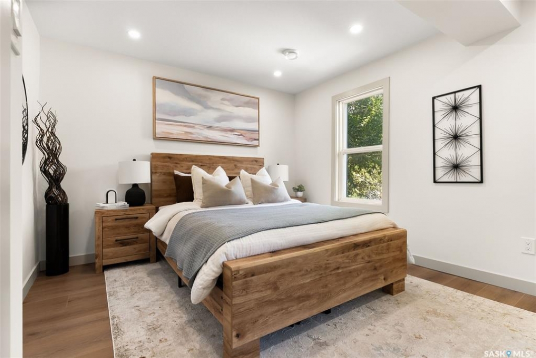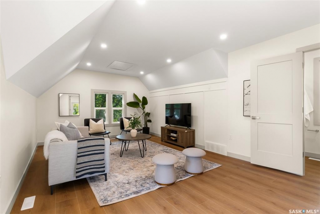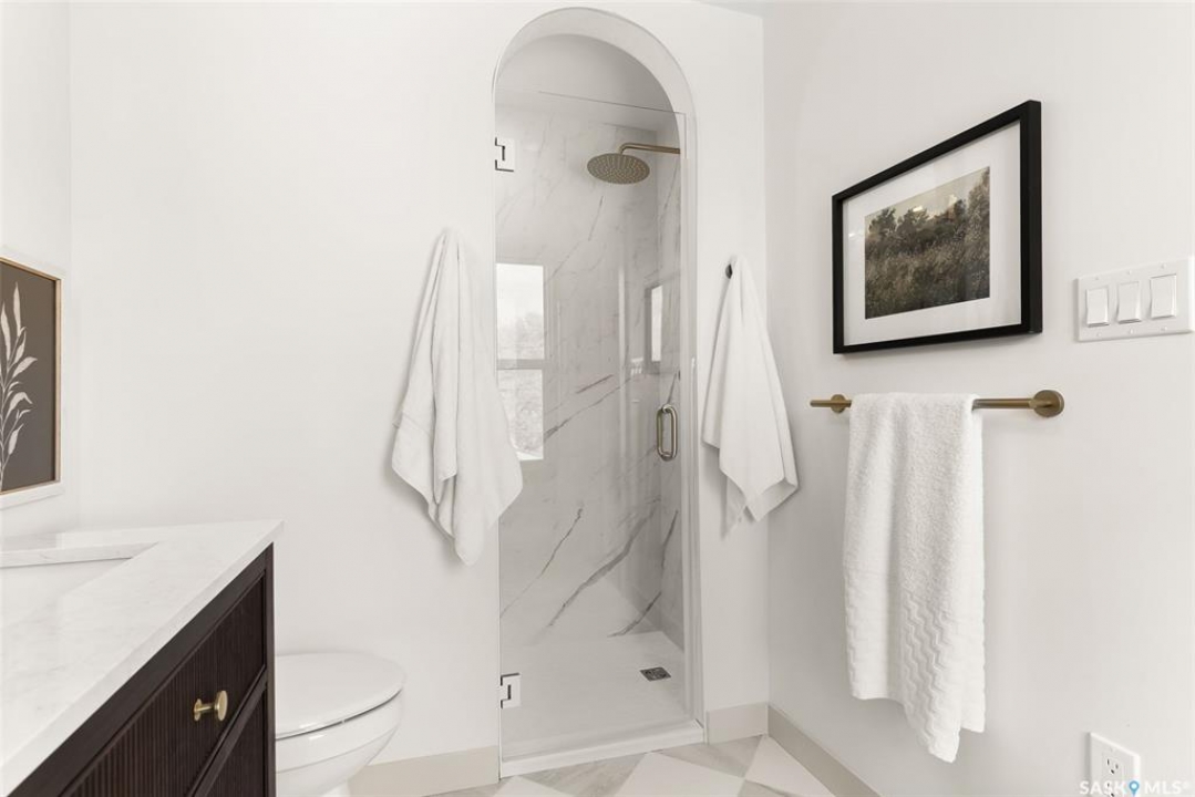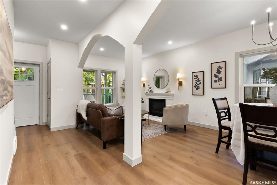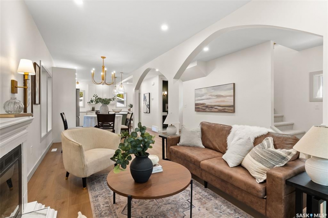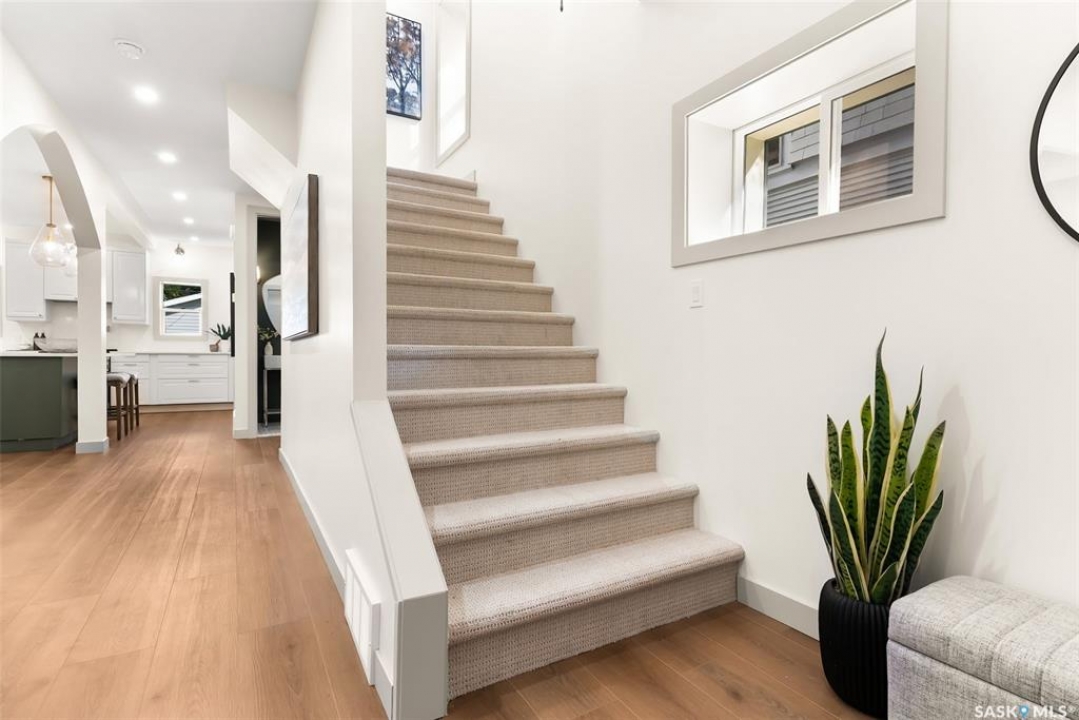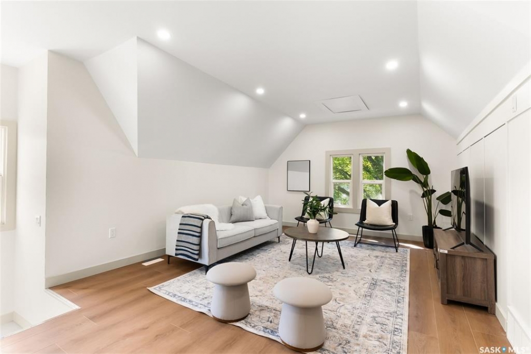 Welcome to 2257 Rae Street, an absolutely stunning and newly renovated home nestled in Regina's sought-after Cathedral neighbourhood. This 2,059 sq. ft. two-and-a-half storey residence beautifully blends timeless character with modern upgrades, offering exceptional style and function across four levels of living space. Inside, the main floor features an inviting foyer that sets the tone with wide-plank flooring, elegant archways, and an open-concept design that flows seamlessly from the living room complete with a cozy fireplace, leading into the dining area and showpiece kitchen. The chef's kitchen features quartz counters, sleek finishes, beautiful overhead lighting, custom cabinetry and plenty of space for both everyday living and entertaining. A convenient 2-piece bath and mudroom complete this level. Upstairs, you'll find three spacious bedrooms, including a primary retreat with its own spa-inspired ensuite showcasing dual vanities, gold fixtures, and a walk-in glass shower, plus a full 4-piece bathroom. The third level offers a large recreation room and a fourth bedroom, along with a 3-piece bathroom—perfect for a growing family or guest accommodations. The finished basement provides even more space with a cozy family room. Throughout the home, every detail has been thoughtfully updated, from designer lighting to fresh trim and fixtures. Outside, the property sits on a generous 4,993 sq. ft. lot with a deck, fenced yard, and lane access. The double detached garage with additional off-street parking ensures practicality matches the beauty of the home. Located in the heart of Cathedral, you'll be steps away from coffee shops, local dining, parks, and schools—truly the perfect blend of character, community, and contemporary living. This is a rare opportunity to own a completely renovated home in one of Regina's most beloved neighbourhoods.