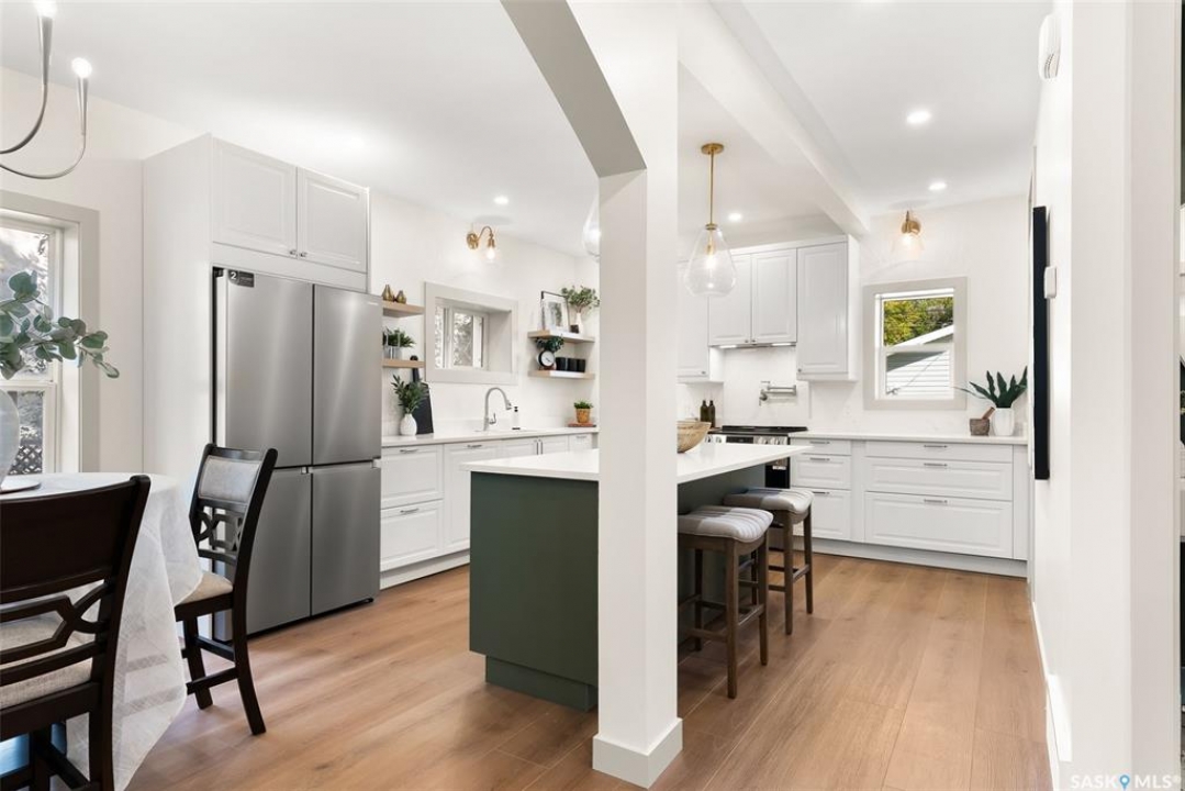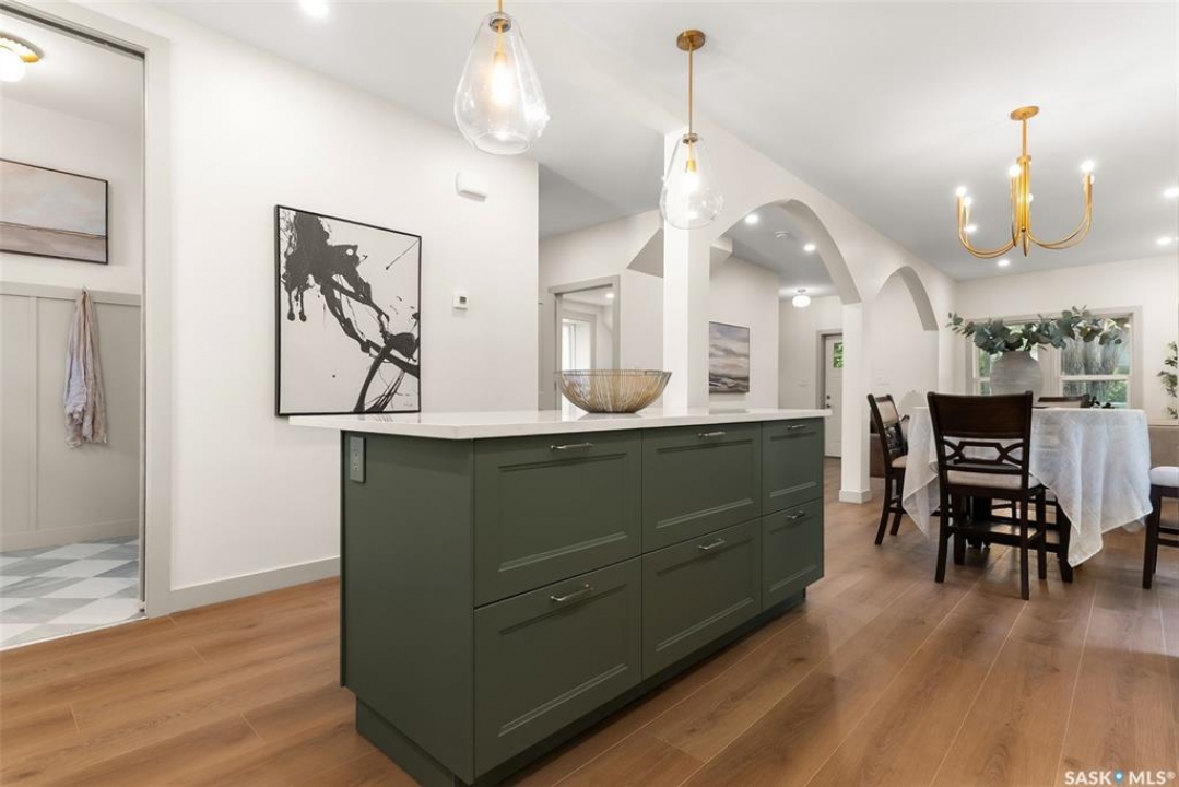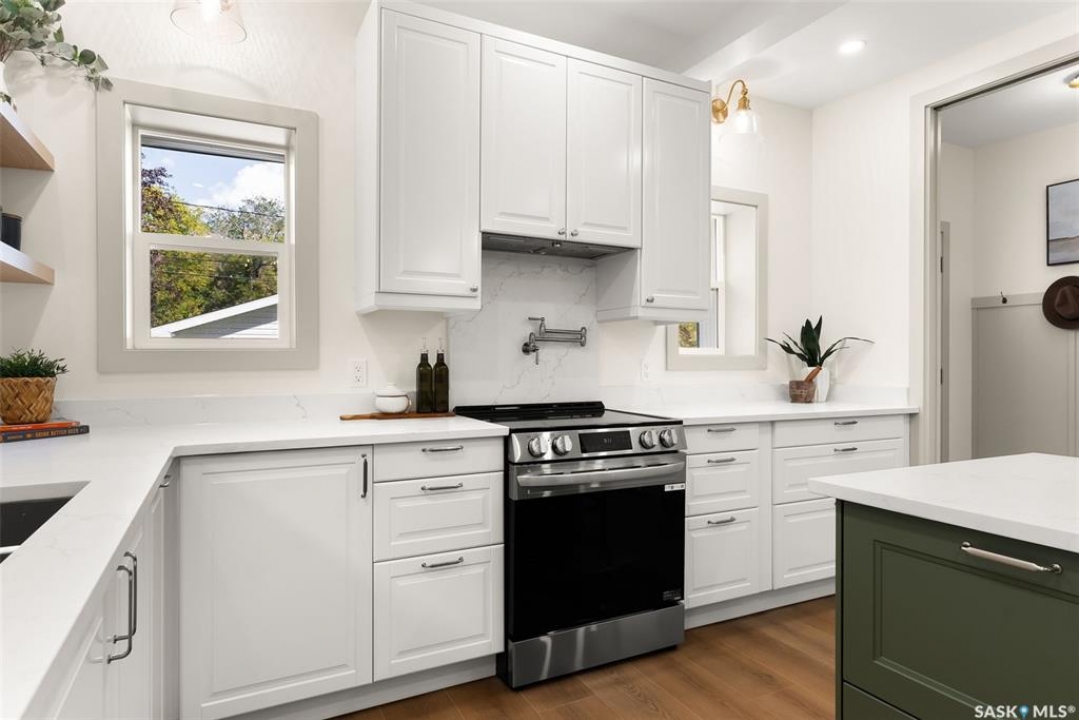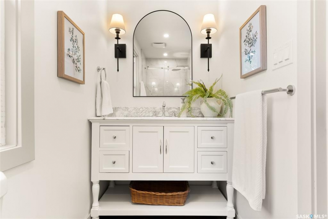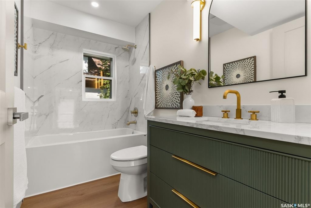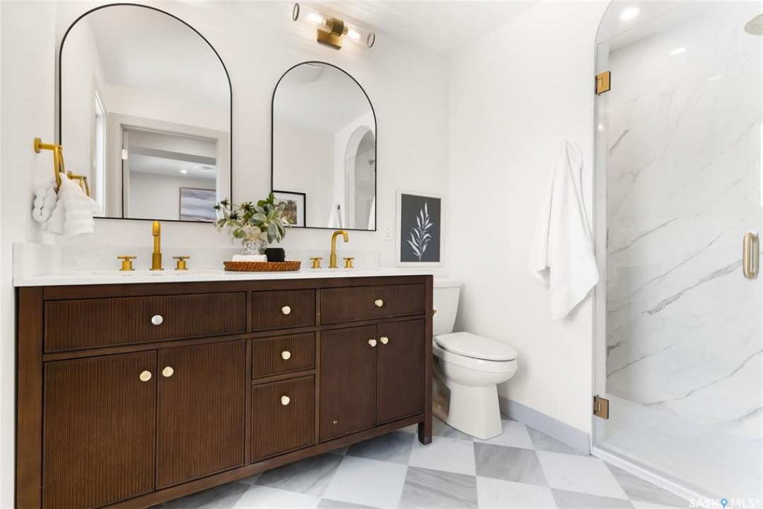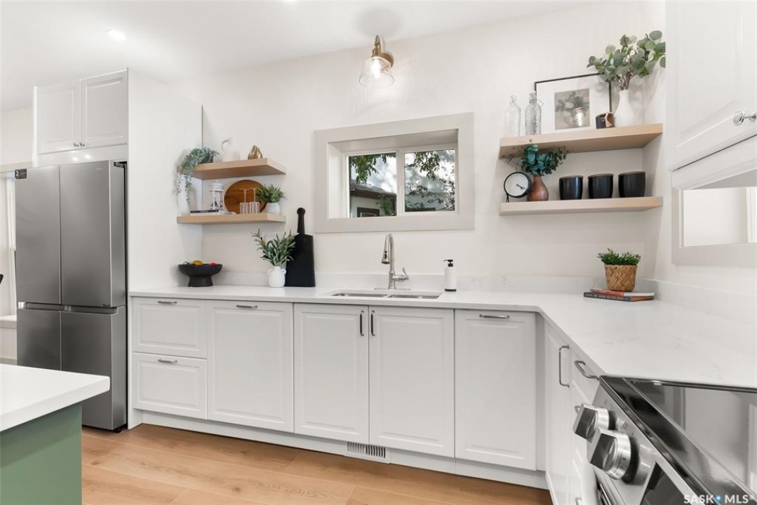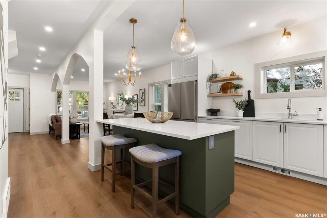 Welcome to 2257 Rae Street, an absolutely stunning and newly renovated home nestled in Regina's sought-after Cathedral neighbourhood. This 2,059 sq. ft. two-and-a-half storey residence beautifully blends timeless character with modern upgrades, offering exceptional style and function across four levels of living space. Inside, the main floor features an inviting foyer that sets the tone with wide-plank flooring, elegant archways, and an open-concept design that flows seamlessly from the living room complete with a cozy fireplace, leading into the dining area and showpiece kitchen. The chef's kitchen features quartz counters, sleek finishes, beautiful overhead lighting, custom cabinetry and plenty of space for both everyday living and entertaining. A convenient 2-piece bath and mudroom complete this level. Upstairs, you'll find three spacious bedrooms, including a primary retreat with its own spa-inspired ensuite showcasing dual vanities, gold fixtures, and a walk-in glass shower, plus a full 4-piece bathroom. The third level offers a large recreation room and a fourth bedroom, along with a 3-piece bathroom—perfect for a growing family or guest accommodations. The finished basement provides even more space with a cozy family room. Throughout the home, every detail has been thoughtfully updated, from designer lighting to fresh trim and fixtures. Outside, the property sits on a generous 4,993 sq. ft. lot with a deck, fenced yard, and lane access. The double detached garage with additional off-street parking ensures practicality matches the beauty of the home. Located in the heart of Cathedral, you'll be steps away from coffee shops, local dining, parks, and schools—truly the perfect blend of character, community, and contemporary living. This is a rare opportunity to own a completely renovated home in one of Regina's most beloved neighbourhoods.