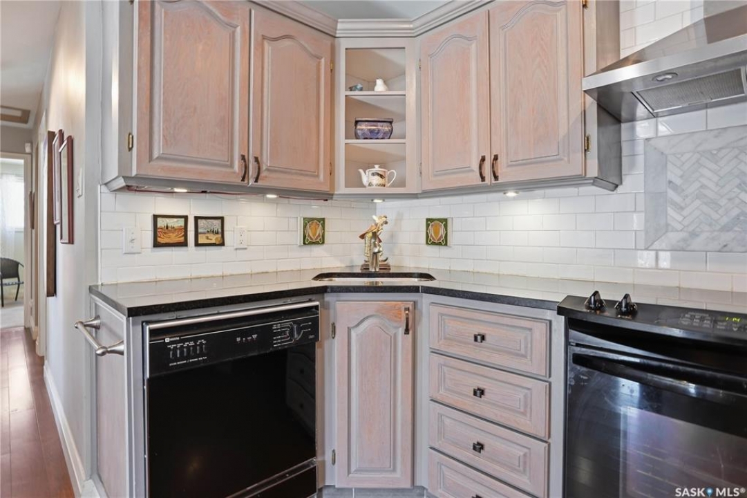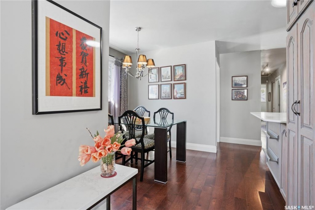 Welcome to this beautifully updated, move-in ready home filled with natural light throughout. This charming property features three comfortable bedrooms, all with good-sized closets with carpeting. The primary bedroom includes patio doors installed in 2017 and lovely built-in organizers in the closet. The home offers 4-piece bathrooms with a newer tub surround. newer interior doors and baseboards that add a fresh, modern touch to this home. The updated kitchen features attractive cabinetry with marble and granite countertops, appliances with hood fan (2014), and convenient under mount lighting. The living room, kitchen, and dining area showcase beautiful engineered birch hardwood flooring (2014). Additional upgrades include updated windows throughout. The basement offers a non-regulation suite, featuring a spacious studio layout with an egress window, cork flooring for added warmth, a 4-piece bathroom added in 2014, plus fridge and stove (2014). Exterior improvements include vinyl siding, deck, fencing, and an asphalt driveway, providing great curb appeal and functionality. Major infrastructure updates were completed by the City between 2020–2021, including new sidewalks and upgraded water and sewer lines.