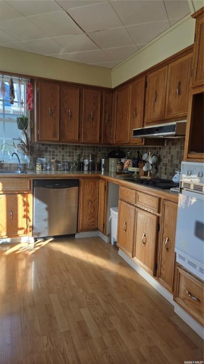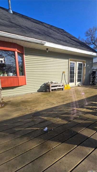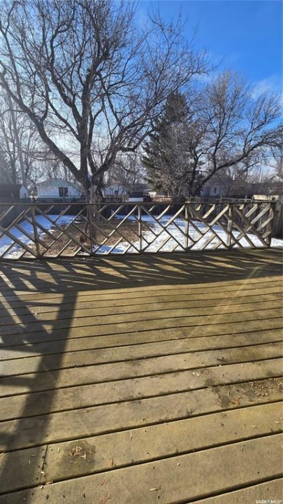 This home is ready for the next person to move in and love it. This three bedroom home is on a mature lot that includes a completely fenced back yard with lots of privacy. Enter the front door and the uniqueness of this home is immediately apparent in the welcoming porch that opens to a large living room and dining room. Lots of natural light in these areas that extend to the large back deck that is perfect for entertaining in this quiet neighborhood. The kitchen also maintains this natural lighting and goes one step further with a large bay window. There is tons of cupboard space and a bonus walk in pantry. The main bedroom and bathroom complete with jetted tub finish the main floor. Upstairs are two more spacious bedrooms perfect for families or extra guests. The partially finished basement contains an oversized family room, utility room, laundry, and more storage. 2026 furnace. On demand water heater. This is a great starter home. Priced to sell!