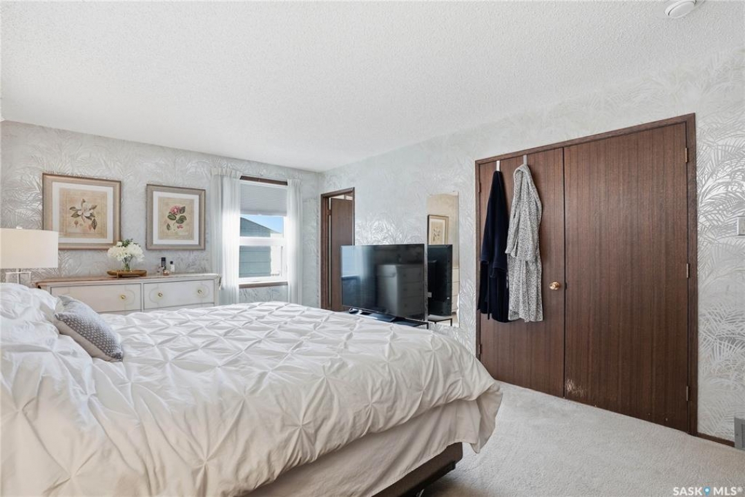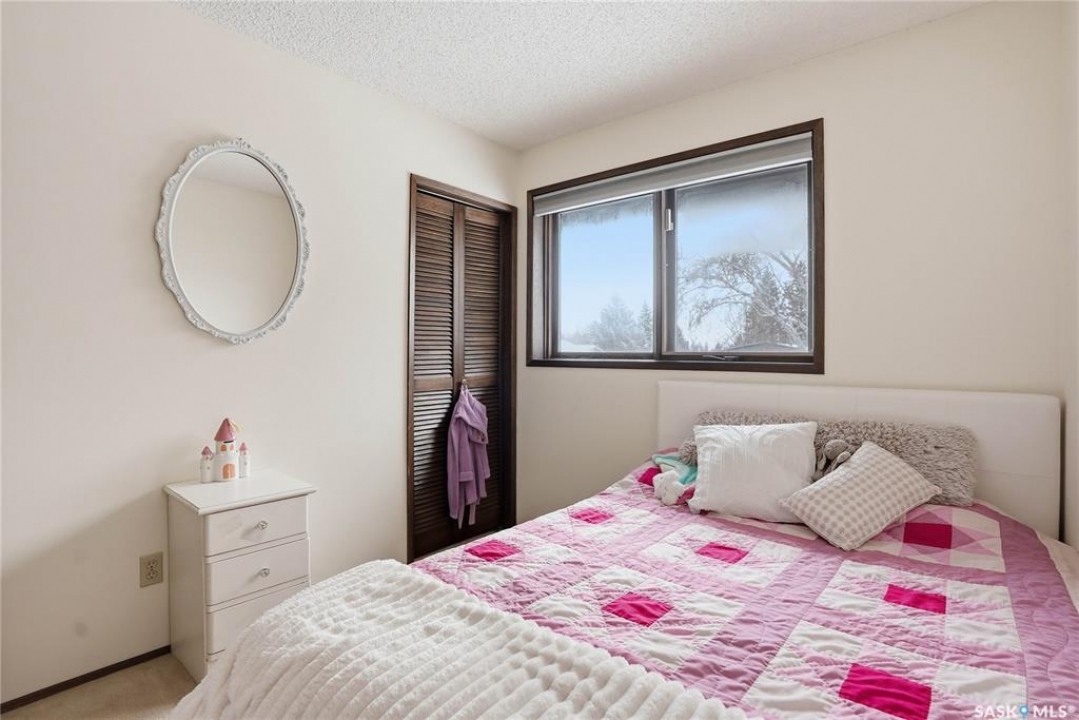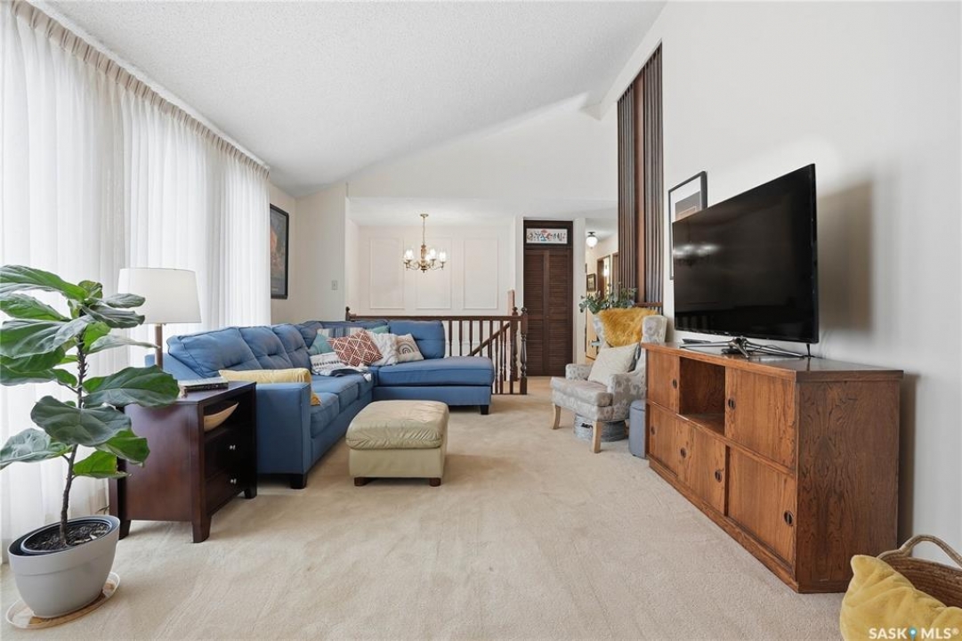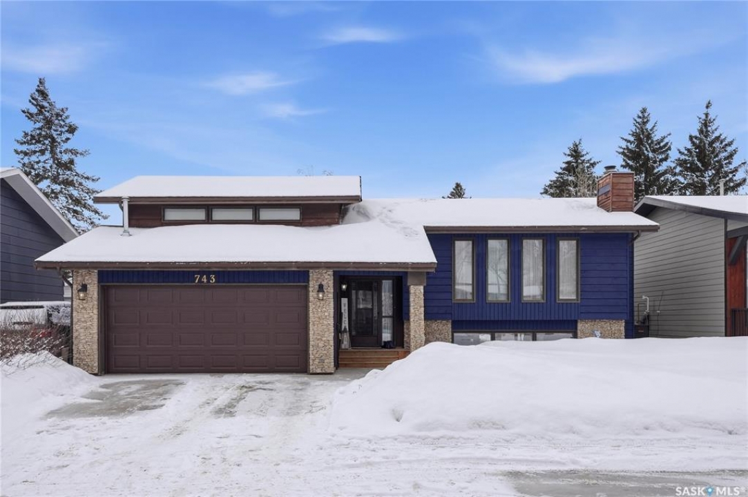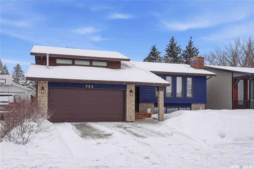 Located in the heart of highly sought-after River Heights, 743 Coppermine Crescent offers a fantastic opportunity to own a spacious family home in one of Saskatoon's most established neighbourhoods. Known for its mature trees, quiet streets, and proximity to the Meewasin river valley trails, River Heights remains one of the city's most desirable areas for families. This modified bi-level offers 4 bedrooms, 3 bathrooms, and over 1,300 sq ft on the main and upper levels. The layout is both functional and spacious, featuring vaulted ceilings and a bright main living area. The kitchen and dining space provide direct access to the deck through patio doors, creating an easy indoor-outdoor flow. The primary bedroom is privately located above the garage and includes its own 3-piece ensuite. With its vaulted ceilings and generous living spaces, the home reflects the character of its era and offers excellent potential for buyers to update over time or lean into its mid-century influence. The fully finished basement adds even more living space with a large family room, recreation area, fourth bedroom, and an additional 3-piece bathroom. Numerous mechanical updates provide excellent peace of mind, including a new furnace, tankless water heater, HRV system, and central air conditioning. In 2023, additional improvements included tree removal, a new driveway, and a heater installed in the double attached garage. The natural wood-burning fireplace has also been recently serviced. Additional updates include fresh paint throughout and new light fixtures in the bathrooms. The home sits on a mature lot with a fully fenced backyard, deck with composite decking and aluminum railing, and garden shed. Conveniently located near elementary and high schools, parks, Lawson Heights Mall, and numerous amenities, this is a fantastic opportunity to own a well-maintained home in a prime River Heights location. Presentation of offers Monday, March 16 at 6:00pm.