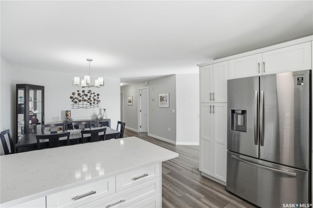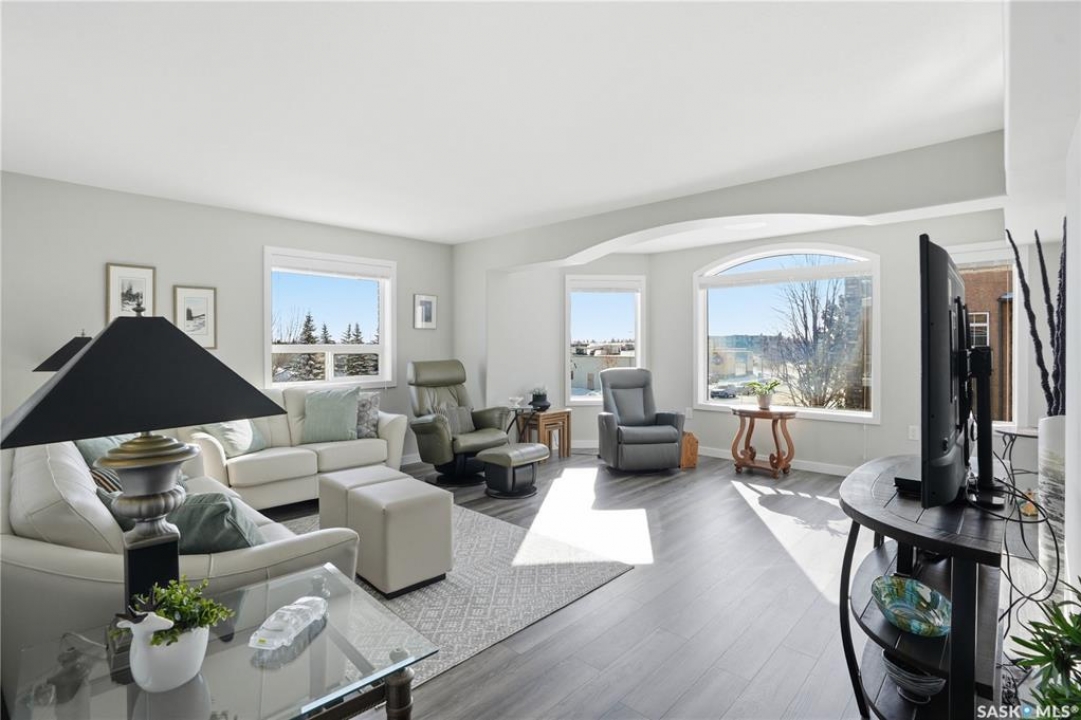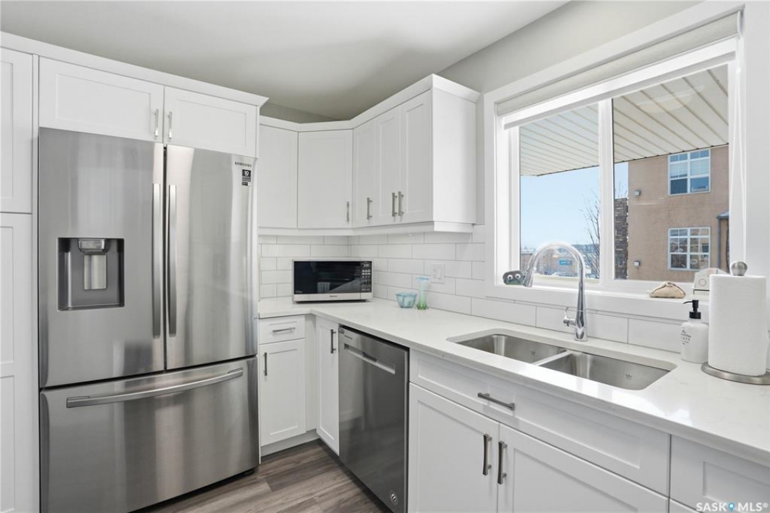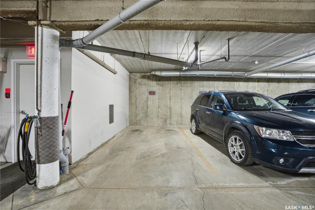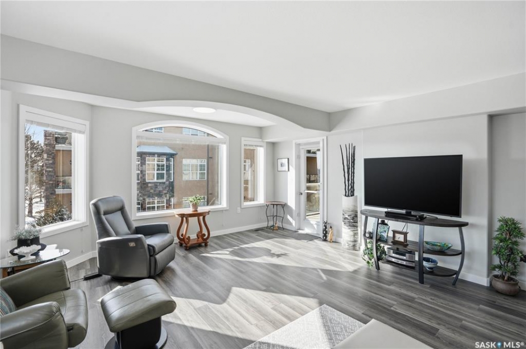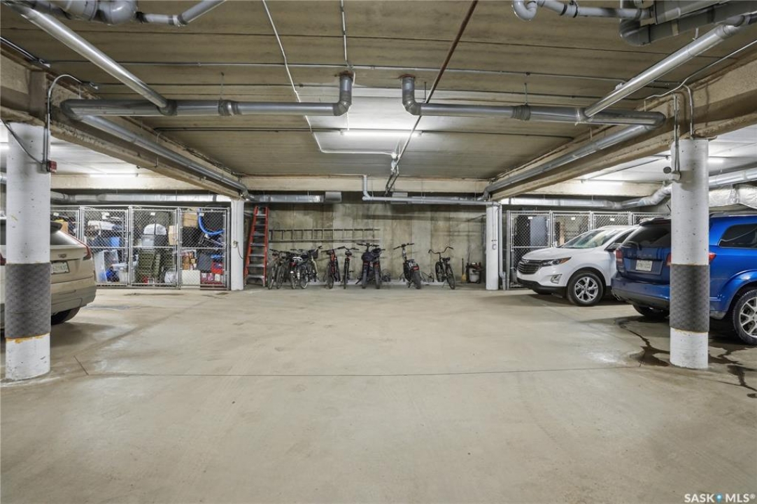 Welcome to #201 – 230 Heath Avenue, located in the highly sought-after University Heights neighbourhood. This beautifully renovated south-facing corner suite offers 1,212 sq. ft. of bright, comfortable living space with 2 bedrooms, 2 bathrooms, and heated underground parking. Large windows fill the open living room with natural light, creating a warm and inviting space perfect for relaxing or entertaining. The updated kitchen features ample cabinetry, quartz countertops, a subway tile backsplash, under-cabinet lighting, stainless steel appliances, and a functional layout that flows seamlessly into the dining area. The spacious primary bedroom includes a walk-in closet and convenient access to the ensuite bath. Additional features include vinyl plank flooring throughout, central air conditioning, and a generous in-suite laundry room that also provides excellent storage. Step outside to the covered balcony, complete with a gas BBQ outlet and additional storage, ideal for enjoying fresh air year-round. Located in the well-maintained Sienna Pointe II complex, residents enjoy an impressive selection of amenities including an exercise room, guest suite, workshop, and a large amenities lounge with seating areas, pool table, and kitchen. This quiet, mature complex is just steps from shopping, parks, walking trails, and very close to the Forestry Farm, offering a perfect balance of convenience and lifestyle. A move-in ready condo in one of Saskatoon's most desirable communities.