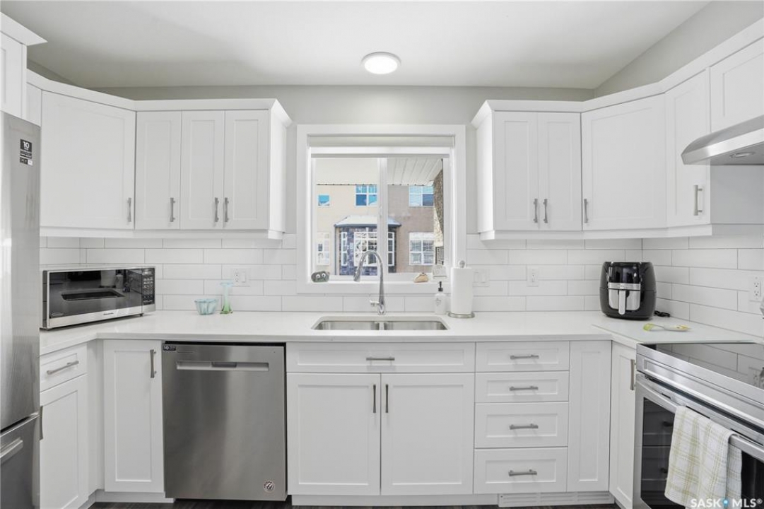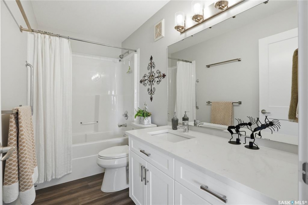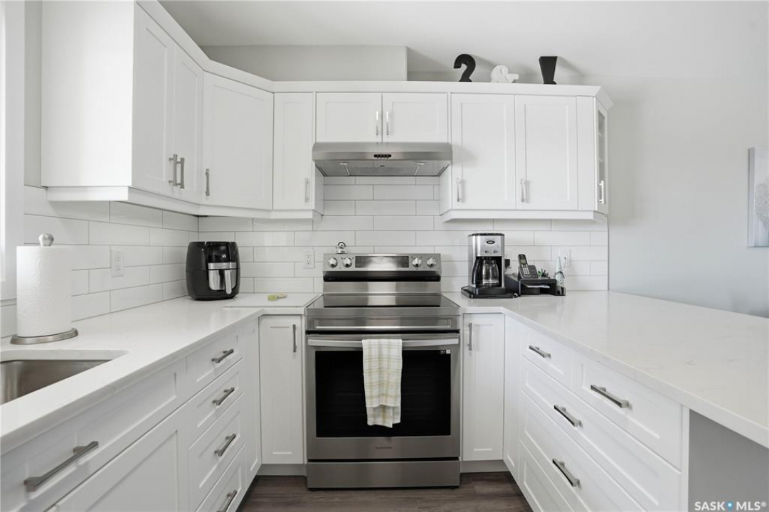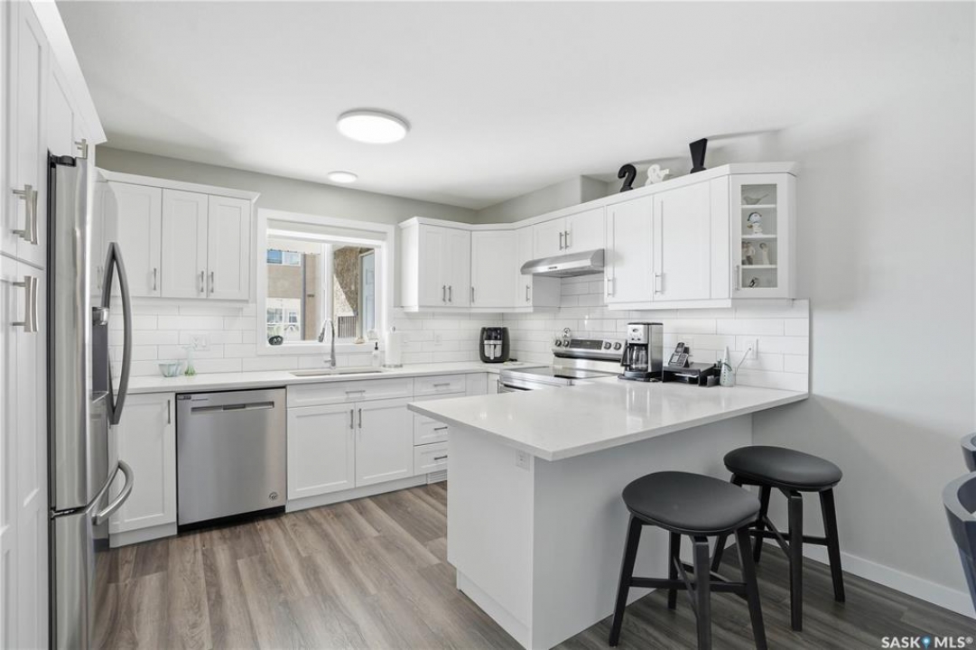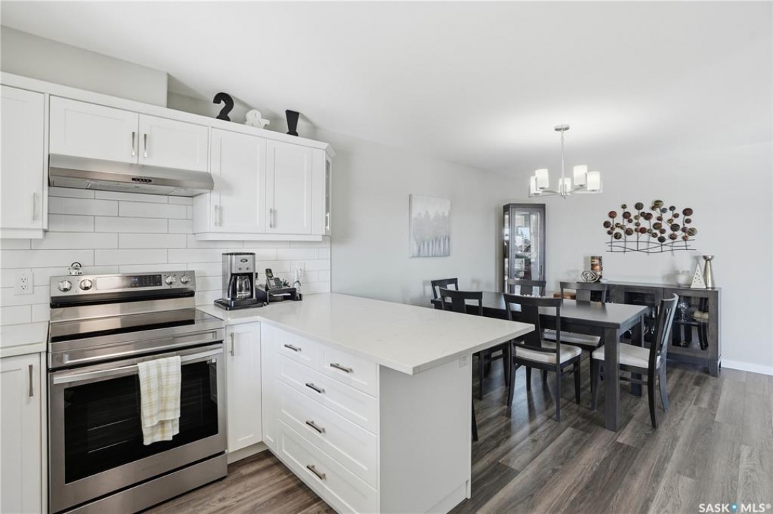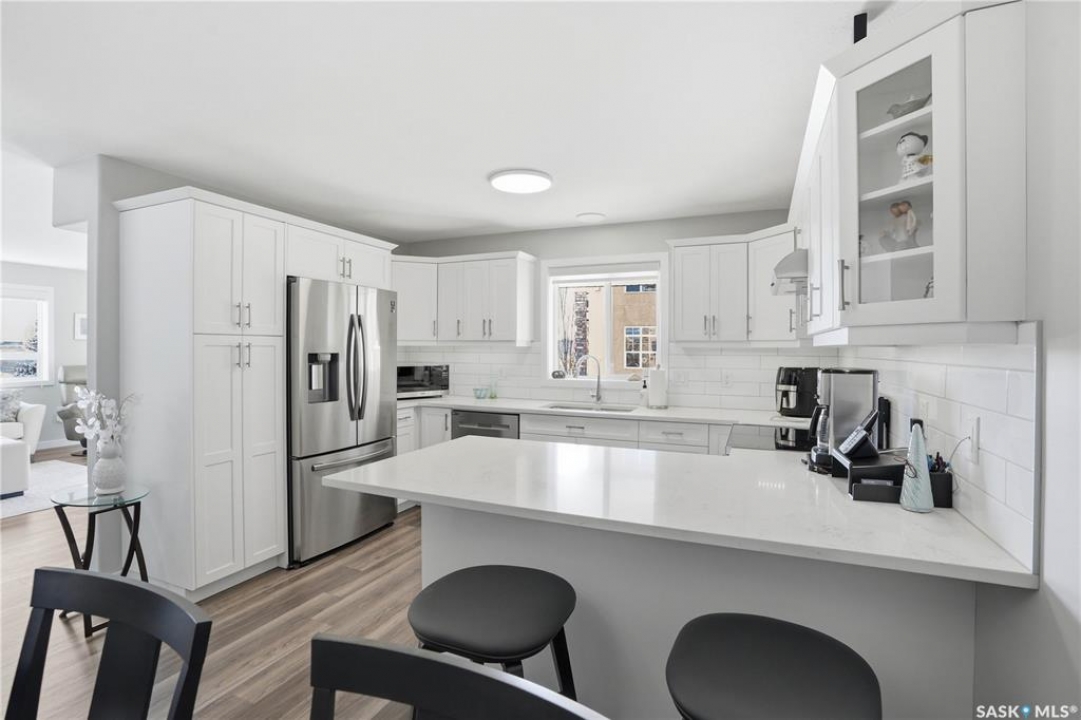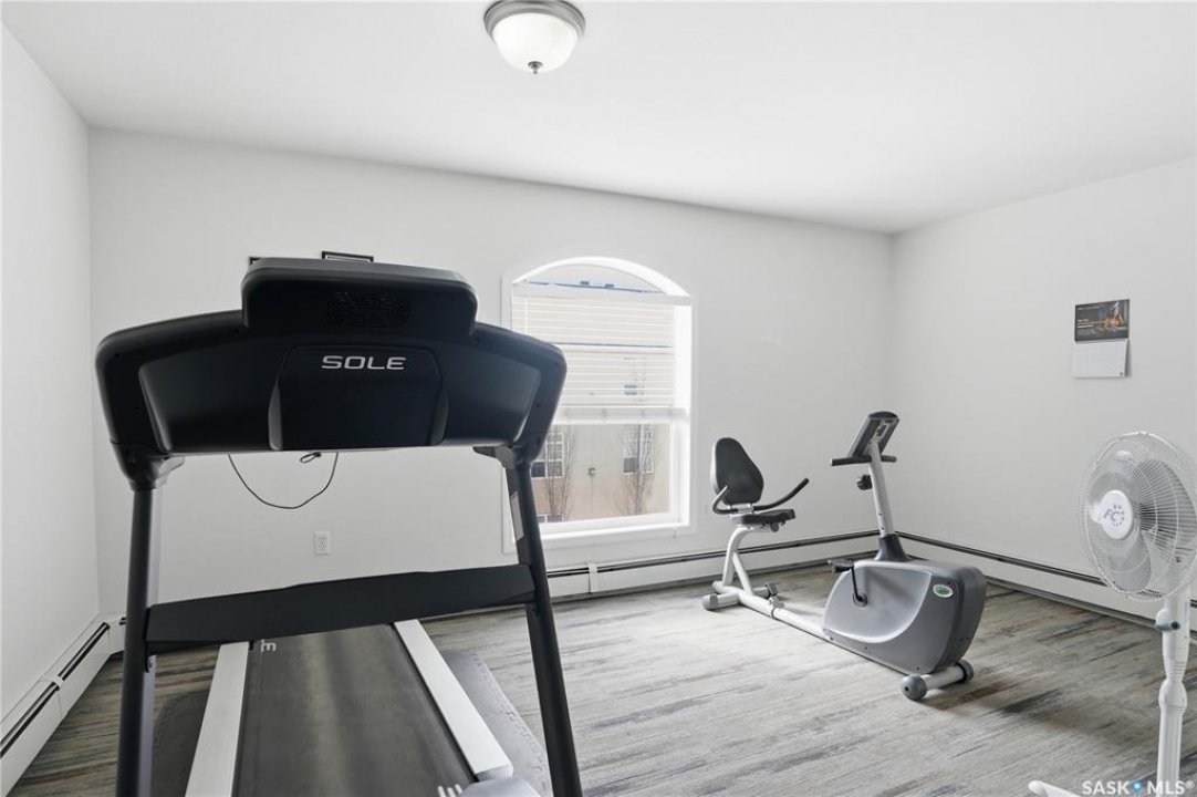 Welcome to #201 – 230 Heath Avenue, located in the highly sought-after University Heights neighbourhood. This beautifully renovated south-facing corner suite offers 1,212 sq. ft. of bright, comfortable living space with 2 bedrooms, 2 bathrooms, and heated underground parking. Large windows fill the open living room with natural light, creating a warm and inviting space perfect for relaxing or entertaining. The updated kitchen features ample cabinetry, quartz countertops, a subway tile backsplash, under-cabinet lighting, stainless steel appliances, and a functional layout that flows seamlessly into the dining area. The spacious primary bedroom includes a walk-in closet and convenient access to the ensuite bath. Additional features include vinyl plank flooring throughout, central air conditioning, and a generous in-suite laundry room that also provides excellent storage. Step outside to the covered balcony, complete with a gas BBQ outlet and additional storage, ideal for enjoying fresh air year-round. Located in the well-maintained Sienna Pointe II complex, residents enjoy an impressive selection of amenities including an exercise room, guest suite, workshop, and a large amenities lounge with seating areas, pool table, and kitchen. This quiet, mature complex is just steps from shopping, parks, walking trails, and very close to the Forestry Farm, offering a perfect balance of convenience and lifestyle. A move-in ready condo in one of Saskatoon's most desirable communities.