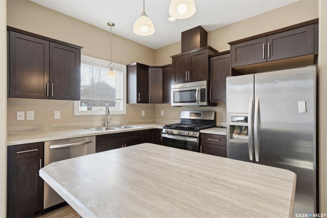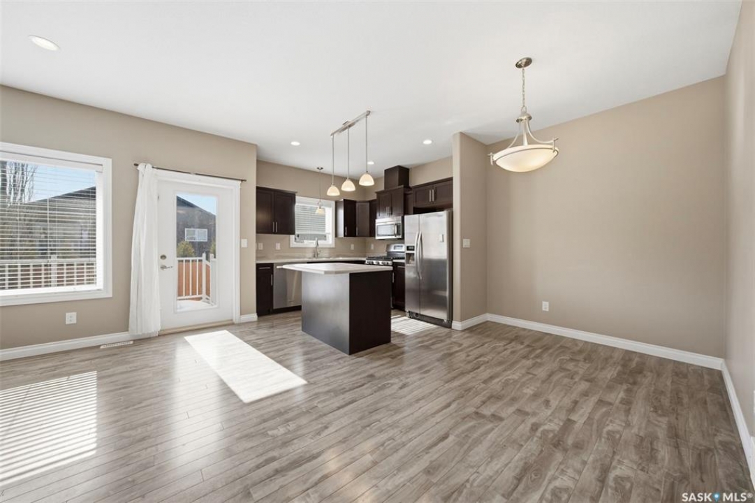 Welcome to Unit 603–315 Zary Road! This spacious 1,804 sq. ft. townhouse offers 3 bedrooms and 3 bathrooms and represents exceptional value in the highly sought-after community of Evergreen. Situated in a quiet residential neighborhood surrounded by single-family homes, this home provides the perfect blend of comfort and convenience. The main floor features 9-foot ceilings, a large office/den with laminate flooring, and a bright open-concept layout. The spacious south-facing living room is filled with natural light from the large windows, while the kitchen offers ample storage, abundant cupboard and counter space, a central island, and stainless steel appliance package including a gas stove and direct-vented range hood. On the second level, you will find a generous primary bedroom with large windows, a huge walk-in closet, and a 4-piece ensuite featuring double vanities, along with two additional bedrooms, including one with vaulted ceilings and abundant windows, which share a 3-piece bathroom. The basement is unfinished but offers excellent potential with high ceilings, large windows, and a future bathroom rough-in. Step outside to enjoy the large deck and fenced backyard, perfect for relaxing or entertaining. Additional features include an HRV system, an attached single-car garage, and a single driveway. This home is conveniently located near the University of Saskatchewan, Forestry Farm, the river, schools, banks, restaurants, shopping, walking paths, and the Swale. Shows well—book your showing today!