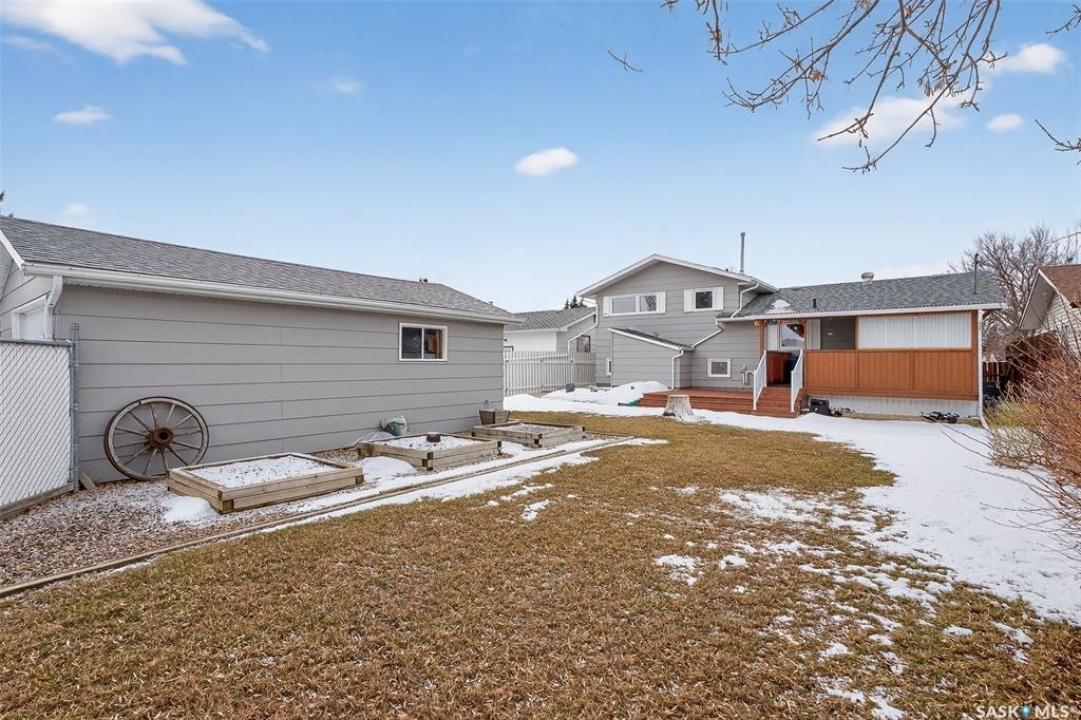 Perfect family home located in the desirable Palliser Heights neighbourhood! This well-maintained 3-bedroom, 3-bathroom 4-level split has been a beloved family home and has been immaculately cared for over the years. The main floor welcomes you with a large foyer that opens into a bright and spacious living room featuring beautiful south-facing windows. The updated kitchen offers ample counter space and storage and flows seamlessly into the adjoining dining room, complete with garden doors that lead to the covered back deck—perfect for entertaining or relaxing outdoors. The second level features a full 4-piece bathroom, two generously sized bedrooms, and a primary bedroom with its own convenient 2-piece ensuite. On the first lower level, you'll find a bright and inviting family room, a 2-piece bathroom with rough-in for a future shower, and a versatile office space that could easily serve as a fourth bedroom. This level also includes a direct entry door to the backyard, making it an ideal setup for anyone operating a home-based business. The basement level offers yet another large family room with a window, a fully finished laundry room with excellent storage and built-in cabinetry, a separate storage room with a stand-up freezer, and a tidy, efficient utility room that completes the home. Outside, enjoy off-street parking in the front concrete driveway or in the detached garage. The beautifully maintained yard features lush lawns in both the front and back, mature shrubs, well-kept garden boxes, a spacious open-air deck, and a generous covered deck—providing multiple outdoor spaces to relax and entertain. Quick possession is available, and this home is truly move-in ready for its next owners to enjoy!