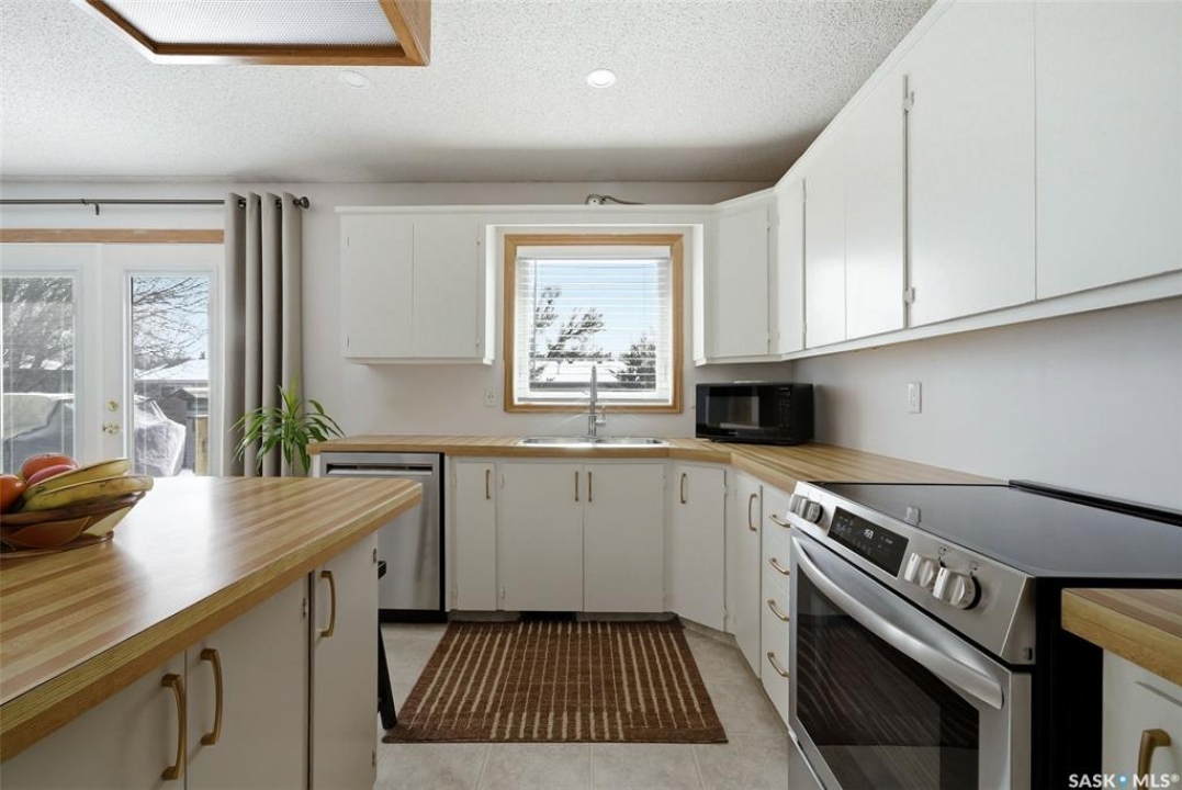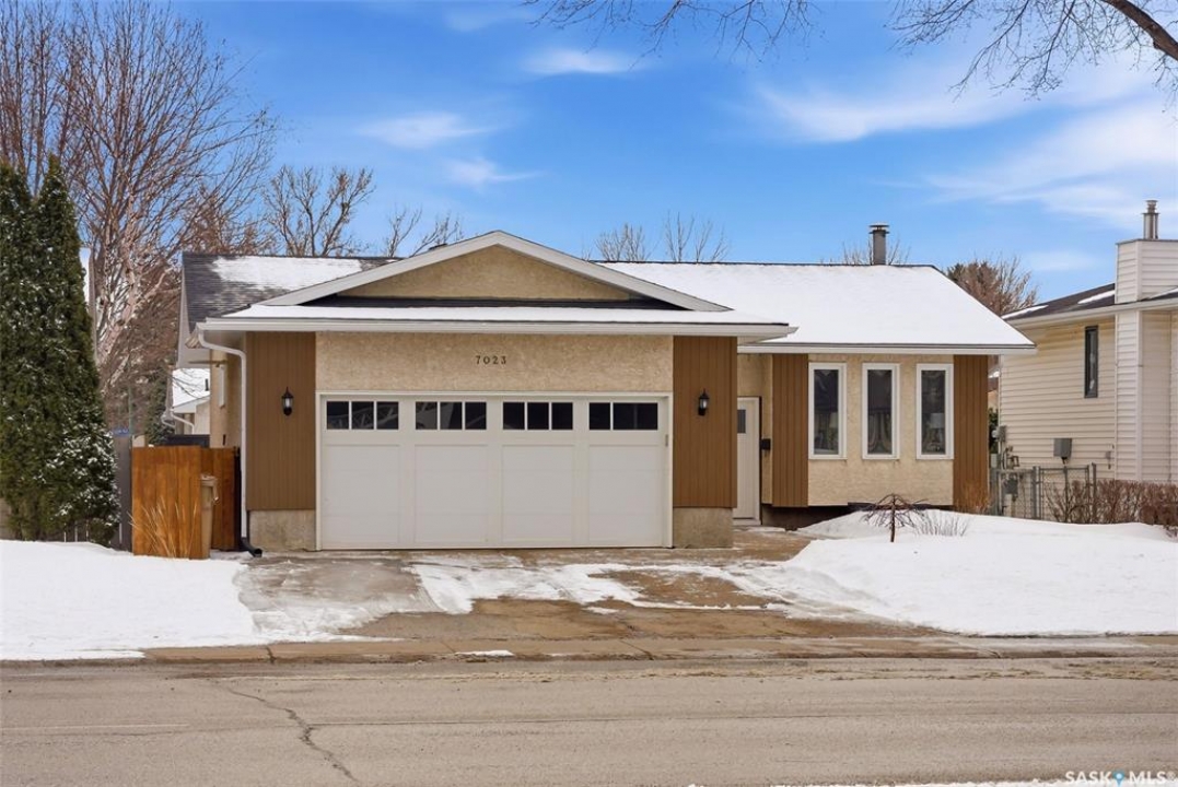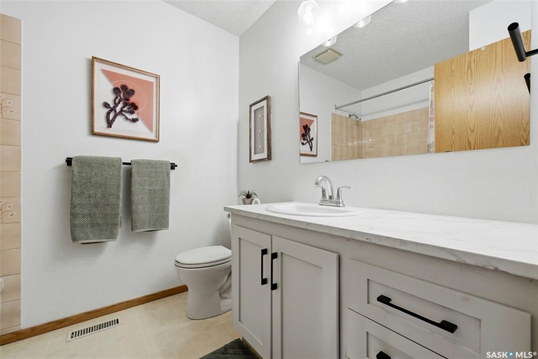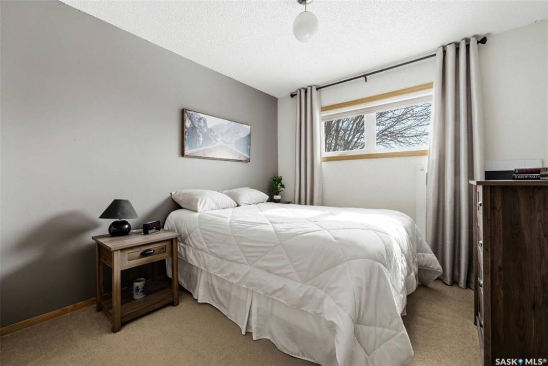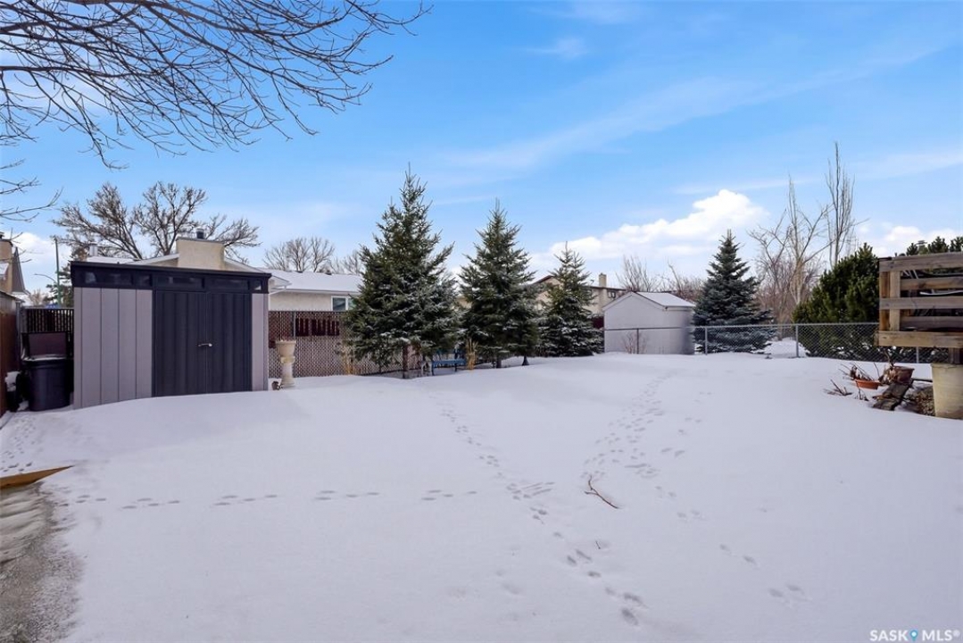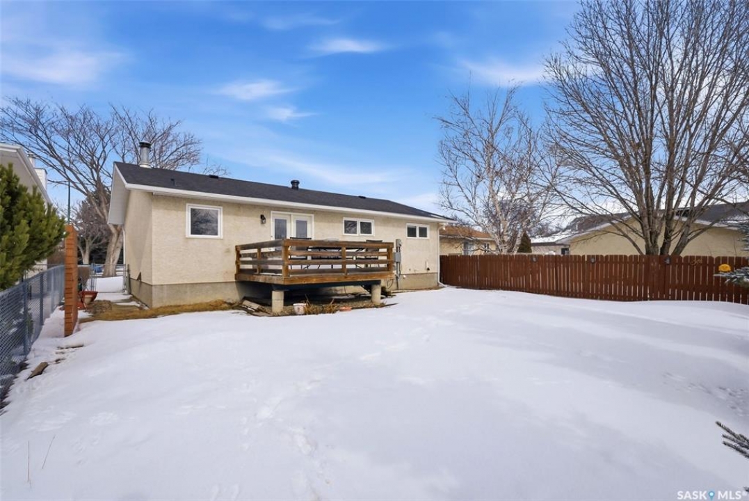 Welcome to this well-maintained 1,201 sq ft bungalow located in the family-friendly neighbourhood of Normanview West. This home offers a functional layout, generous living space, and a large private yard close to schools, parks, and north Regina amenities. The main floor features a bright living room with large front windows and a cozy brick wood-burning fireplace, creating a warm and inviting space. The kitchen offers plenty of cabinetry, generous counter space, stainless steel appliances, and a convenient island for additional prep and seating. The adjoining dining area provides direct access to the backyard deck, perfect for summer BBQs and outdoor entertaining. The main level includes three bedrooms, including a primary bedroom with a 3-piece ensuite, along with a full 4-piece bathroom. The fully developed basement provides excellent additional living space with a large recreation room ideal for a family room or home theatre area. The basement also features an additional beautifully renovated 4-piece bathroom, and a large storage/utility area. Outside you will find a spacious fully fenced backyard with mature trees and a large deck, offering plenty of room to relax or entertain. The insulated and heated double attached garage provides excellent parking and workspace, while the concrete driveway offers additional off-street parking. Situated on a 6,215 sq ft lot in a quiet established neighbourhood, this home offers comfortable family living with plenty of space both inside and out.