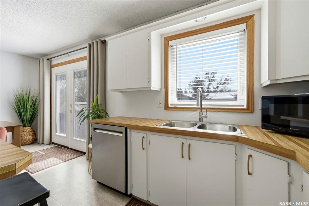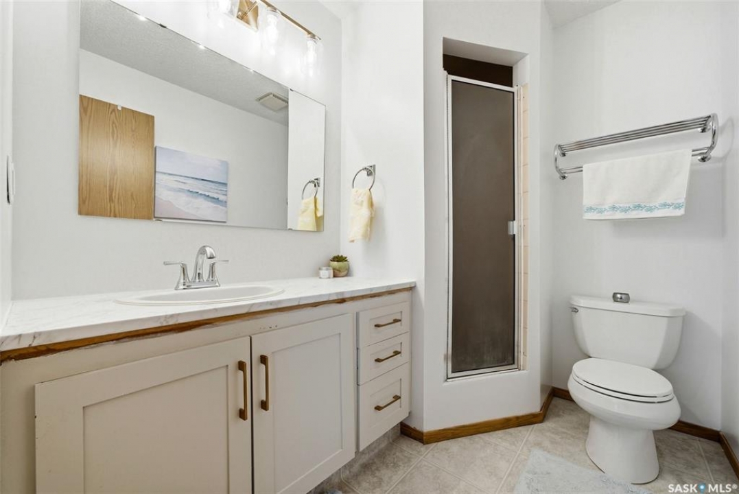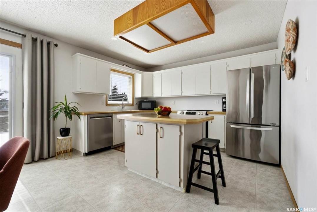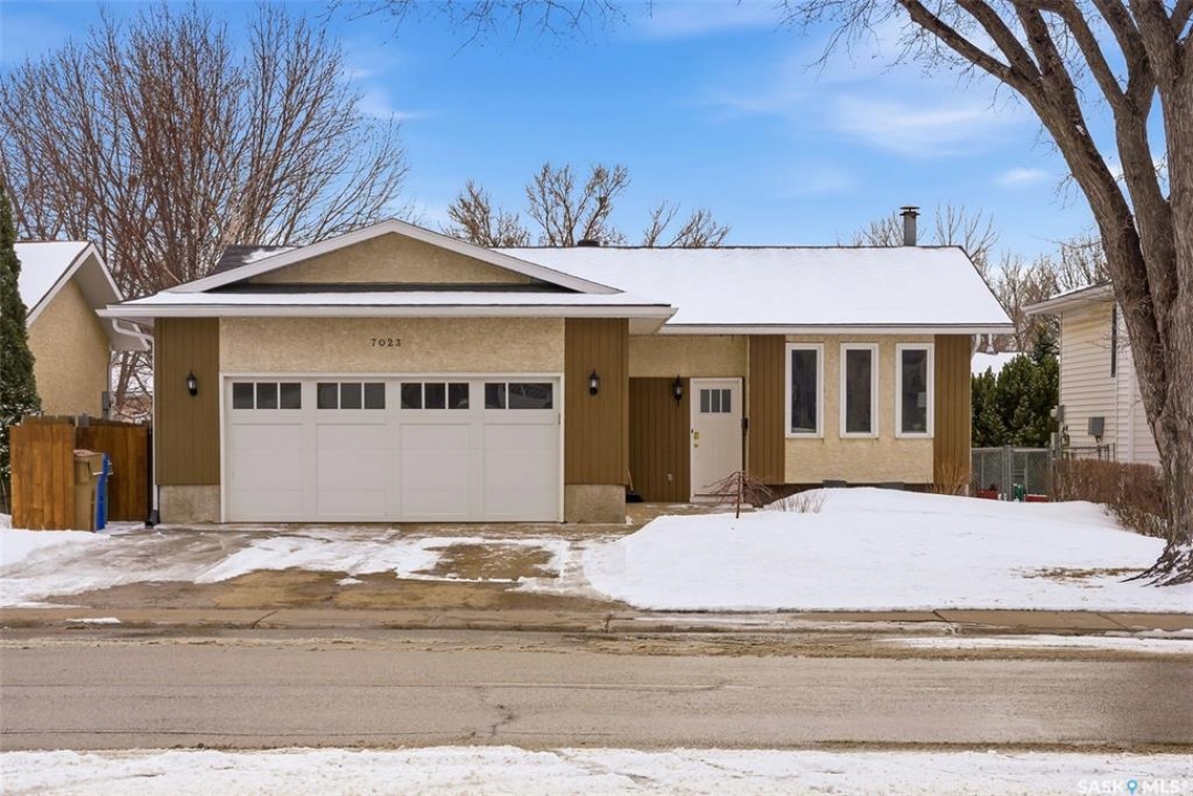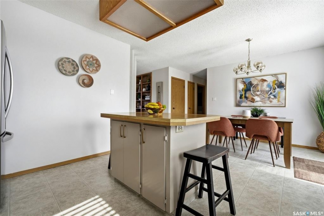 Welcome to this well-maintained 1,201 sq ft bungalow located in the family-friendly neighbourhood of Normanview West. This home offers a functional layout, generous living space, and a large private yard close to schools, parks, and north Regina amenities. The main floor features a bright living room with large front windows and a cozy brick wood-burning fireplace, creating a warm and inviting space. The kitchen offers plenty of cabinetry, generous counter space, stainless steel appliances, and a convenient island for additional prep and seating. The adjoining dining area provides direct access to the backyard deck, perfect for summer BBQs and outdoor entertaining. The main level includes three bedrooms, including a primary bedroom with a 3-piece ensuite, along with a full 4-piece bathroom. The fully developed basement provides excellent additional living space with a large recreation room ideal for a family room or home theatre area. The basement also features an additional beautifully renovated 4-piece bathroom, and a large storage/utility area. Outside you will find a spacious fully fenced backyard with mature trees and a large deck, offering plenty of room to relax or entertain. The insulated and heated double attached garage provides excellent parking and workspace, while the concrete driveway offers additional off-street parking. Situated on a 6,215 sq ft lot in a quiet established neighbourhood, this home offers comfortable family living with plenty of space both inside and out.