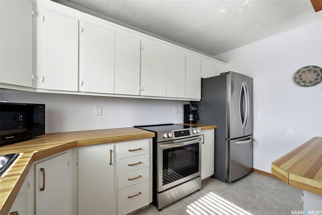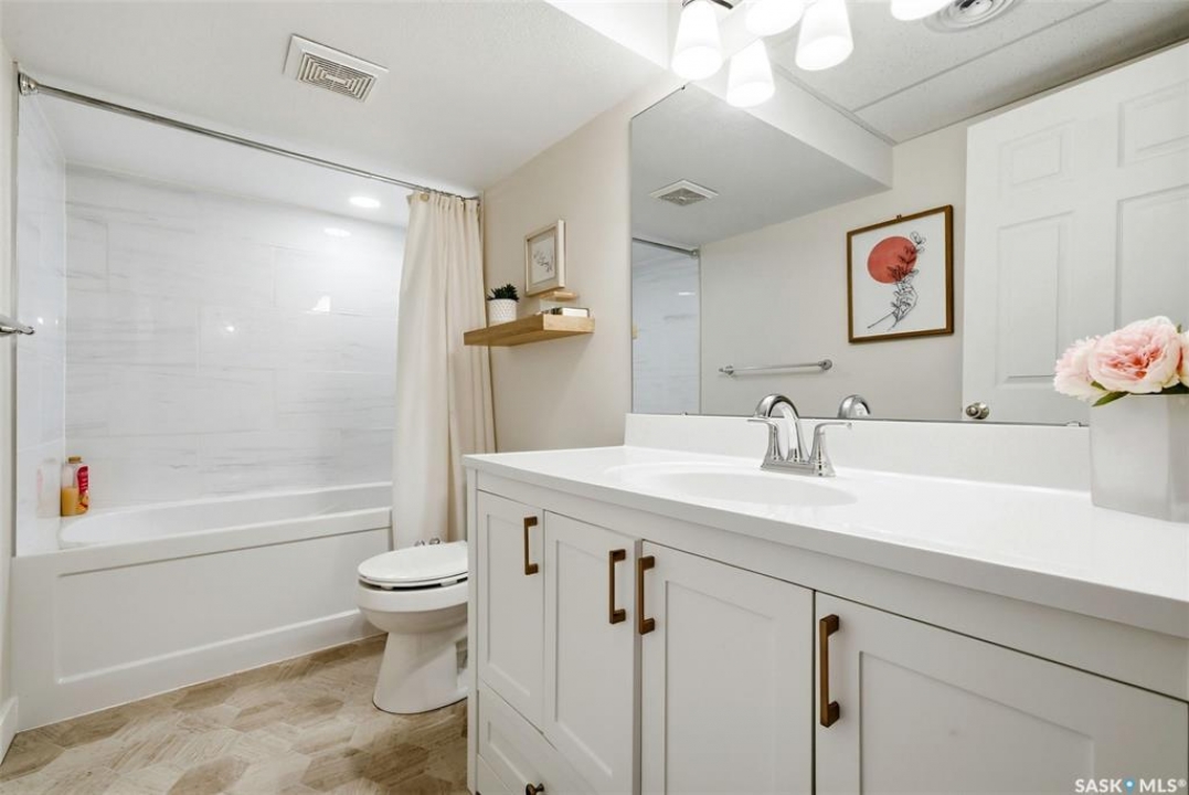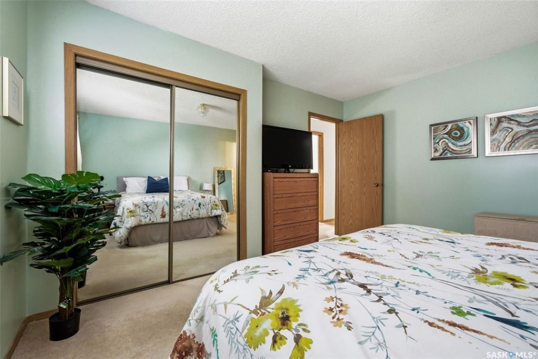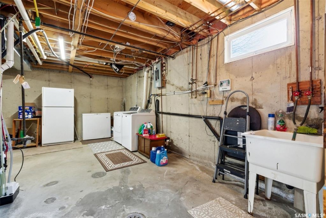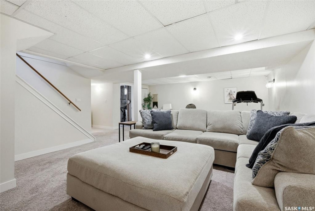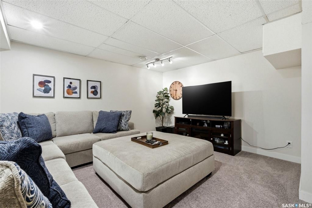 Welcome to this well-maintained 1,201 sq ft bungalow located in the family-friendly neighbourhood of Normanview West. This home offers a functional layout, generous living space, and a large private yard close to schools, parks, and north Regina amenities. The main floor features a bright living room with large front windows and a cozy brick wood-burning fireplace, creating a warm and inviting space. The kitchen offers plenty of cabinetry, generous counter space, stainless steel appliances, and a convenient island for additional prep and seating. The adjoining dining area provides direct access to the backyard deck, perfect for summer BBQs and outdoor entertaining. The main level includes three bedrooms, including a primary bedroom with a 3-piece ensuite, along with a full 4-piece bathroom. The fully developed basement provides excellent additional living space with a large recreation room ideal for a family room or home theatre area. The basement also features an additional beautifully renovated 4-piece bathroom, and a large storage/utility area. Outside you will find a spacious fully fenced backyard with mature trees and a large deck, offering plenty of room to relax or entertain. The insulated and heated double attached garage provides excellent parking and workspace, while the concrete driveway offers additional off-street parking. Situated on a 6,215 sq ft lot in a quiet established neighbourhood, this home offers comfortable family living with plenty of space both inside and out.