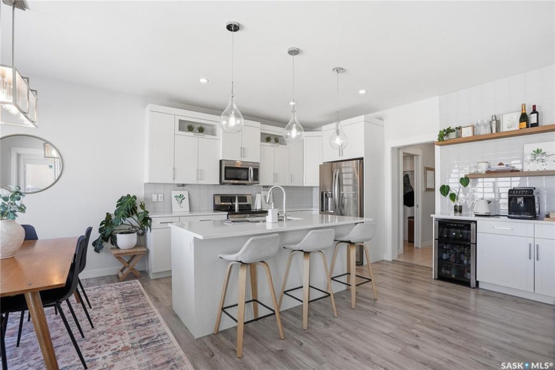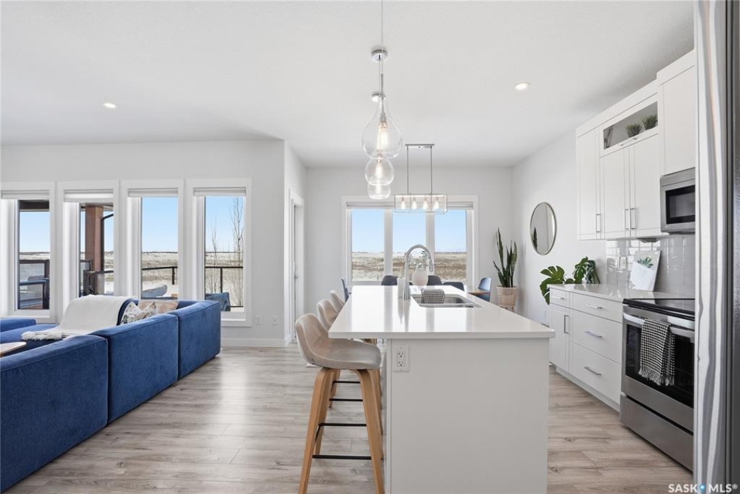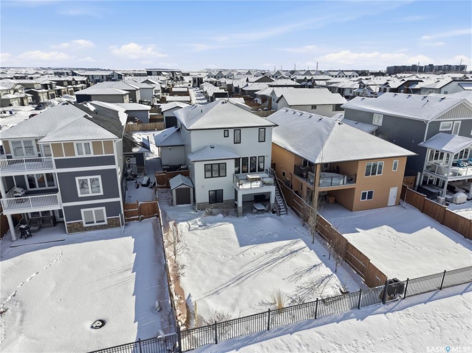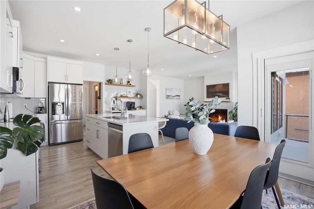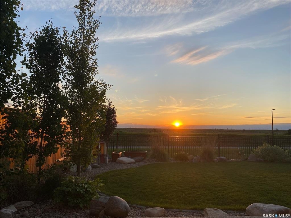 No neighbors behind and million dollar sunset views. Welcome to 619 Fast Crescent in Aspen Ridge - a fully developed 4 bedroom, 4 bathroom walkout backing directly onto the Northeast Swale, one of Saskatoon's most remarkable natural landscapes. From the street the home immediately stands out with clean curb appeal, thoughtful landscaping, and a custom build designed with both style and function in mind. Step inside to a bright east-facing entry with soaring ceilings that create an open and welcoming feel. Durable laminate flooring runs throughout the main floor and leads you into a comfortable living room centered around a gas fireplace. The kitchen checks every box with quartz countertops, modern cabinetry, and a large island that flows seamlessly into the dining area where oversized windows capture the stunning view behind the home. Patio doors lead to the upper deck with stairs down to the yard, making it perfect for enjoying the scenery. The main floor also offers a 2-piece powder room, pantry, and mudroom off the oversized garage. Upstairs you'll find three generously sized bedrooms including a primary suite with double sinks, a custom tiled shower, and a spacious walk-in closet, along with another 4-piece bathroom and convenient second-floor laundry. The fully developed walkout basement adds even more living space with a fourth bedroom, 4-piece bathroom, and a large family room that opens directly onto the covered patio and west-facing backyard. What truly sets this home apart is the setting. The backyard backs directly onto the Northeast Swale, one of the most biodiverse landscapes in the Saskatoon area, offering wide open prairie views, native grasses, wildlife, and incredible sunsets right outside your door. Added value includes all appliances, window treatments, central air conditioning, custom storage, extensive concrete work, and professional landscaping. If you've been waiting for a walkout backing the Swale, this is it!