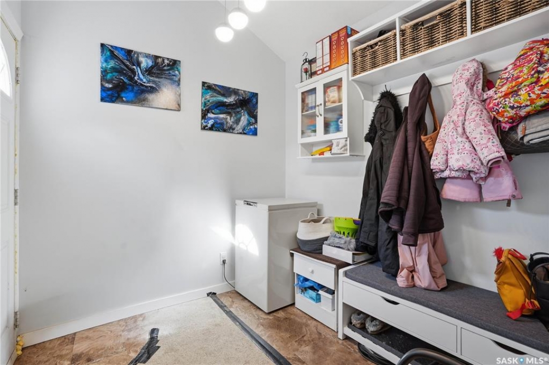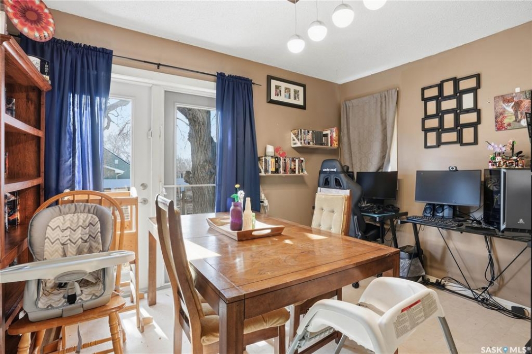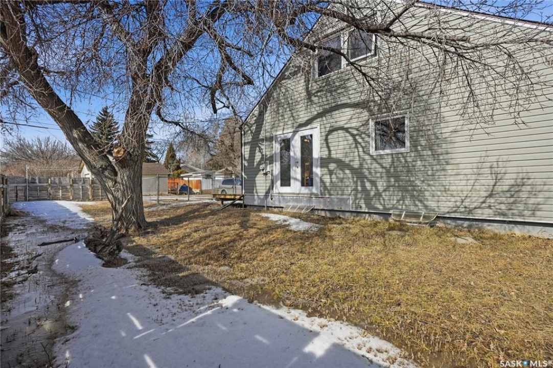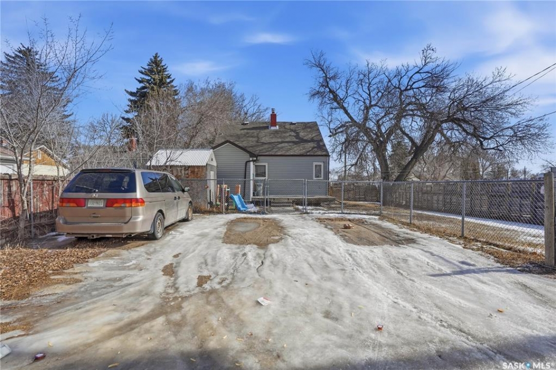 Are you looking for an excellent starter home? This affordable home checks a lot of boxes! This 3 bed and 1 bath home boasts almost 1,200 sq.ft over 2 floors! Sitting on a nice corner lot in a great neighborhood - just a couple blocks from Saskpoly. Excellent curb appeal as you arrive with newer vinyl siding and roof. Heading inside you are greeted by a foyer off the front providing a nice entrance. Next you find a good size living room with a large window. Heading back we find an open concept U-shaped kitchen and dining space. There is also a 4 piece bathroom and a good size bedroom on this level. Off the back of the home we find a large mudroom - making coming home easy with parking in the rear. With an extra wide set of stairs leading to the second floor we find 2 more bedrooms on this floor with a large primary bedroom here. The basement is open for development but hosts your laundry and your utility spaces as well as lots of space for a future family room or more bedrooms. This is a great home to start your home ownership journey! Excellent value here! Reach out today to book your showing!