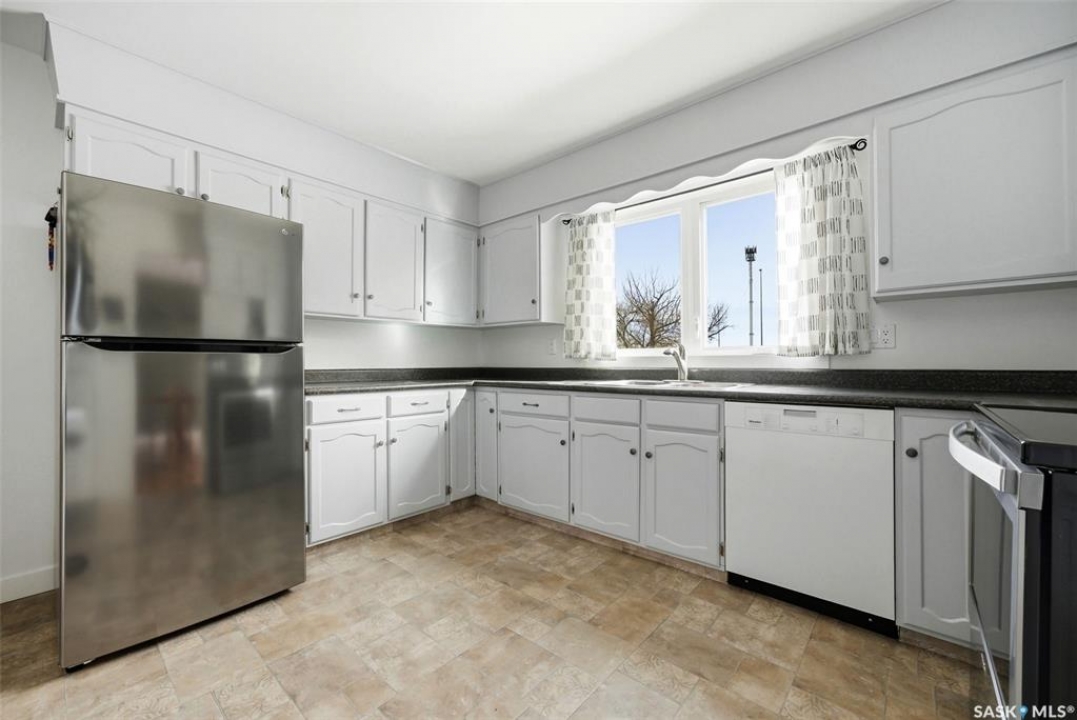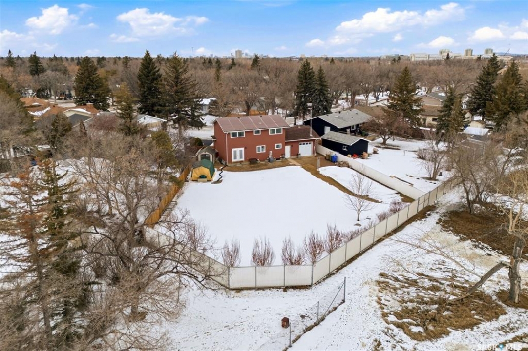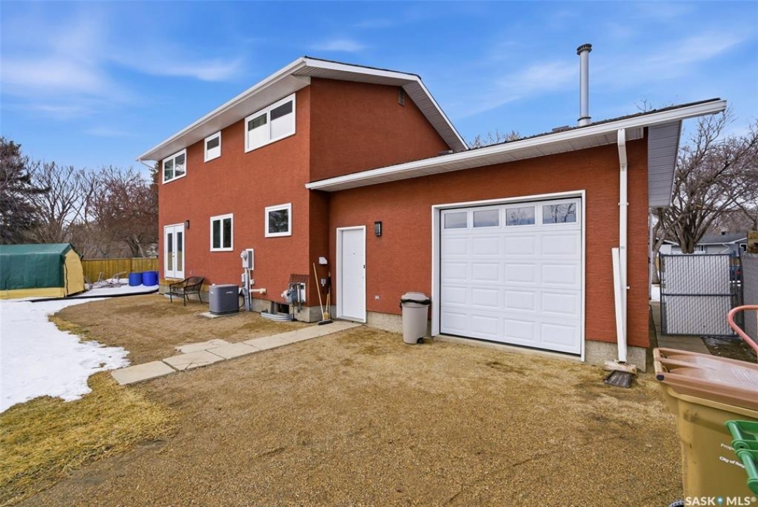 Welcome to this spacious 2-storey home located in Whitmore Park, offering over 1,500 sq ft of above-grade living space and a functional layout perfect for families. The main floor features a bright living room with beautiful hardwood flooring, large windows, and plenty of natural light. The adjoining dining area provides a great space for family meals and includes patio doors leading to the backyard. The kitchen offers ample cabinet and counter space along with a large window overlooking the yard. A convenient main floor laundry and bathroom combination adds practicality to the main level. Upstairs you'll find four well-sized bedrooms and a 5-piece bathroom, making this home ideal for growing families. The finished basement includes a recreation room, an additional bedroom, and a 3-piece bathroom, providing extra space for guests, hobbies, or a home office. The home sits on a large 12,793 sq ft lot with mature trees and garden space, perfect for outdoor enjoyment. The property also offers a fully insulated attached double garage, concrete driveway, and parking for multiple vehicles. Conveniently located close to schools, parks, and south Regina amenities, this home offers excellent space, comfort, and location. List of updates available.