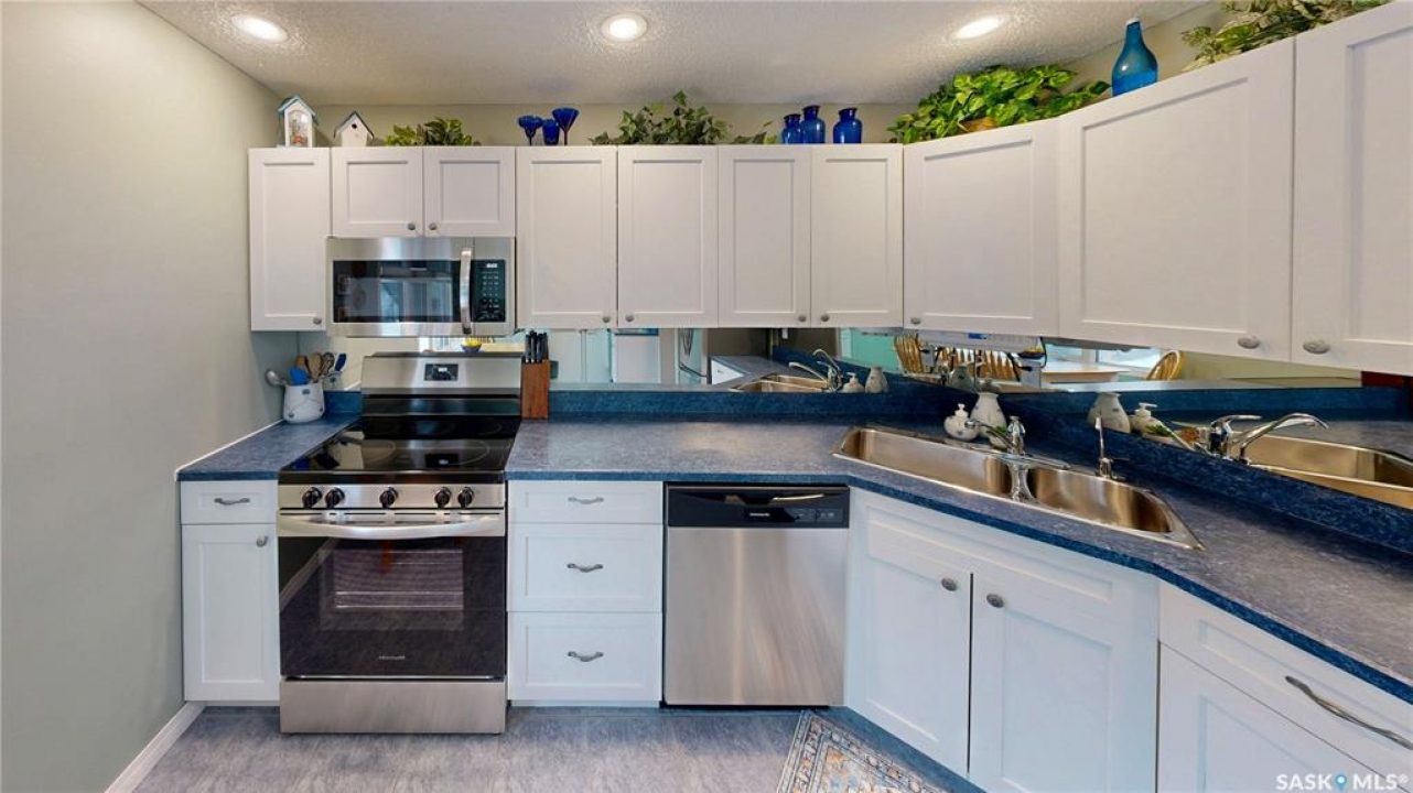 Welcome to 110 Quincy Drive in the beautiful Hillsdale neighbourhood. This 1975 built, 1574 square foot, 3 bedroom 3 bathroom, 2 storey, townhouse style condo is in the Quincy Green Corporation that features fantastic shared amenities including an outdoor swimming pool, a playground, visitor parking and tennis courts! Condo fees are $521 a month and include exterior building maintenance, common area maintenance, garbage, common insurance, lawn care, sewer, water, snow removal and reserve fund. The front of this unit has a double driveway that leads to the single, attached, 13 x 22 heated and insulated garage. The backyard is fully fenced with a brick patio, natural gas BBQ hookup, greenery and is conveniently located behind the pool. You enter into the foyer with heated, tile flooring and direct access to the garage. The living room is bright with multiple west facing windows, a gas fireplace, a hardwood flooring and an 11ft ceiling. The dining room has space for an 8 person table and chairs. Just off the dining area is a convenient 2 piece bathroom and a pantry. The kitchen has ample counter and cupboard space, LED pot lights, tile floor, and a secondary prep sink. The updated stainless steel appliances include the Frigidaire fridge, stove, dishwasher, microwave hood fan and bar fridge with an R.O system under the kitchen sink. The third floor has an amazing bonus room that can be used as a workshop, office or whatever best suits your lifestyle! The main 4 piece bathroom is next. The primary has a built-in tv cabinet, hardwood flooring, a walk through closet and a private 3 piece ensuite bathroom with a sun tube! Two more bedrooms finish off this floor. Downstairs, the fully finished basement has a rec room that makes a wonderful home theatre. Finishing off the home is the laundry and utility room that houses the owned furnace, gas water heater, water softener, electronic air filter, and stand up freezer. The front load LG washer and dryer are also all included.