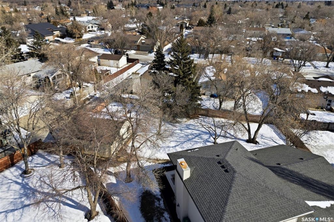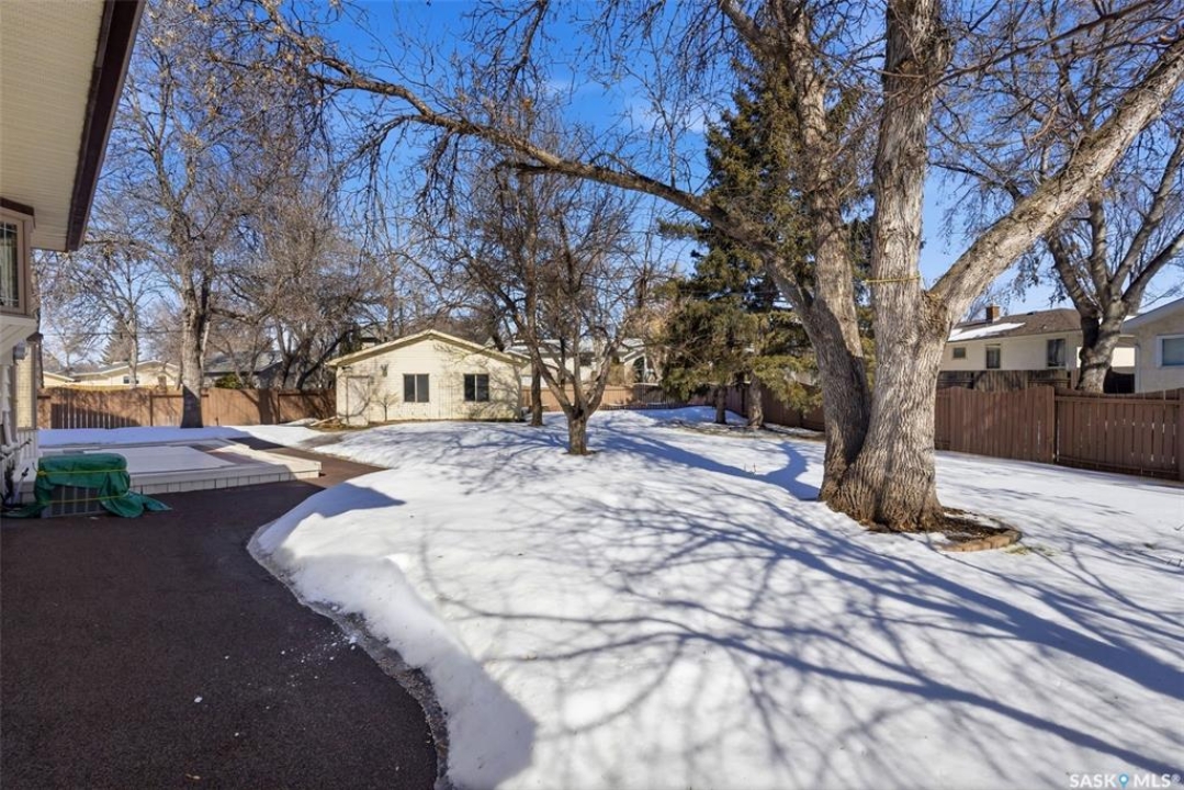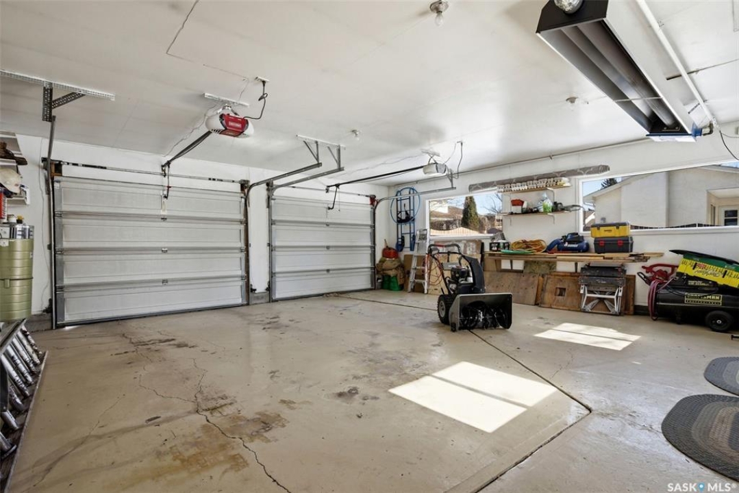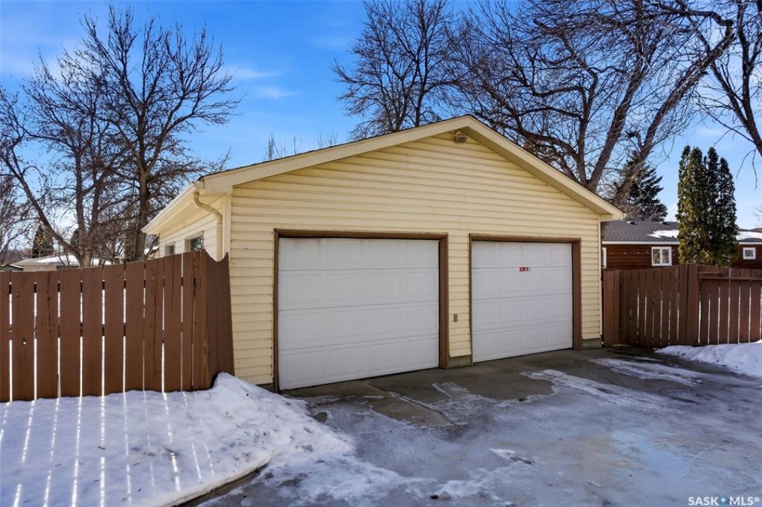 Situated on an expansive 10,561 sq. ft. lot, this impressive 1,884 sq. ft. 2 Storey home offers exceptional space, quality upgrades & a beautiful park-like backyard in a quiet location. The home features 3 spacious bedrooms on the upper level & 3 bathrooms throughout. The primary bedroom includes a walk-in closet & an ensuite complete with a jetted tub. The 2 remaining bedrooms are a good size for a growing family. The main floor offers a thoughtful layout with hardwood flooring in the living & dining rooms, an inviting family room with a cozy gas fireplace & a dream kitchen featuring plenty of storage & ample workspace. A generously sized main floor laundry room adds to everyday convenience. The fully developed basement provides excellent additional living space & includes a dry bar, den & plenty of storage space, making it a versatile area for entertaining, working from home, or relaxing. Car enthusiasts & hobbyists will appreciate the 2 heated garages, featuring epoxy-coated flooring (attached garage) & central vac. The attached garage measures 24' x 23', detached 24' x 26' garage (built in 1999) is located off the alley & includes its own 100-amp panel. The outdoor space is truly exceptional. The fully fenced backyard offers a park-like setting, complete with a 30' x 60' garden, duragrid deck, powered 10' x 10' shed & underground sprinklers in both the front & back yard. A stamped concrete driveway enhances the home's excellent curb appeal! The home features triple-pane windows, new front and back doors, newer shingles, R45 blown-in attic insulation. Improvements over the years include new lighting, central air conditioning, fresh paint, a high-efficiency furnace, owned high-efficiency water heater, owned water softener & 2 radon mitigation systems installed in 2025 for added peace of mind. This property combines space, thoughtful upgrades and an incredibly opportunity to own a rare property in Regina. 917 in place for March 18th