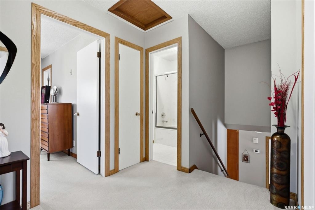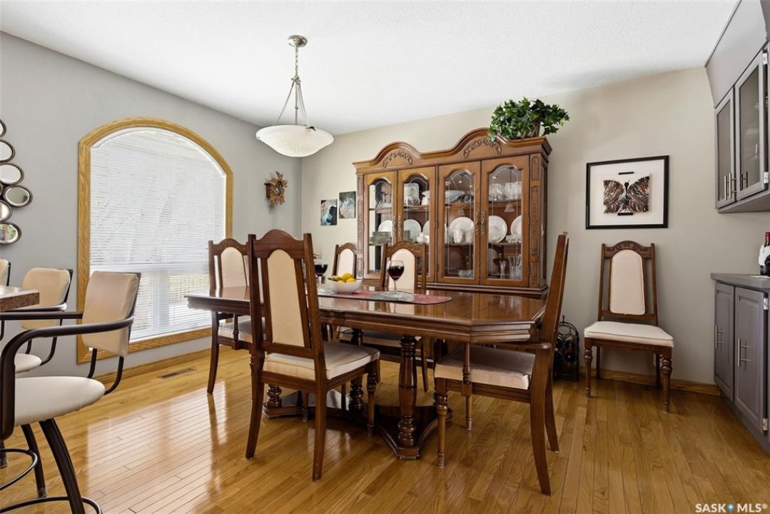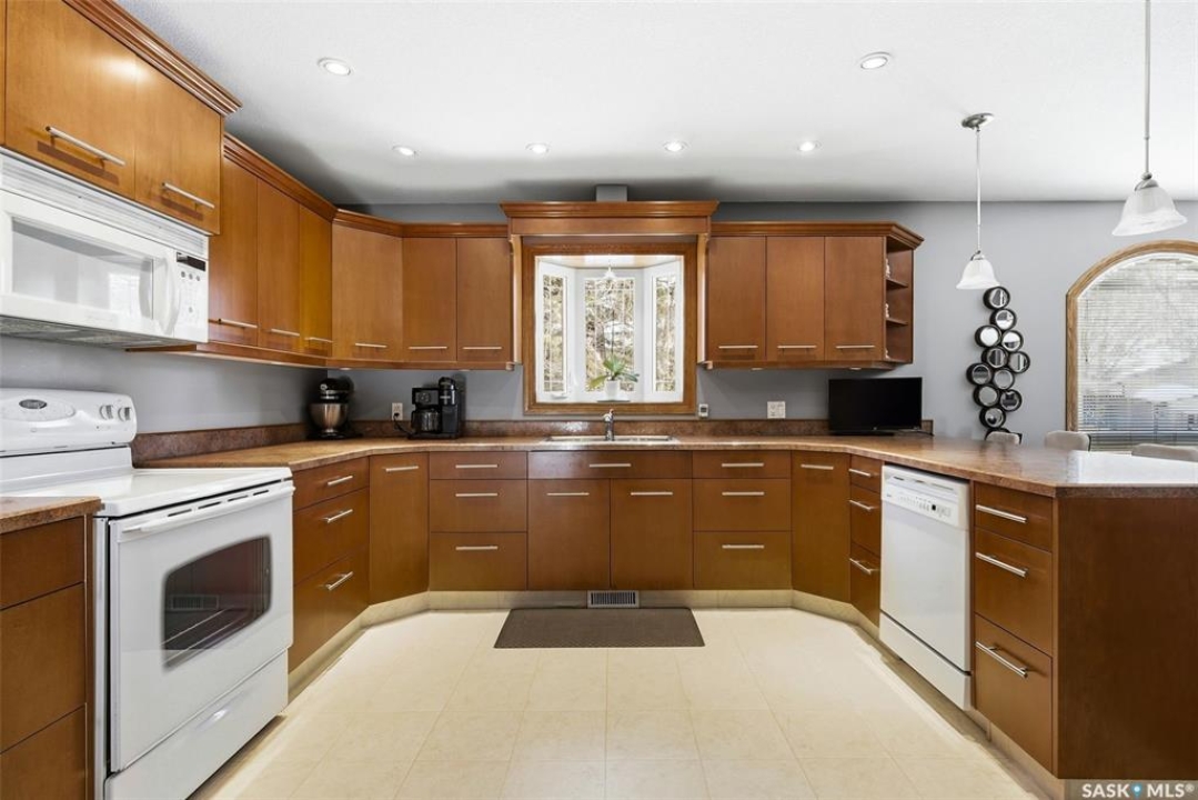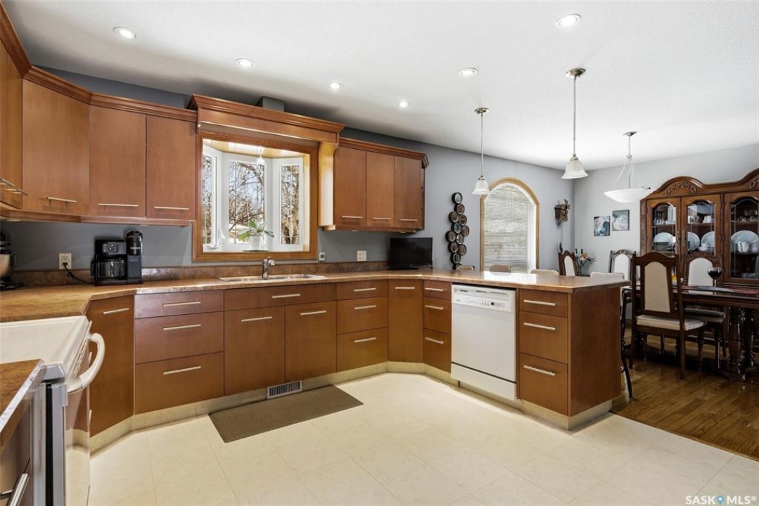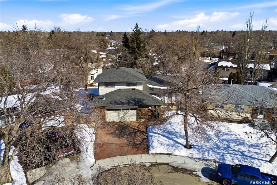 Situated on an expansive 10,561 sq. ft. lot, this impressive 1,884 sq. ft. 2 Storey home offers exceptional space, quality upgrades & a beautiful park-like backyard in a quiet location. The home features 3 spacious bedrooms on the upper level & 3 bathrooms throughout. The primary bedroom includes a walk-in closet & an ensuite complete with a jetted tub. The 2 remaining bedrooms are a good size for a growing family. The main floor offers a thoughtful layout with hardwood flooring in the living & dining rooms, an inviting family room with a cozy gas fireplace & a dream kitchen featuring plenty of storage & ample workspace. A generously sized main floor laundry room adds to everyday convenience. The fully developed basement provides excellent additional living space & includes a dry bar, den & plenty of storage space, making it a versatile area for entertaining, working from home, or relaxing. Car enthusiasts & hobbyists will appreciate the 2 heated garages, featuring epoxy-coated flooring (attached garage) & central vac. The attached garage measures 24' x 23', detached 24' x 26' garage (built in 1999) is located off the alley & includes its own 100-amp panel. The outdoor space is truly exceptional. The fully fenced backyard offers a park-like setting, complete with a 30' x 60' garden, duragrid deck, powered 10' x 10' shed & underground sprinklers in both the front & back yard. A stamped concrete driveway enhances the home's excellent curb appeal! The home features triple-pane windows, new front and back doors, newer shingles, R45 blown-in attic insulation. Improvements over the years include new lighting, central air conditioning, fresh paint, a high-efficiency furnace, owned high-efficiency water heater, owned water softener & 2 radon mitigation systems installed in 2025 for added peace of mind. This property combines space, thoughtful upgrades and an incredibly opportunity to own a rare property in Regina. 917 in place for March 18th