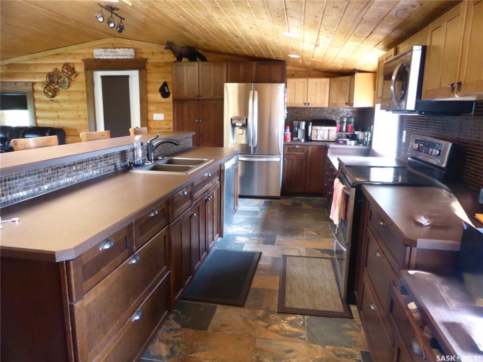 Welcome to beautiful Sunny Acres! This unique property includes two titled lots being sold together as one package, offering a fantastic opportunity for shared ownership, extended family living, or investment potential. One lot features the main cabin with excellent garage space for up to three vehicles on the ground level plus convenient rear access. The cabin offers three levels of outdoor decking, perfect for relaxing or entertaining. Inside, this two-bedroom cabin features a bright open-concept kitchen, dining, and living area designed for gathering. The kitchen boasts a large island built for hosting, while the living room overlooks peaceful green space out the back. Warm and inviting, the cabin showcases a pellet stove, vaulted ceiling, and rich birch hardwood floors. There is also a full bathroom, a half bath off the primary bedroom, and in-cabin laundry. The second lot features a charming cabin with its own separate driveway and entrance, surrounded by attractive rock landscaping. This two-bedroom cabin offers an open layout with an impressive 11-foot island, pellet stove, 3-piece bathroom, and laundry. A large wraparound deck provides excellent outdoor living space. Both cabins connect to a shared cement patio and fire pit area, creating a welcoming outdoor gathering space that feels like an outdoor living room. Located just a short walk to a beautiful sandy beach, this quiet area of Brightsand Lake faces east, helping keep wave action to a minimum. Brightsand is known for its soft sand and clear, clean spring-fed water, and offers great fishing opportunities as well.
