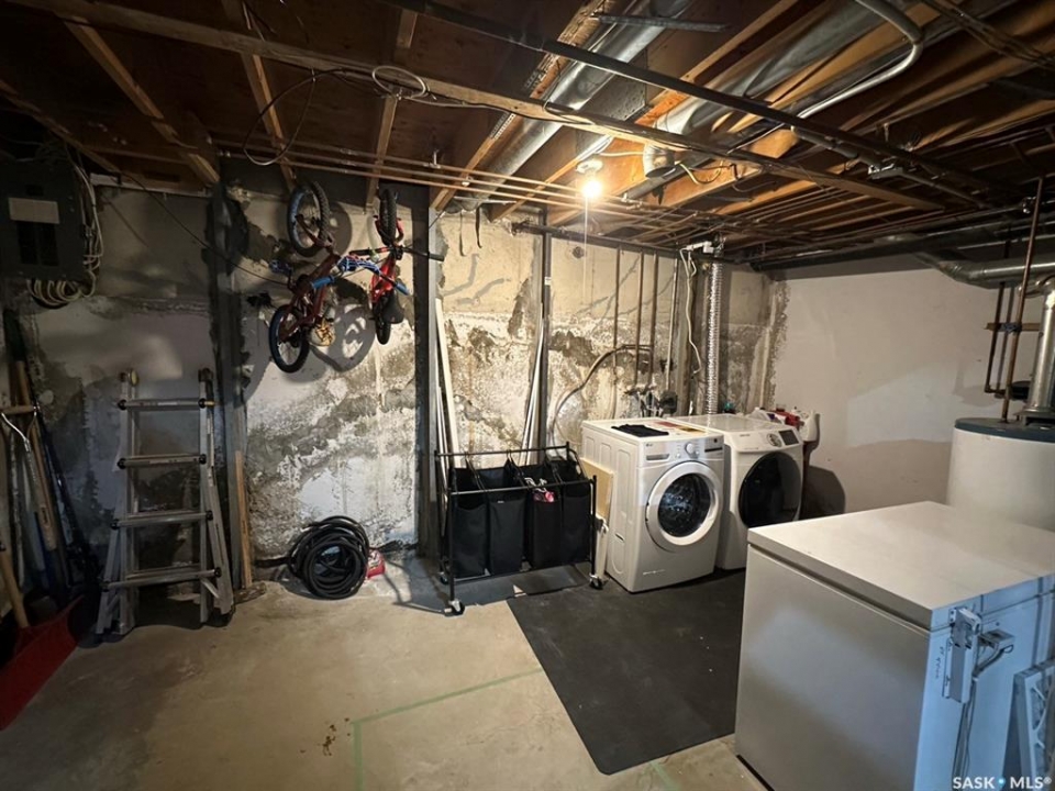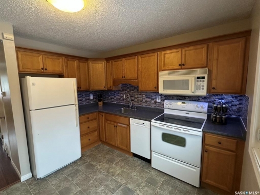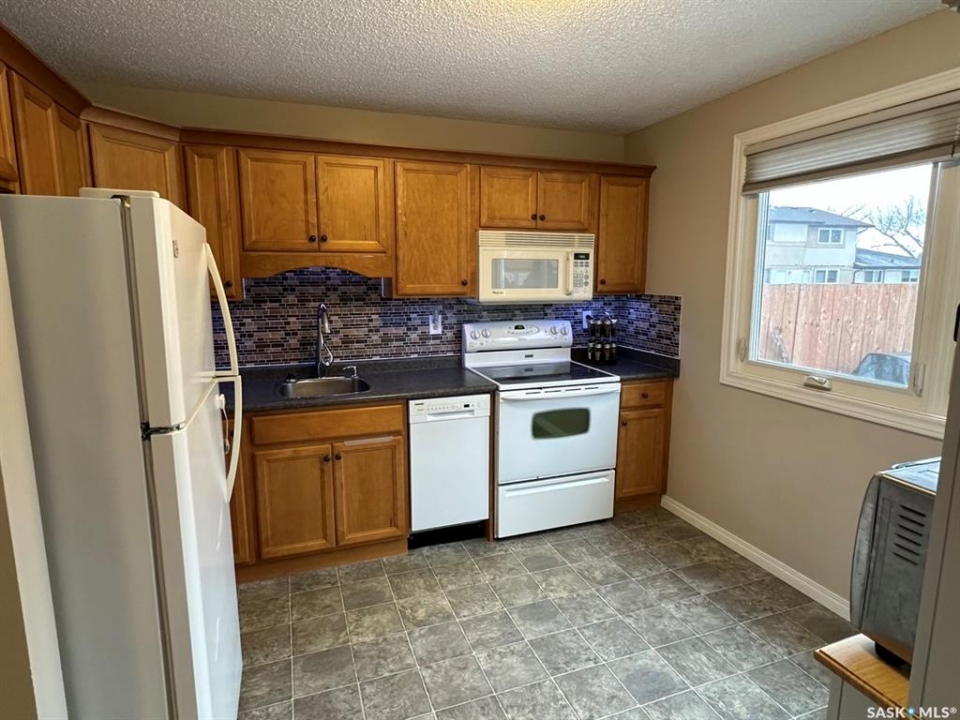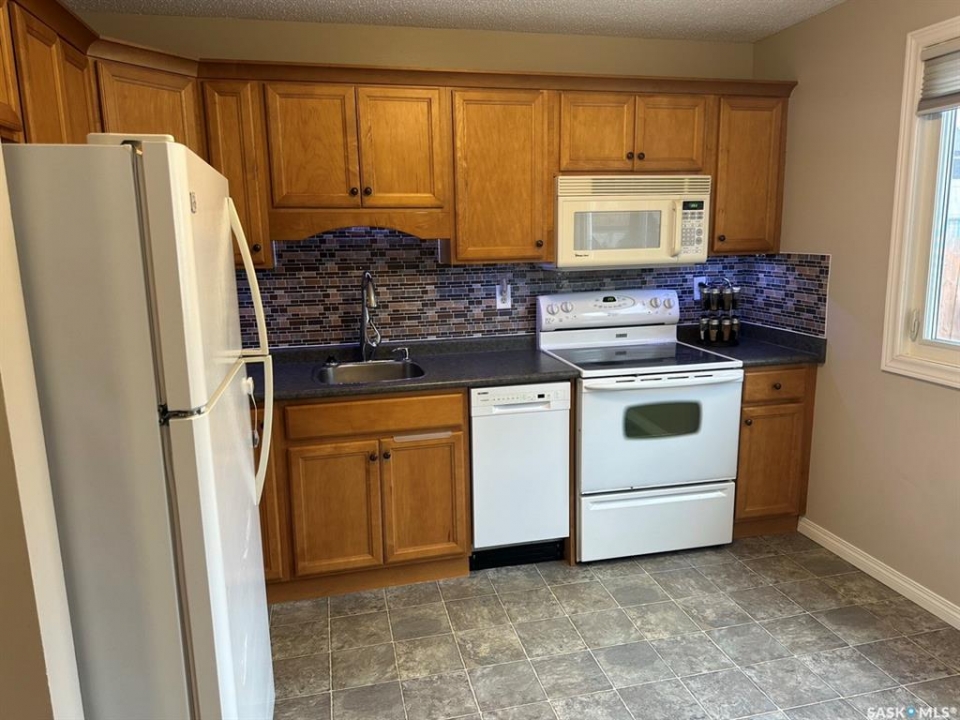 hy rent when you can buy? This affordable move in ready well kept 3 bedroom 2 storey condo is close to schools, park and bus stop in the East end of Regina. There have been many upgrades to the interior over the past 15 years including PVC windows, blinds, kitchen cabinets, bathroom vanities, most flooring and central air. The kitchen has hickory stained maple cabinets with soft close mechanisms and comes complete with fridge, stove, over the range microwave and built in dishwasher(2023). Completing the main floor is livingroom, diningroom and a convenient 2 piece bathroom. The upper level consists of large master bedroom with ceiling to floor closet mirror doors, 2 additional bedrooms and 4 piece bathroom. The basement is open for development and comes with washer (2025) and dryer and is fabulous for storage. Also included in the sale is an electrified parking stall. For a virtual walkthru please view https://unbranded.youriguide.com/1358_brown_regina_sk/