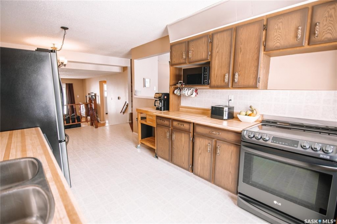 Welcome to this spacious 1,440 sq ft two-storey split located on a quiet street in a family-friendly neighborhood, conveniently situated close to a local school and everyday amenities. This home offers a great opportunity for buyers looking for space, value, and the ability to add their own personal touches over time. Upon entering the home, you are welcomed into a bright and comfortable main living area that provides plenty of room for both relaxing and entertaining. Laminate flooring adds a modern touch while also offering durability for busy households. Large windows throughout the home help bring in natural light, creating a warm and inviting atmosphere. The functional layout continues into the kitchen and dining area, which offers plenty of cabinet and counter space along with room for a full dining table, making it ideal for family meals or hosting gatherings with friends. The kitchen comes complete with appliances including the fridge, stove, and dishwasher, adding immediate value and convenience for the next owners. This home features three well-sized bedrooms, providing flexibility for families, guests, or even a dedicated home office space. The bathrooms have been upgraded, including the main bathroom which has been converted to a modern three-piece layout with a shower. The lower level offers excellent potential for future development. Currently open and ready for your ideas, the basement provides an opportunity to create additional living space such as a recreation room, home gym, extra bedroom, or hobby area depending on your needs. Outside, the property offers a yard with space to enjoy the outdoors and provides room to build a future garage if desired and features a natural gas BBQ hook up. With solid square footage, important updates already completed and room to customize the unfinished basement, this property represents an excellent opportunity for buyers looking for a home with great potential and strong value.