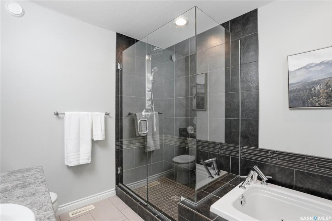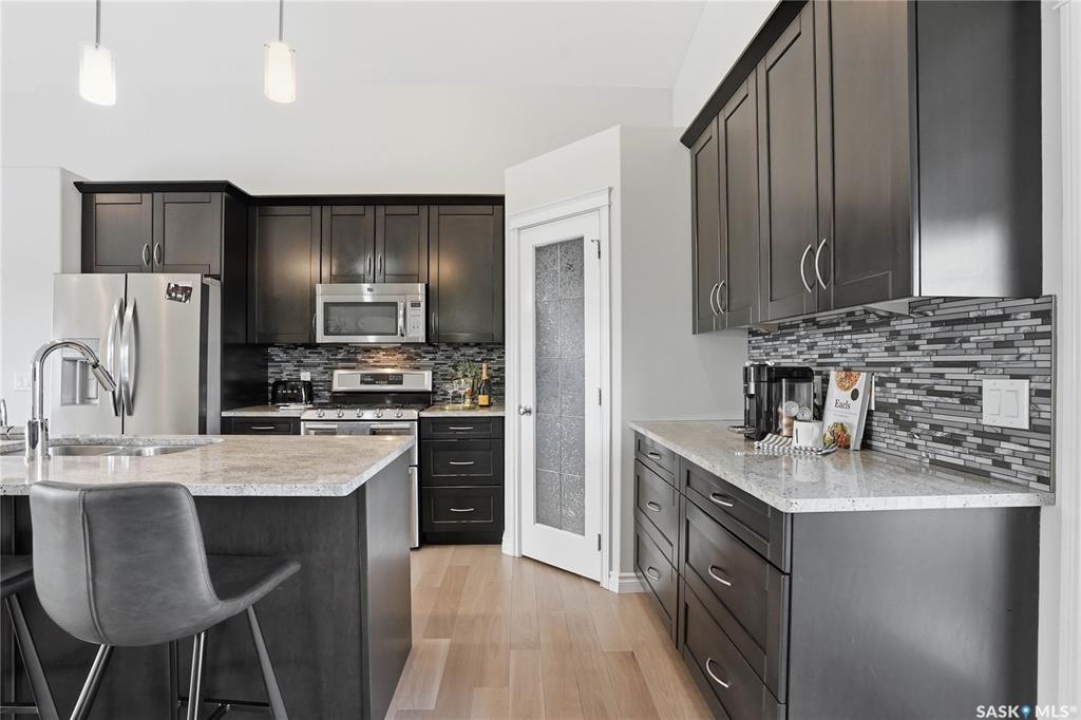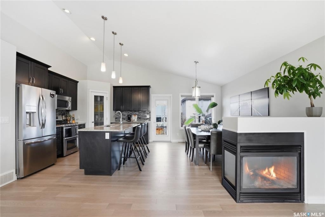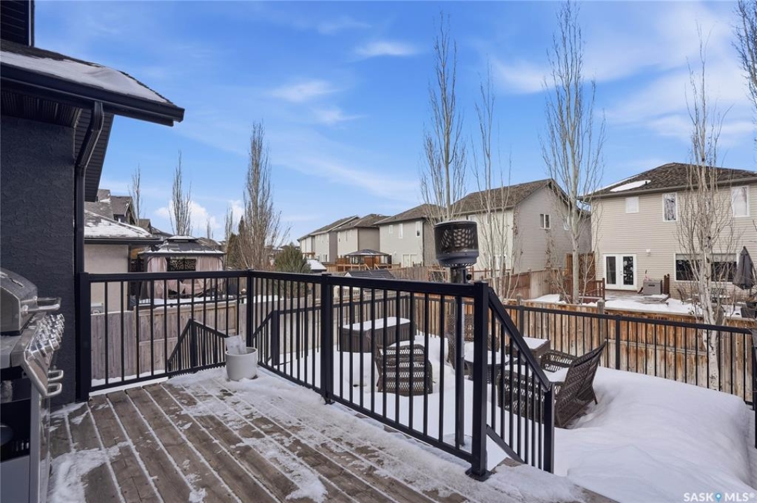 Stonebridge modified bi-level offering 1,455 sq. ft., 4 bedrooms, and 3 full bathrooms, ideally located on one of the neighbourhood's most desirable crescents — with all the features you could hope for! Step into a welcoming vaulted foyer. Just ahead is a bright, open great room featuring gorgeous newer genuine modern hardwood floors, a large picture window, a 3-sided fireplace, and soaring vaulted ceilings that continue throughout the main living space. The great room connects to a spacious dining area and a modern kitchen complete with stainless steel appliances, a central island with granite counters, tile backsplash, and a corner pantry — an exceptional layout for family living and entertaining. The main floor also offers a functional laundry room, 2 bedrooms, and a 4-piece bathroom with granite counters and tile flooring. The second level is a luxurious primary suite, featuring an oversized bedroom with a connected sitting room. The 5-piece ensuite includes a jetted soaker tub, glass shower with tile surround, double sink vanity, and a customized walk-in closet with drawers and built-in storage. The fully developed basement provides even more living space with a very spacious family room featuring a 2nd gas fireplace, a four-piece bathroom, and a connected games area or gym. This level also includes a lrg 4th bedroom with walk-in closet, plus utility and storage space. Outdoor living is accessed from the great room, leading to a fantastic double-tiered deck — truly an entertainer's dream. The yard offers tall trees for privacy and complete landscaping, plus shed storage. Additional upgrades include a heated double garage, heated floors in bathrooms, newer high-end hardwood throughout the entire main floor, central air, u/g sprinklers, nat gas BBQ hookup, customized closets, central vac, and two gas fireplaces. Located just a short distance to parks, schools, and shopping, this home sits on one of Stonebridge's most sought-after streets.