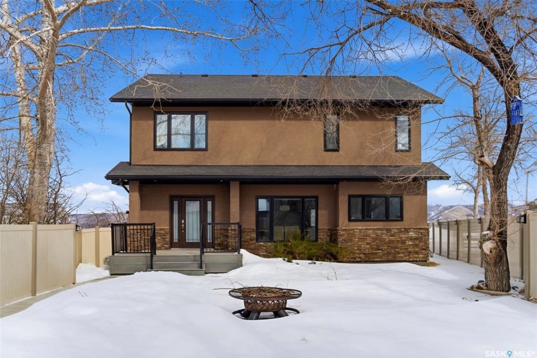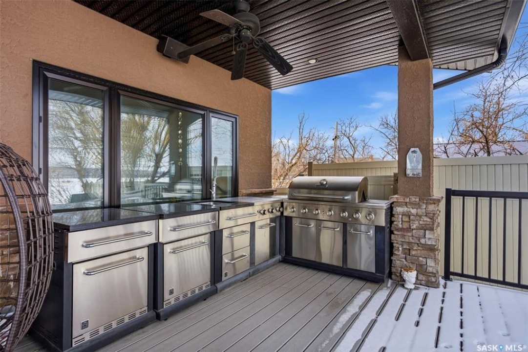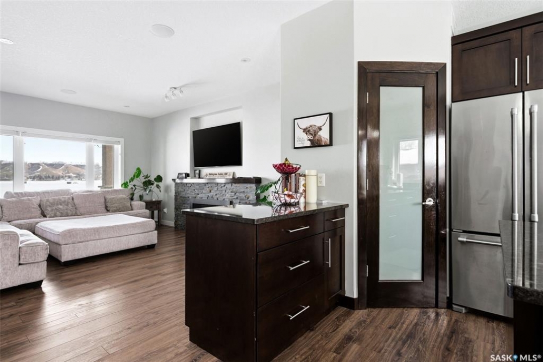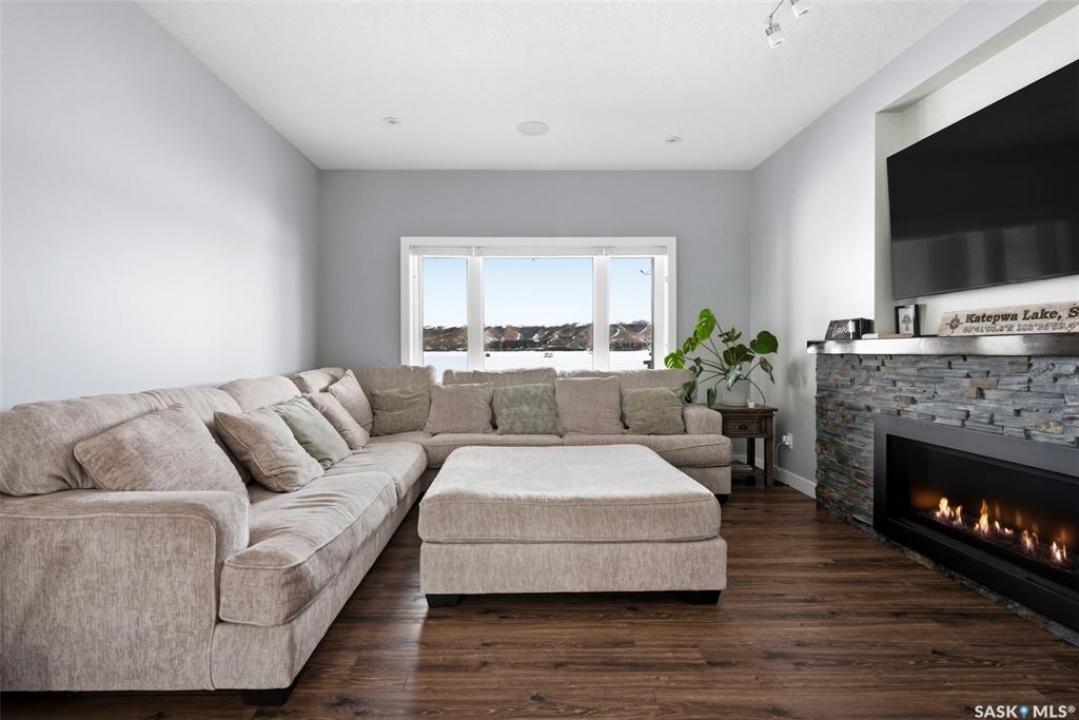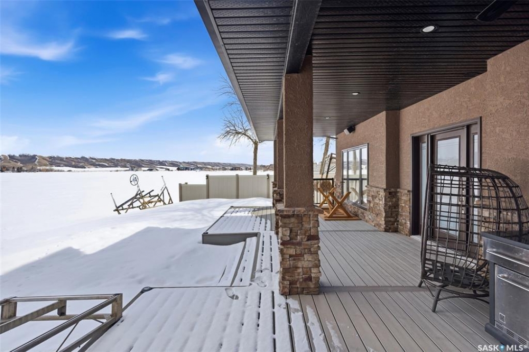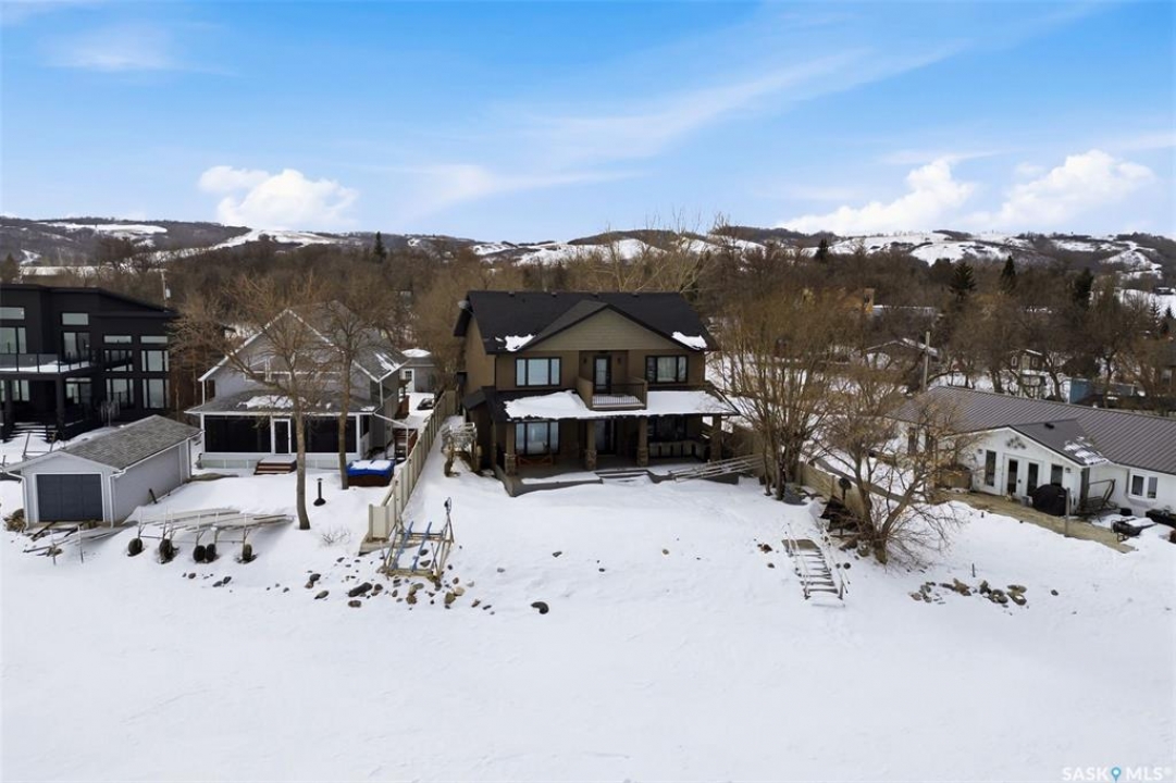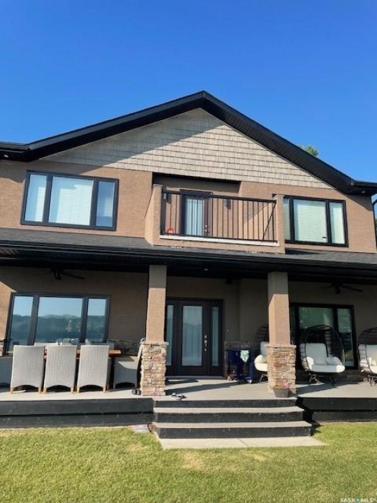 Stunning 2-storey lakefront home in the desirable Maples area of Katepwa Lake offering 4 bedrooms, 3 bathrooms and 2,524 sq ft of living space on a beautifully landscaped lot with 86 feet of waterfront. The main floor features a bright open-concept layout with 9 ft ceilings, oversized windows, a spacious foyer, upgraded lighting, a 2-piece bath, and a bedroom with lake views. The kitchen includes stainless steel appliances, wood cabinetry, pantry, granite countertops, glass-tiled backsplash, and a large sit-up island open to the dining area. The living room offers stunning lake views and a cozy fireplace. Upstairs you'll find a large recreation room with balcony access, two additional bedrooms, a 4-piece bath, convenient second-floor laundry, and a spacious primary suite with walk-in closet and 3-piece ensuite. Enjoy outdoor living on the huge covered deck overlooking the park-like yard and lake. Built in 2015, the home features Trex and DuraDeck decking, Regal railings, built-in sound system, on-demand hot water, underground sprinklers, and a fully landscaped yard. The property also includes an insulated double detached garage with plenty of additional parking. 2023 upgrades include a state-of-the-art stereo system, asphalt driveway, garage heater, fencing, Orbit irrigation system, reverse osmosis water system, water softener, and front deck extension. Located just steps from Breeze Park with playground, pickleball, tennis and basketball courts, ball diamond and sand volleyball. Minutes from Katepwa Provincial Park, golf course, trails, store, gas and dining, and only 15 minutes to Indian Head with K–12 schools, hospital, grocery, restaurants and shopping. Lot dimensions as per ISC.