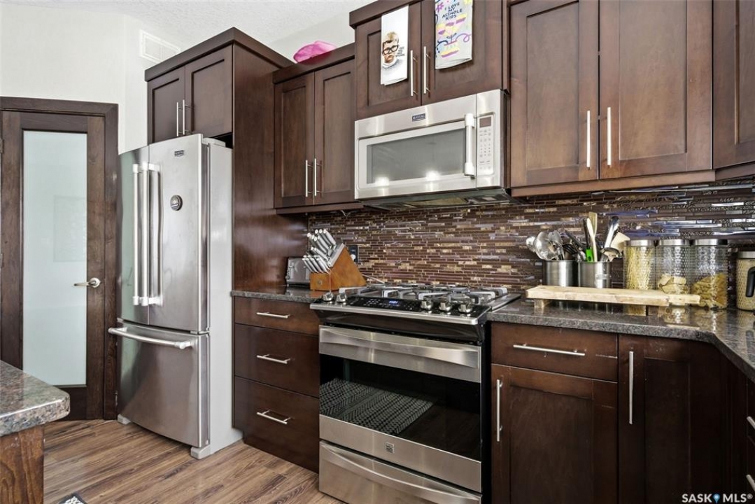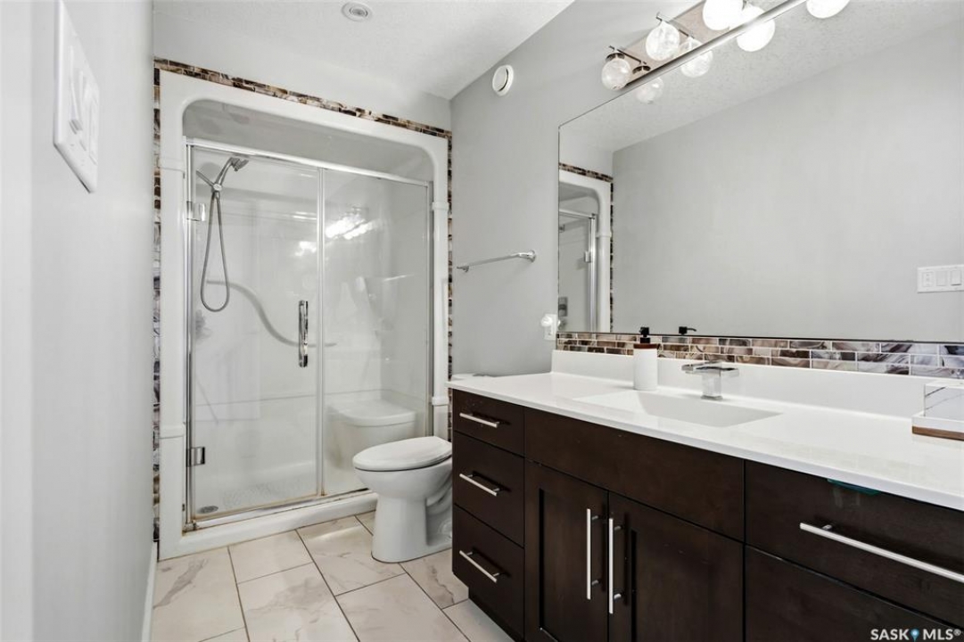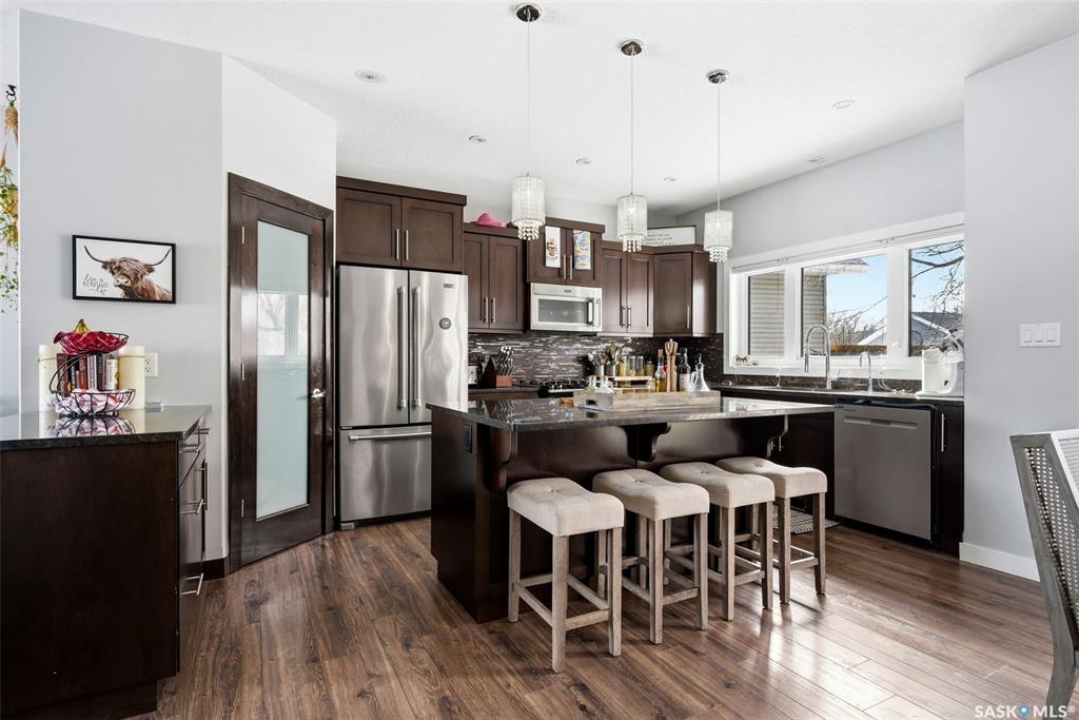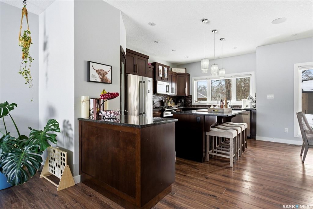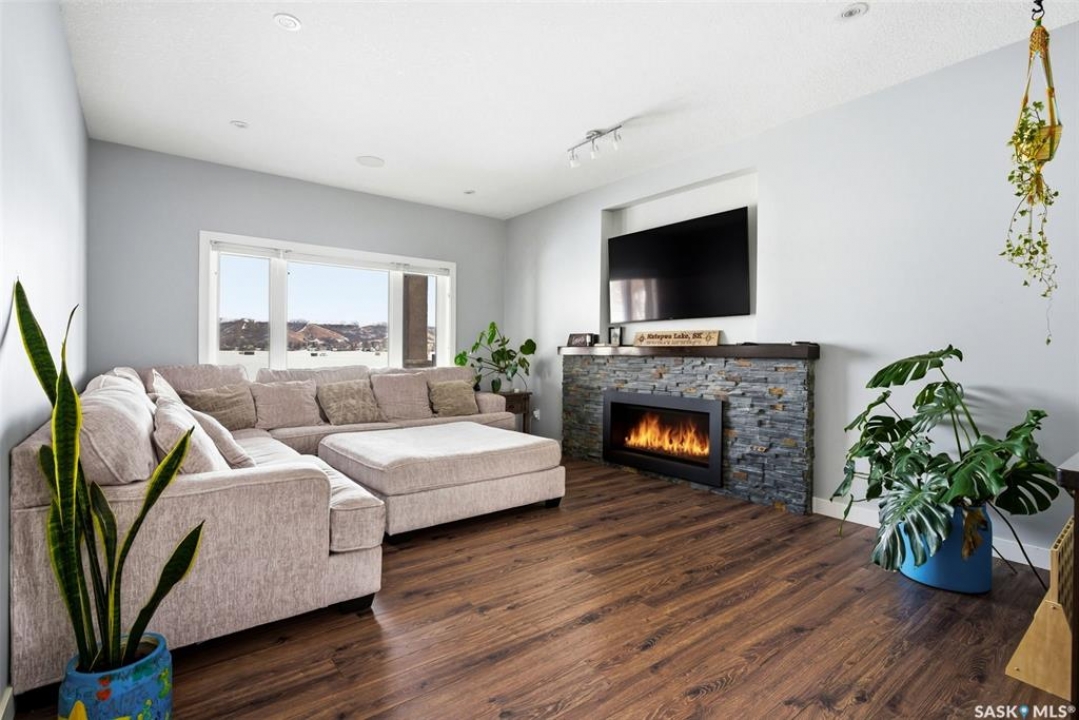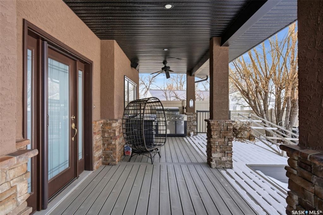 Stunning 2-storey lakefront home in the desirable Maples area of Katepwa Lake offering 4 bedrooms, 3 bathrooms and 2,524 sq ft of living space on a beautifully landscaped lot with 86 feet of waterfront. The main floor features a bright open-concept layout with 9 ft ceilings, oversized windows, a spacious foyer, upgraded lighting, a 2-piece bath, and a bedroom with lake views. The kitchen includes stainless steel appliances, wood cabinetry, pantry, granite countertops, glass-tiled backsplash, and a large sit-up island open to the dining area. The living room offers stunning lake views and a cozy fireplace. Upstairs you'll find a large recreation room with balcony access, two additional bedrooms, a 4-piece bath, convenient second-floor laundry, and a spacious primary suite with walk-in closet and 3-piece ensuite. Enjoy outdoor living on the huge covered deck overlooking the park-like yard and lake. Built in 2015, the home features Trex and DuraDeck decking, Regal railings, built-in sound system, on-demand hot water, underground sprinklers, and a fully landscaped yard. The property also includes an insulated double detached garage with plenty of additional parking. 2023 upgrades include a state-of-the-art stereo system, asphalt driveway, garage heater, fencing, Orbit irrigation system, reverse osmosis water system, water softener, and front deck extension. Located just steps from Breeze Park with playground, pickleball, tennis and basketball courts, ball diamond and sand volleyball. Minutes from Katepwa Provincial Park, golf course, trails, store, gas and dining, and only 15 minutes to Indian Head with K–12 schools, hospital, grocery, restaurants and shopping. Lot dimensions as per ISC.
