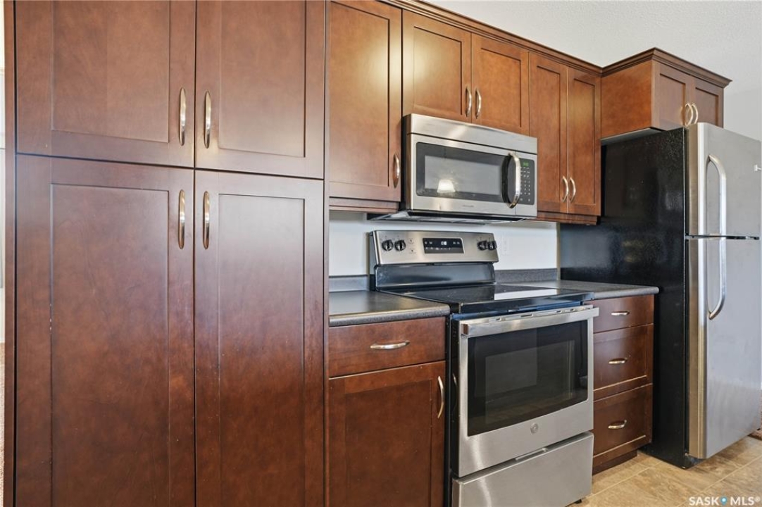 Are you looking for easy living? This beautifully updated main floor condo sits on the East side by the courtyard and boasts no stairs - which is sure to be a hit. Heading inside we find a large open concept living area! A spacious living room opens to a large eat-up island with stunning wood cabinetry. The spacious galley style kitchen boasts lots of storage and counter space as well as a stainless steel appliance package! Down the hall we find stunning french doors leading to an office. Next we find a spacious 4 piece bathroom with in unit laundry! At the end of the hall we find two good sized bedrooms! This condo has been beautifully cared for - pride of ownership shows throughout! Centrally located within walking distance to downtown and Wakamow Park. Low condo fees and a quick possession available! Reach out today to book your showing!