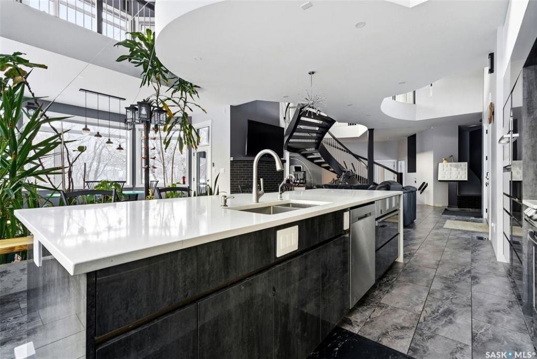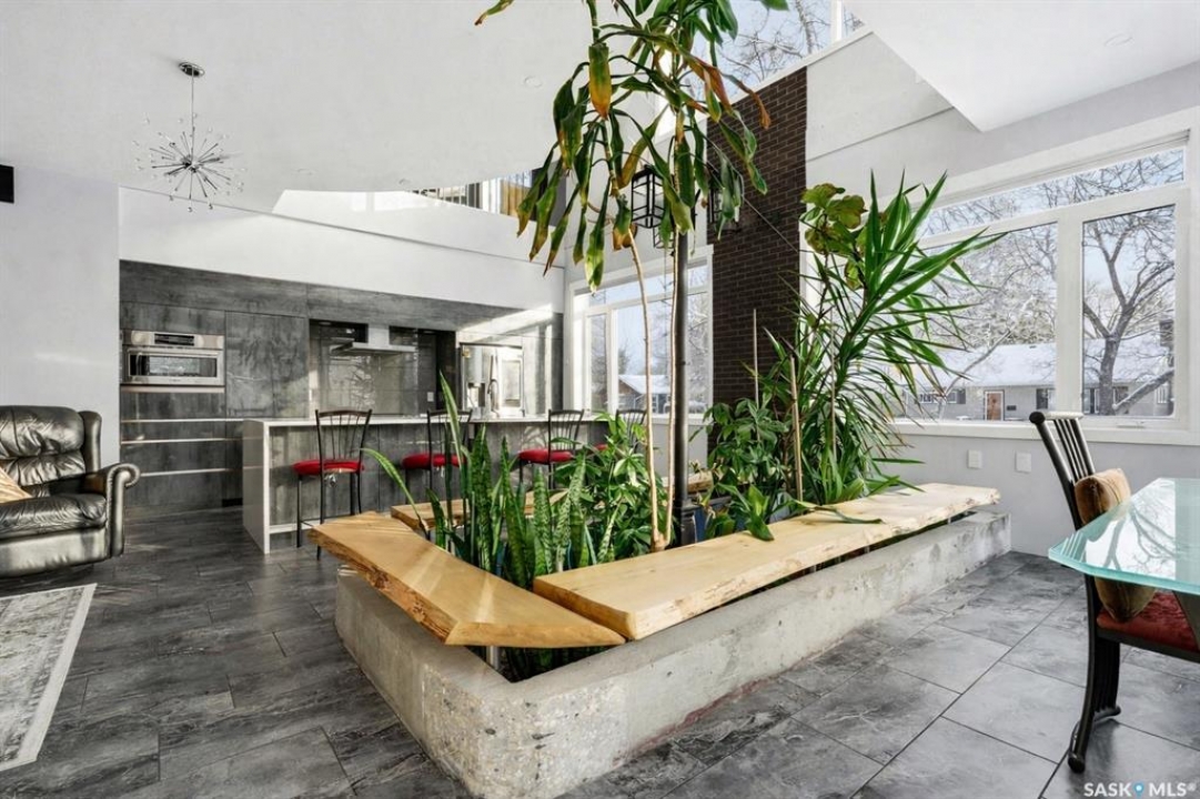 Welcome to an extraordinary architectural statement in the heart of Lakeview. This one of a kind home is a private sanctuary surrounded by mature trees and natural beauty rarely found in the city. Thoughtfully designed to bring the outdoors in, the home offers a sense of calm, space, privacy, and quiet luxury from the moment you arrive. Inside, a dramatic custom curved staircase rises through the centre of the home, creating a striking visual connection between levels. At its heart lies a breathtaking indoor garden sanctuary flooded with sunlight and visible from multiple living spaces, offering a daily connection to nature in every season. Expansive windows frame the surrounding greenery, filling the home with warmth and natural light. The chef's kitchen is both refined and functional, featuring custom cabinetry, quartz countertops, stainless steel appliances, and a concealed walk-in pantry. Designed for effortless entertaining, the main living areas flow seamlessly into a screened sunroom overlooking the serene backyard. The upper level is a retreat of its own, offering a theatre room overlooking the indoor garden, an office loft, bonus room, an additional bedroom and bathroom, laundry room, and an exceptional primary suite. The primary retreat features abundant natural sunlight, a sitting area, built-in closet, and a spa-inspired ensuite with a custom steam shower and standalone tub. The lower level provides three independent living areas, offering flexibility for multi-generational living or income opportunities. An oversized heated double garage with epoxy flooring and floor drain adds everyday convenience, while a backup generator ensures uninterrupted comfort year round. Outside, the south facing yard unfolds as a secluded urban oasis with a central courtyard, tiered landscaping, retaining walls, and mature greenery creating total privacy. Built on an extensive pile foundation, this home is a rare blend of architectural distinction and lifestyle value.