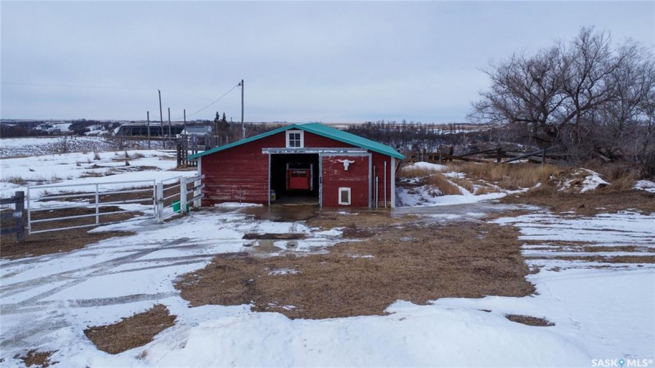 Peaceful Acreage Living on 29.38 Acres! Escape the hustle and enjoy the space and serenity this beautiful 29.38-acre property has to offer. This 1,380 sq. ft. bungalow features 3 bedrooms and 1 bathroom, providing comfortable and functional country living. The main floor offers a bright and inviting layout with a spacious living area, large windows that fill the home with natural light, and a welcoming kitchen with plenty of cabinet space. Three comfortable bedrooms complete the main level. The home also features a full unfinished basement, offering tons of potential for future development — whether you envision additional living space, a recreation area, extra bedrooms, or plenty of storage. Outside, the property truly shines. Enjoy wide-open space with 29.38 acres of land, ideal for hobby farming, animals, gardening, or simply embracing peaceful rural living. The property includes multiple outbuildings including a barn and shops, providing excellent space for storage, projects, or equipment. For added durability and low maintenance, the house, barn, and shops all feature metal roofs. Whether you're looking for room to grow, a hobby farm, or a private acreage retreat, this property offers endless possibilities and the chance to create your own piece of country paradise.