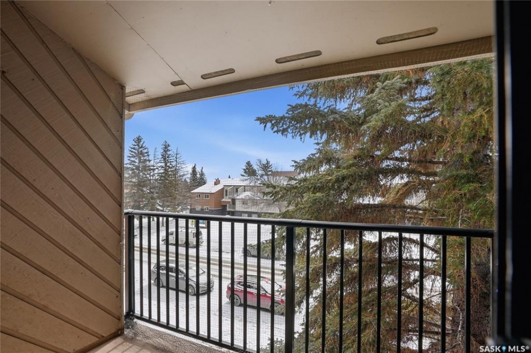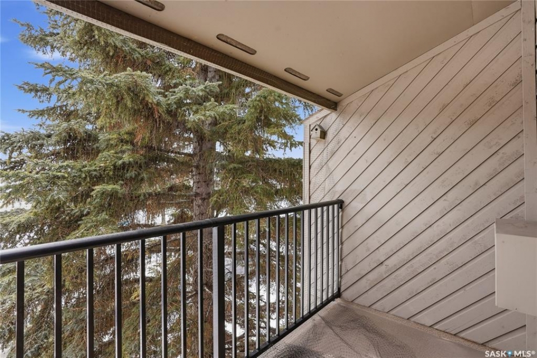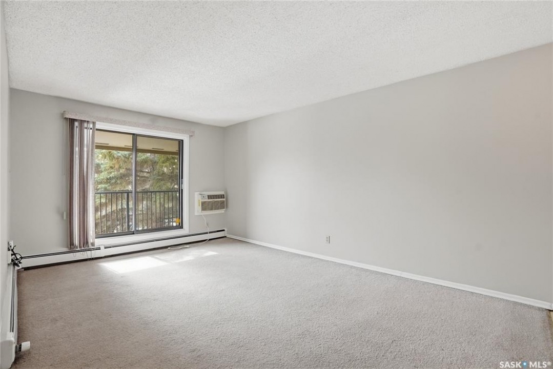 This is a bright & well-kept 2-bedroom, 1 bath, a large storage room, a white galley kitchen with a dinette area. The Open living room is filled with sunshine, patio doors to a south-facing balcony with a beautiful spruce tree for privacy. Wall-mounted AC to keep your area cool. Located in East College, a desirable area close to shopping & U of S, with an excellent bus route. Make your appointment today.
