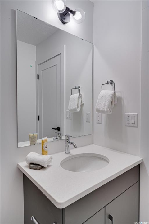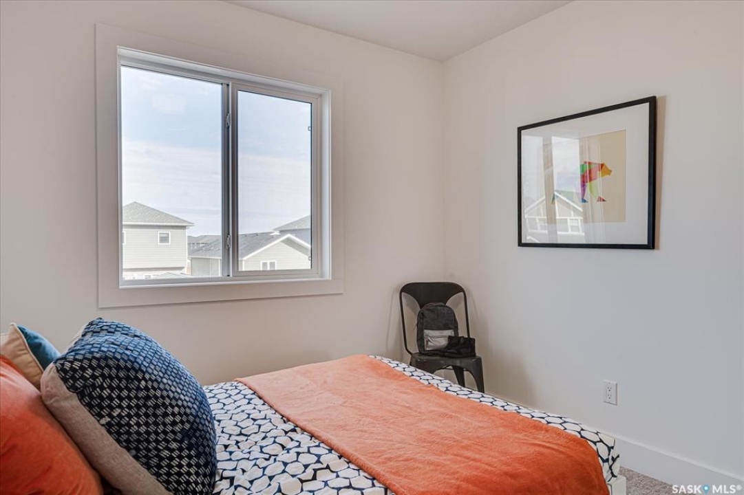 Welcome to Hudson Row 3, Saskatoon's newest townhome project located in The Meadows at Rosewood. This Scandinavian inspired streetscape will create an unmatched timeless curb appeal that is sure to catch people's eye. The 1461 SF open concept interior includes all the premium designer finishes people have come to expect with Arbutus Properties. The main floor includes an efficient layout with large front and back windows that flood the space with natural light and is covered by premium flooring. The centrally located chef's kitchen includes trendy flat panel cabinetry highlighted with matt black hardware, quartz counters, stylish backsplash and a full stainless appliance package. The upper floor includes 3 generously sized bedrooms, 4pc bathroom, a convenient flex space that was designed to cater to a variety of uses and an easy to access laundry closet. Also on the upper floor is the master bedroom that includes a walk-in closet and a private ensuite. The exterior of the home is covered in durable James Hardie composite siding and comes inclusive with private fenced landscaped yards, a rear deck & a double detached garage at the rear. Located near multiple parks, commercial amenities, Costco and within a block from 2 new community schools makes this a must see! "Disclaimer, all cabinets in these units will be flat white , floor tiles will be grey, backsplash is white, AI generated kitchen showing example with Island, but cabinets will be flat panel, picture in listing showing colour patterns! Contact Agent for more information. Garages can not be done until June when frost is all out. Pictures are from our last showhome.
