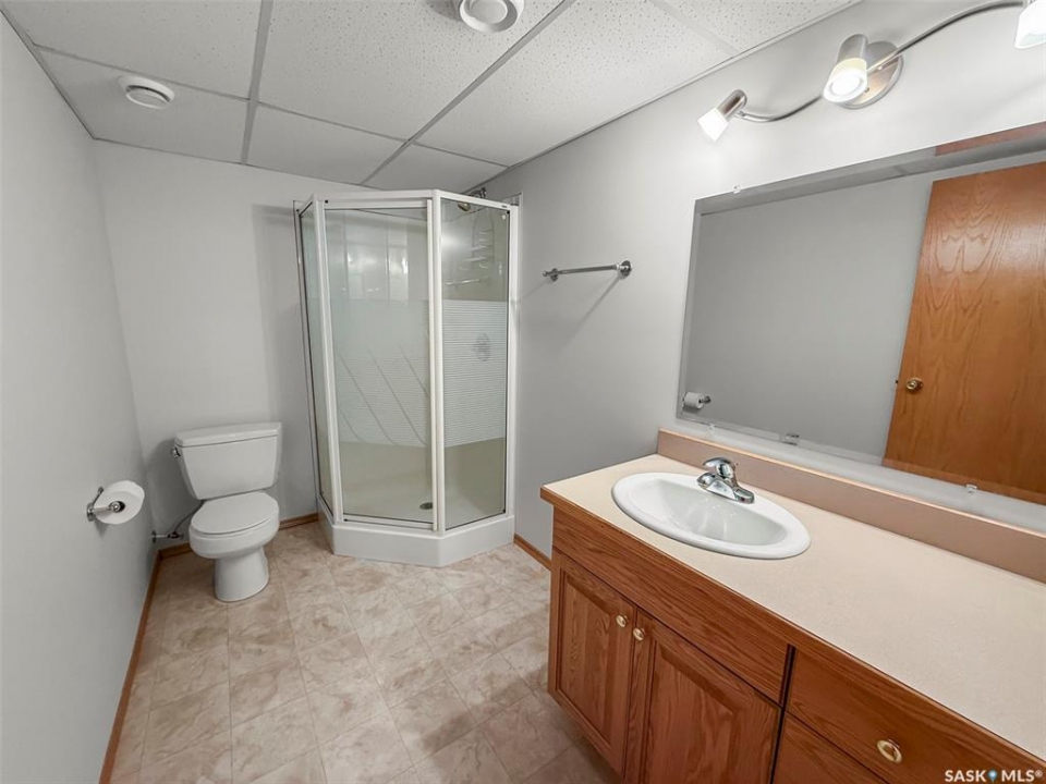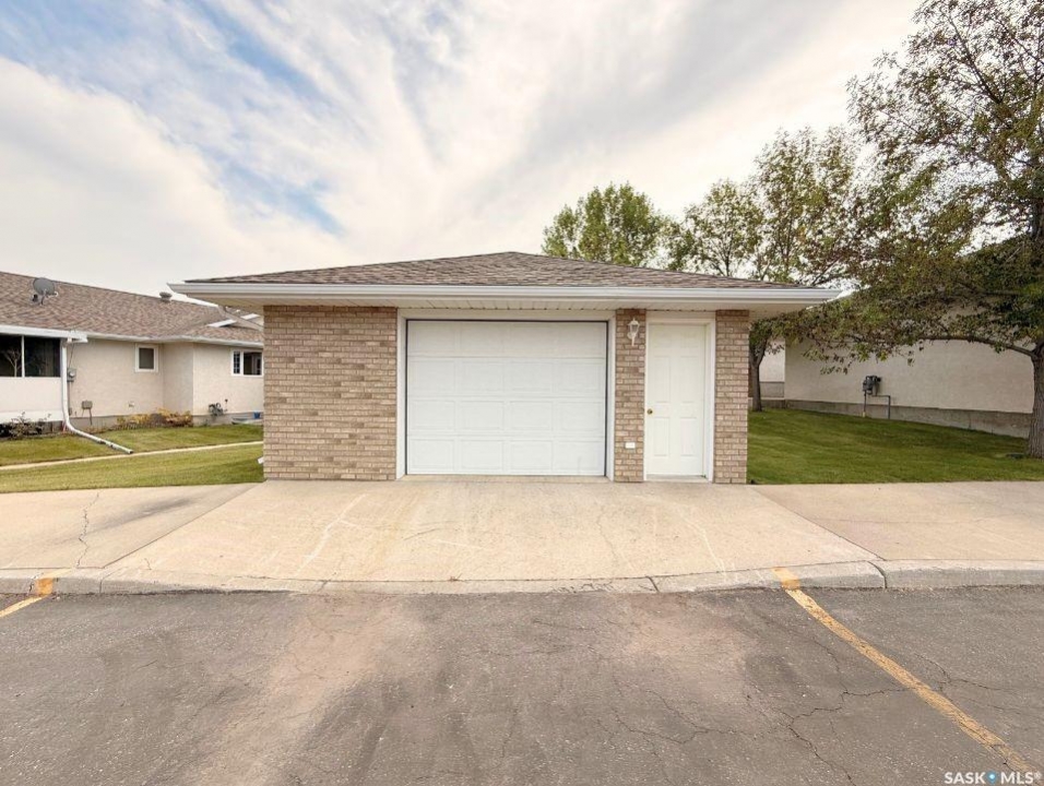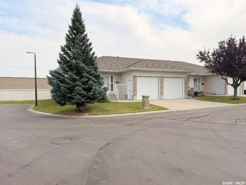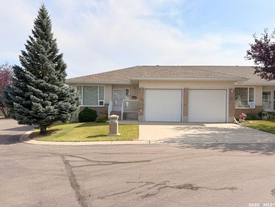 Bungalow-style condos with a double attached garage in Pioneer Estates, a gated community in the sought-after Trail subdivision, rarely come to market—making this one a must see. Welcome to #417 – 165 Robert Street W, a well maintained end-unit bungalow condo offering privacy, space, and convenience. Tucked at the quiet end of the development, this location enjoys minimal traffic, nearby visitor parking, and easy access to the community clubhouse. A nearby pathway connects to the Chinook Pathway, and Wheatland Mall is just steps away. Inside, a spacious foyer welcomes you into a bright, open-concept main floor. The living room is filled with natural light from a large west-facing window, creating a warm and inviting space to relax or entertain. The kitchen features abundant oak cabinetry, generous counter space, and a pantry, flowing seamlessly into the dining area. Just beyond, an east-facing sunroom offers the perfect spot to enjoy your morning coffee or unwind in the evening. The main floor also includes a convenient laundry room, a second bedroom, a 4-piece bathroom, and a comfortable primary suite complete with a walk-in closet and private 3-piece ensuite. The fully developed basement expands the living space with a large recreation room, two storage areas, a spacious bedroom with its own 3-piece ensuite and walk-in closet, plus a versatile den ideal for guests, hobbies, or a home office. Shingles were replaced in 2019. Condo living here is easy with a $300/month fee covering lawn care, snow removal, exterior maintenance and insurance, and garbage pickup. Opportunities like this—bungalow style, double attached garage, and a desirable location in Pioneer Estates—do not come along often.