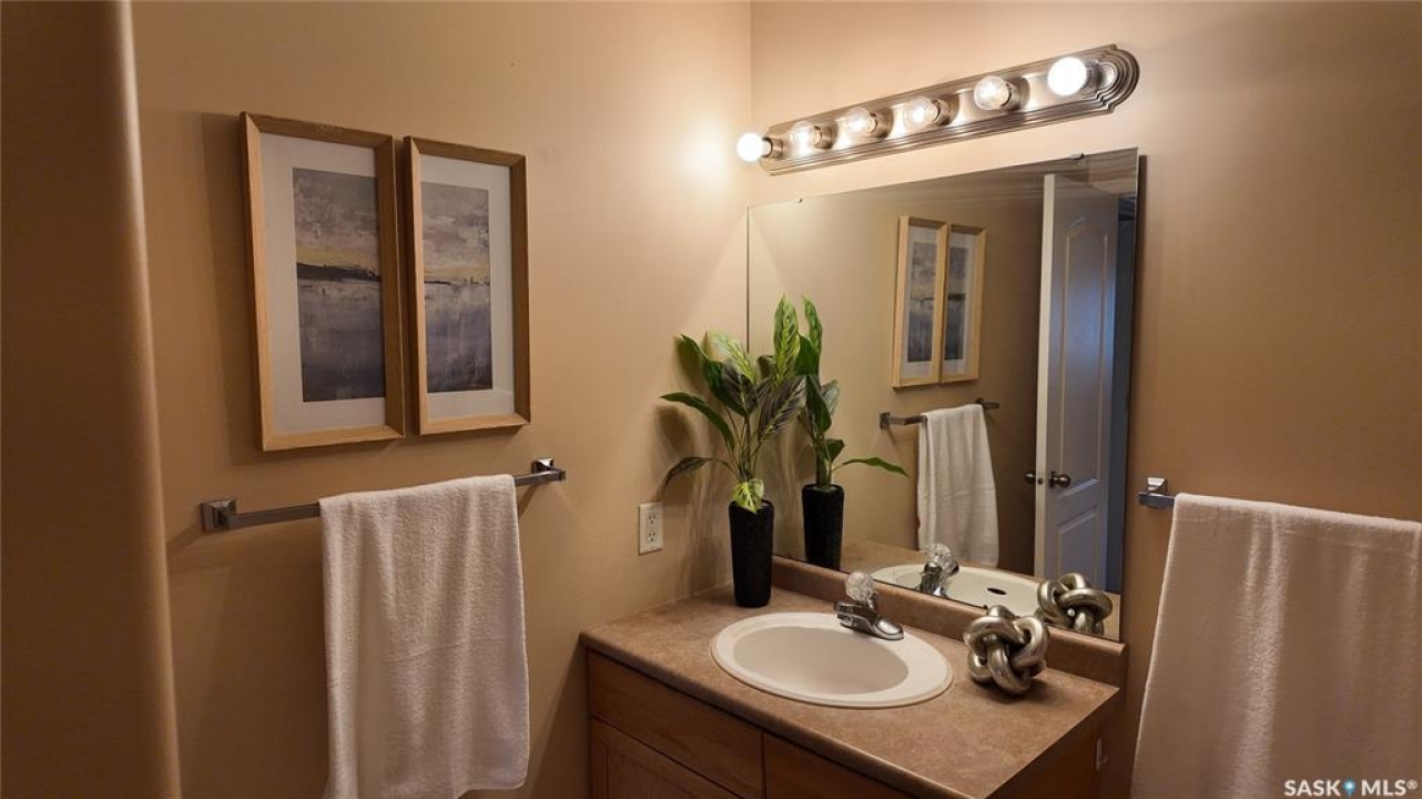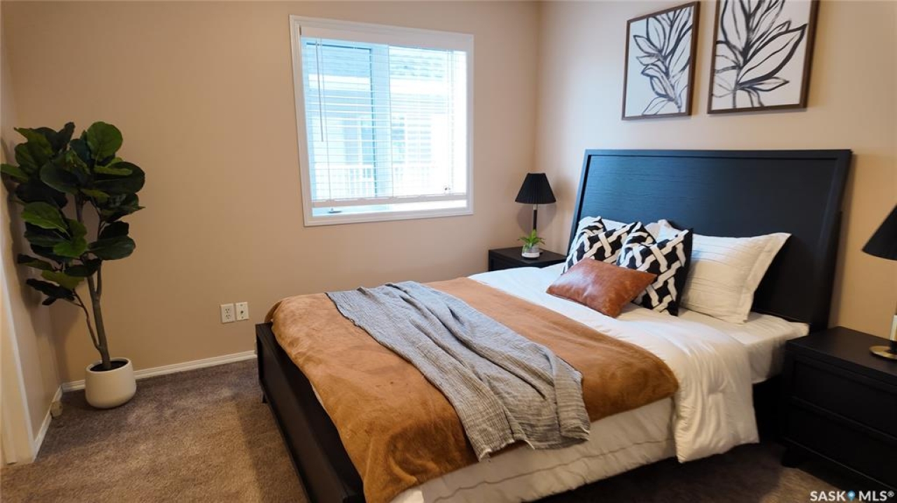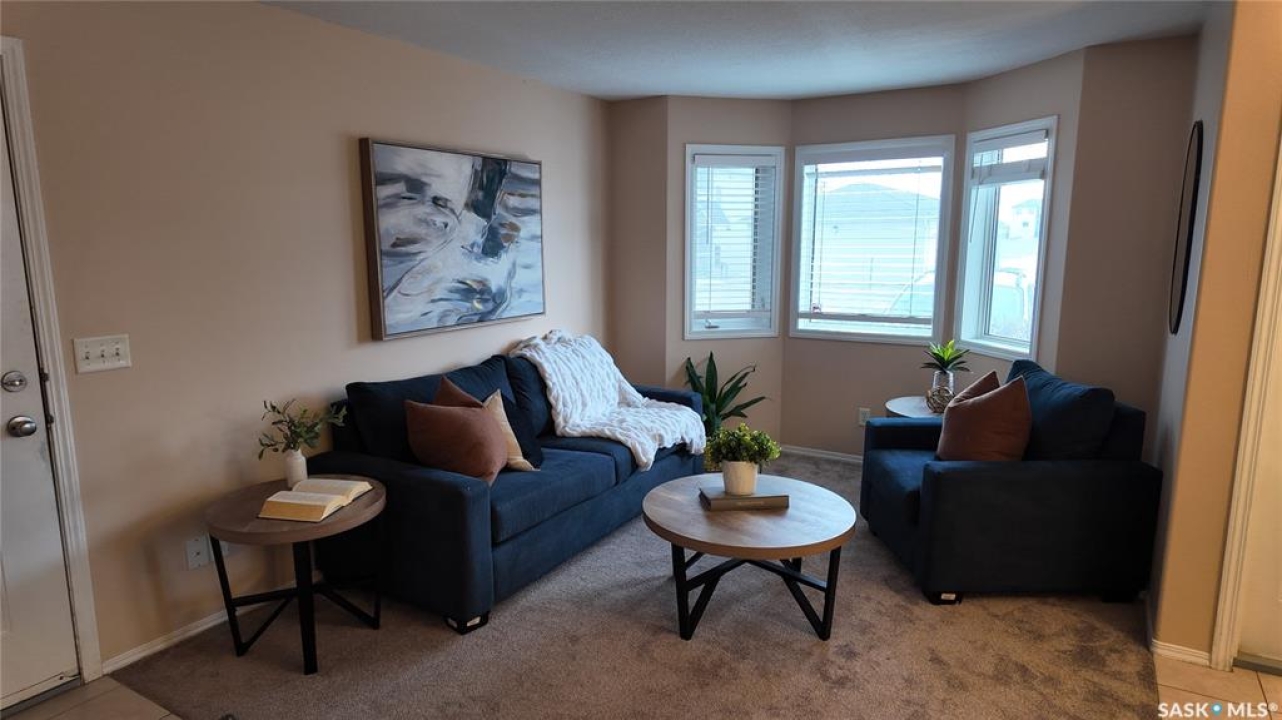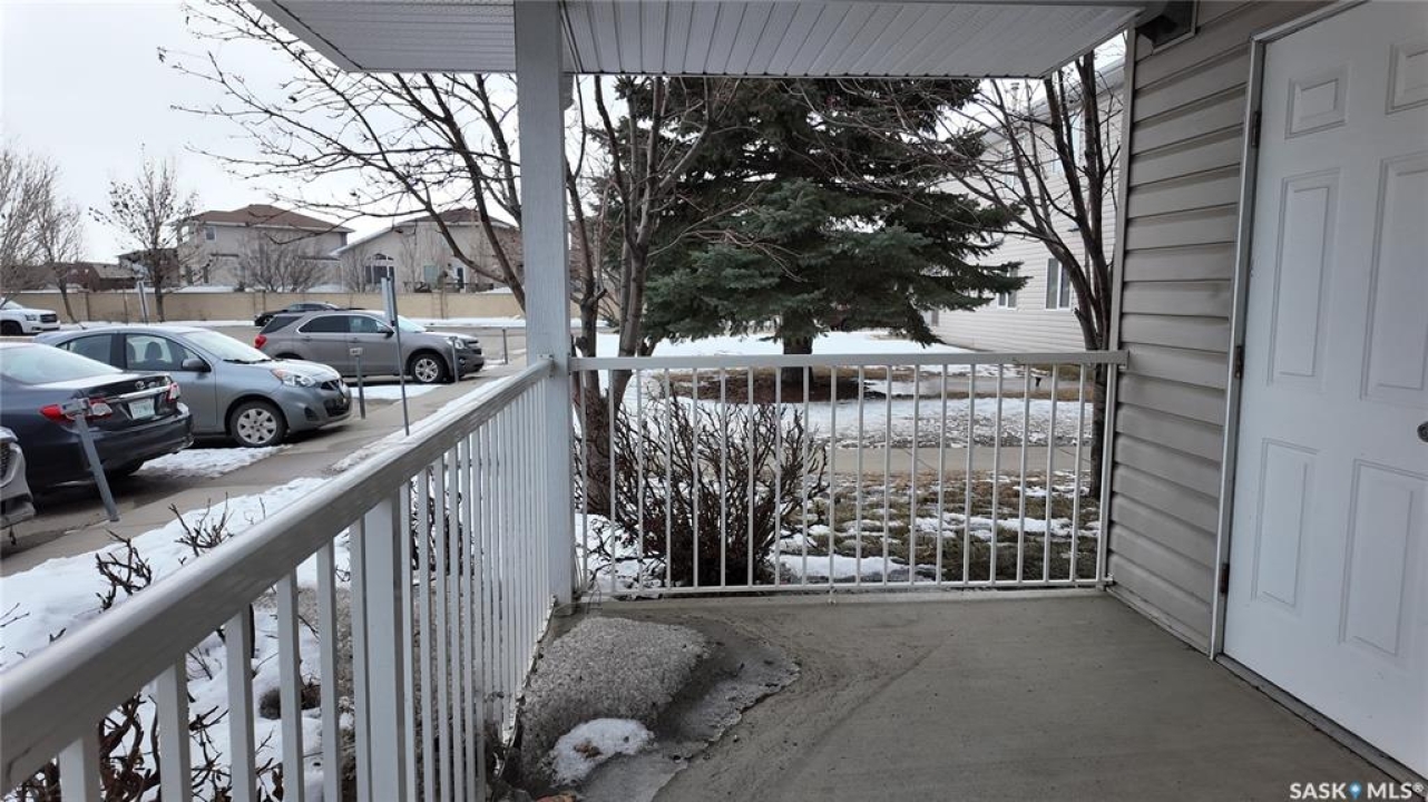Move-in ready and full of natural light, this **2-bedroom condo** is located in Regina's sought-after **east end** in a **quiet, well-maintained condo complex**. Ideally situated **across the street from public and separate schools**, this home offers a functional **open-concept layout** combining the kitchen, living, and dining areas. **Morning sunshine fills the unit**, adding warmth and brightness throughout the main living space. The kitchen is well-equipped with **plenty of cabinetry**, a **centre island**, and **new countertops**, making it perfect for everyday use and entertaining alike. Both bedrooms are generously sized with **walk-in closets**, and the **private deck** is a great spot to enjoy your morning coffee. **Four appliances are included**, making this an economical and practical choice for a variety of buyers.