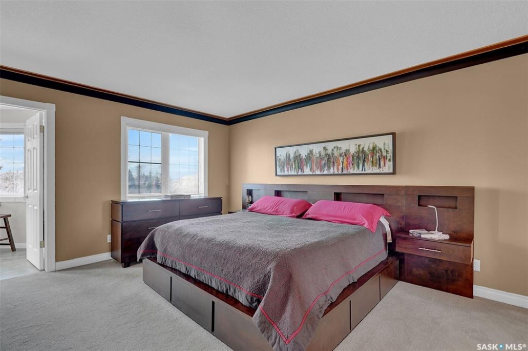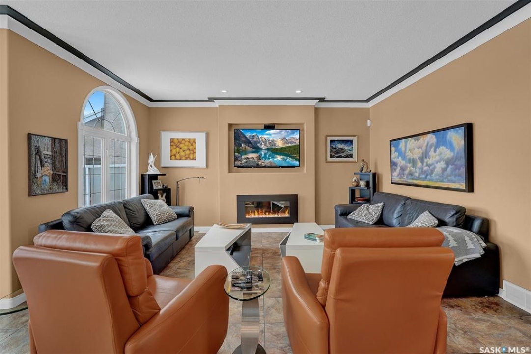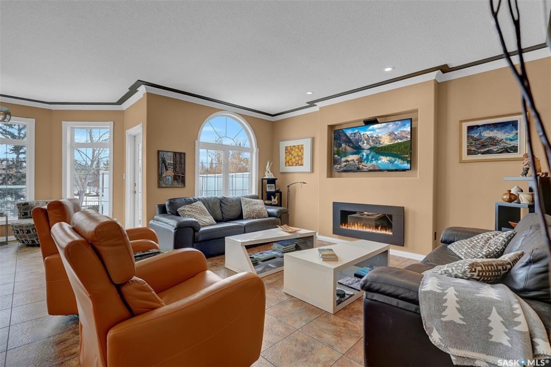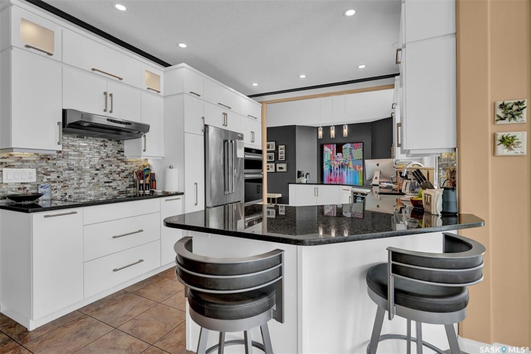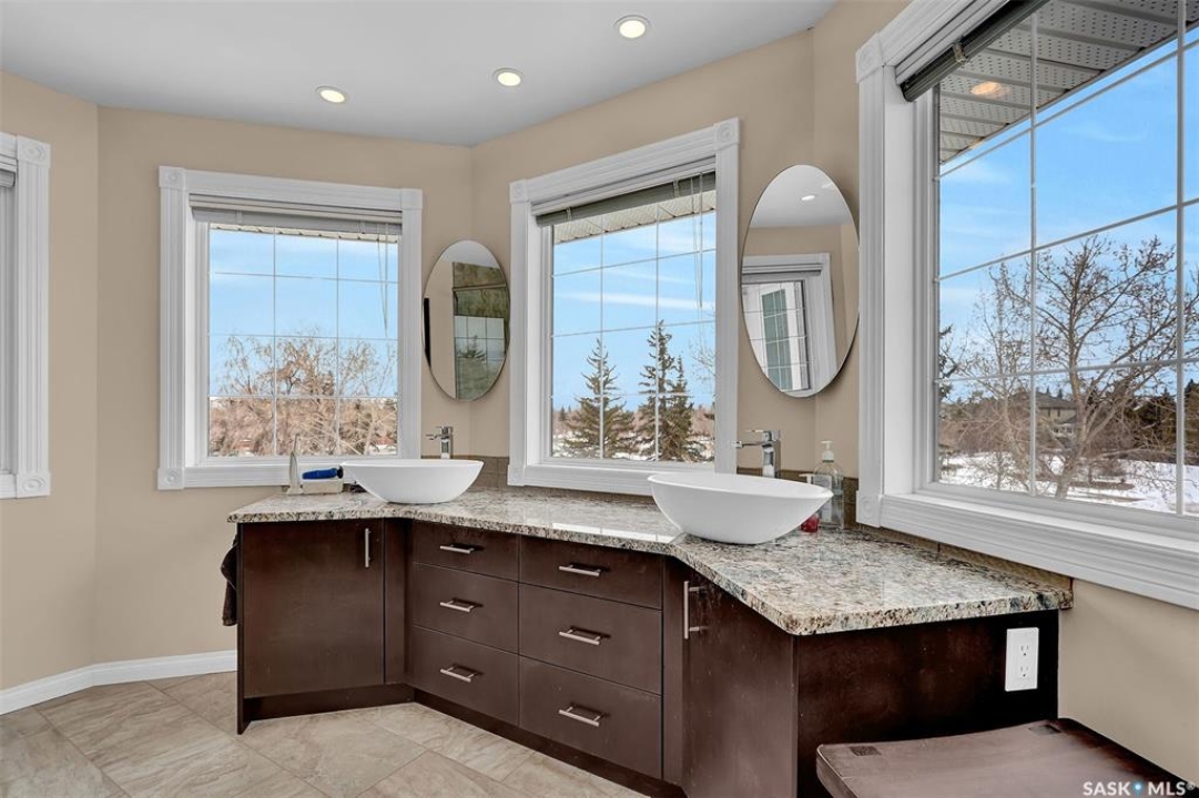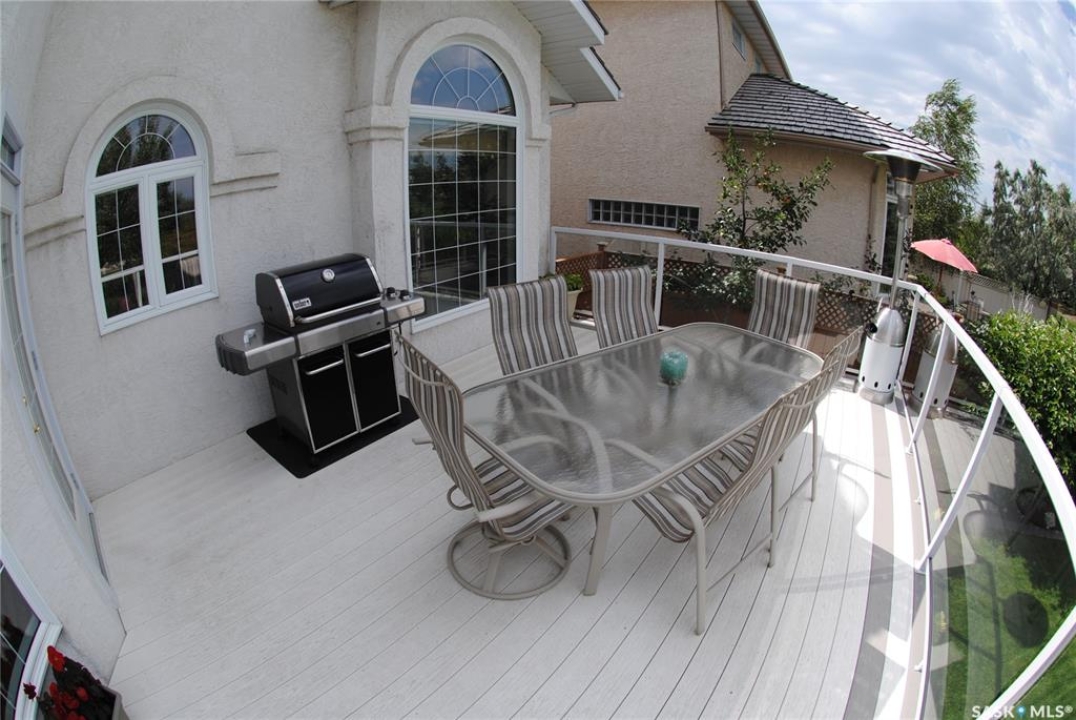 Welcome to 9463 Wascana Mews — a beautifully maintained 2-storey split nestled in one of Regina's most premium locations. Backing expansive green space, this 5-bed, 4-bath home offers exceptional privacy, stunning views, and an abundance of natural light throughout. The main floor features a bright front living room with electric blinds and a remote-controlled chandelier for effortless cleaning. The updated kitchen offers modern finishes, excellent workspace, and a seamless flow into the dining and family areas — all designed to take in the serene green space behind the home. Gorgeous spiral staircase leads you to the primary suite, a true retreat with an updated ensuite and his-and-hers closets. Three additional bedrooms and an additional bath provide great versatility for family living. Basement includes a spacious bedroom and bathroom, plus comfortable additional living spaces. (basement bedroom window may not meet current egress requirements.) Outside, the care and pride in ownership are immediately evident. The stunning park like yard is beautifully maintained and enhanced by a composite deck overlooking the open green area — the perfect setting for morning coffee or evening relaxation. Double attached heated garage features a beautiful epoxy floor, offering both function and style. The home also features built in gemstone lighting in the soffits so no more ladders for Christmas lights. Homes in locations like this are rarely available — especially ones as lovingly cared for as this. A truly special opportunity in Wascana Park.