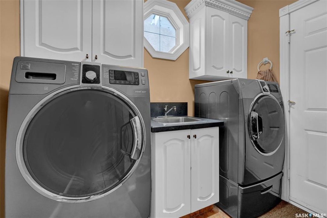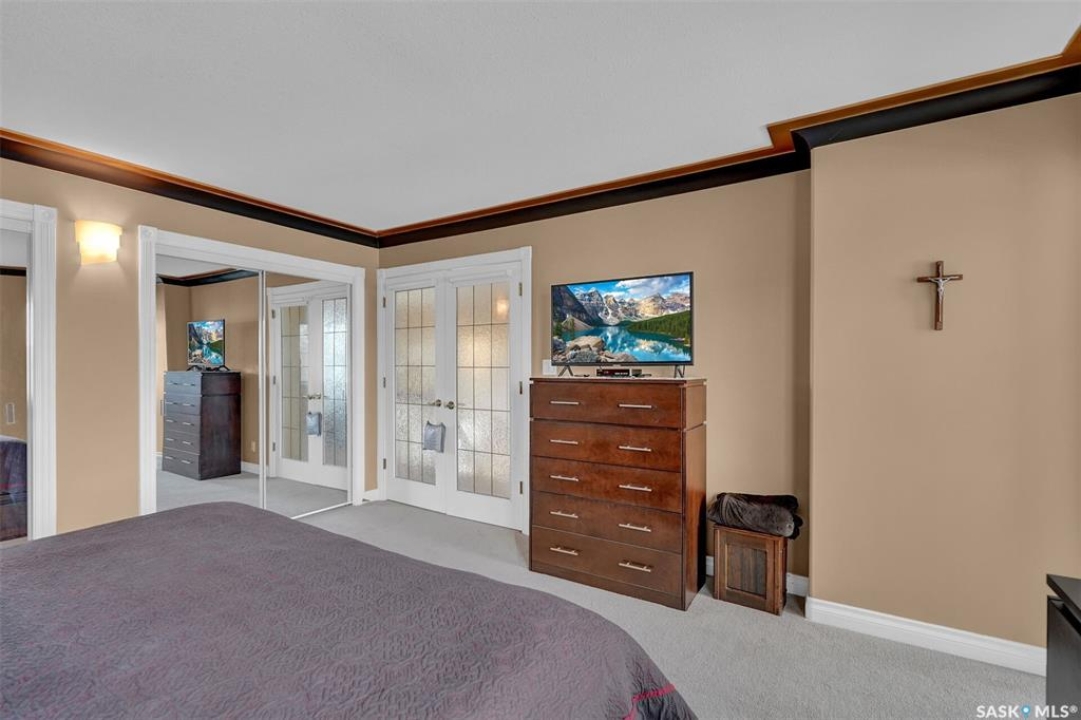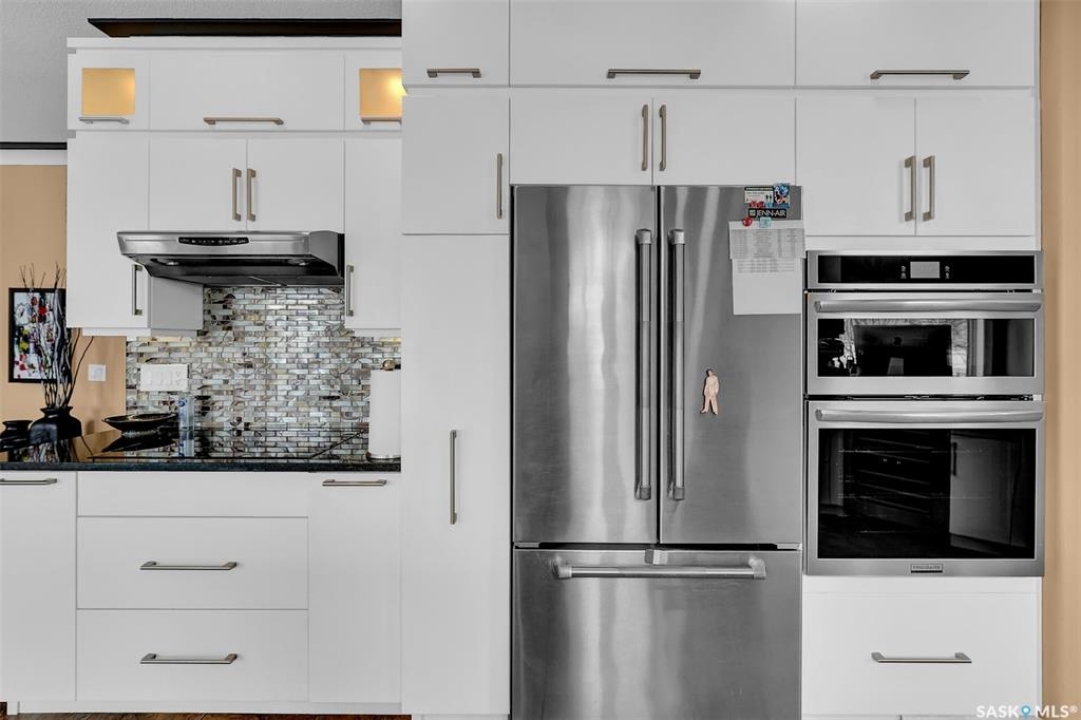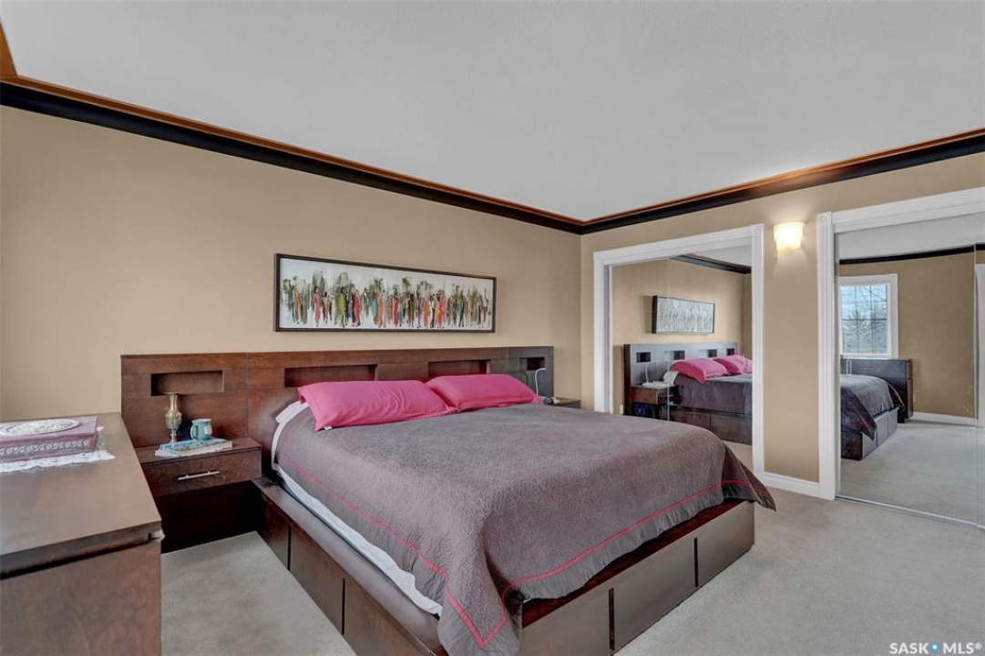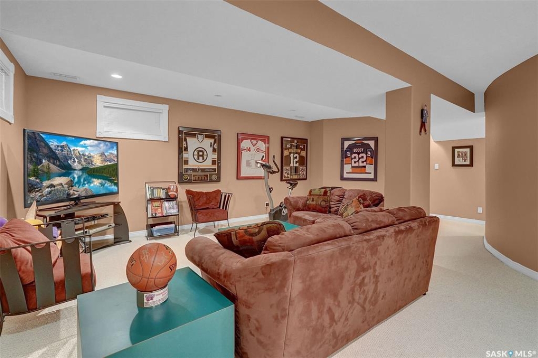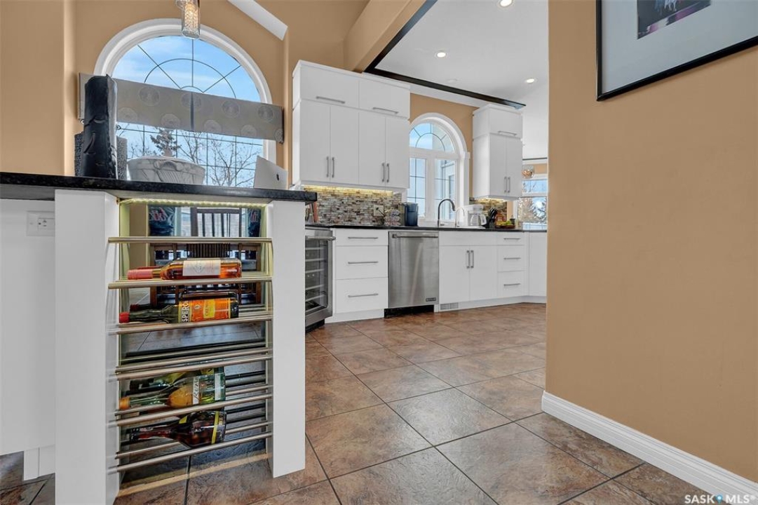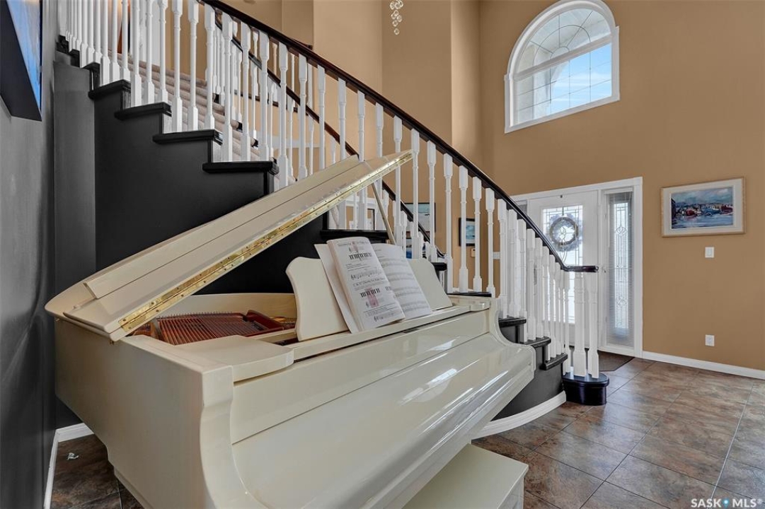 Welcome to 9463 Wascana Mews — a beautifully maintained 2-storey split nestled in one of Regina's most premium locations. Backing expansive green space, this 5-bed, 4-bath home offers exceptional privacy, stunning views, and an abundance of natural light throughout. The main floor features a bright front living room with electric blinds and a remote-controlled chandelier for effortless cleaning. The updated kitchen offers modern finishes, excellent workspace, and a seamless flow into the dining and family areas — all designed to take in the serene green space behind the home. Gorgeous spiral staircase leads you to the primary suite, a true retreat with an updated ensuite and his-and-hers closets. Three additional bedrooms and an additional bath provide great versatility for family living. Basement includes a spacious bedroom and bathroom, plus comfortable additional living spaces. (basement bedroom window may not meet current egress requirements.) Outside, the care and pride in ownership are immediately evident. The stunning park like yard is beautifully maintained and enhanced by a composite deck overlooking the open green area — the perfect setting for morning coffee or evening relaxation. Double attached heated garage features a beautiful epoxy floor, offering both function and style. The home also features built in gemstone lighting in the soffits so no more ladders for Christmas lights. Homes in locations like this are rarely available — especially ones as lovingly cared for as this. A truly special opportunity in Wascana Park.