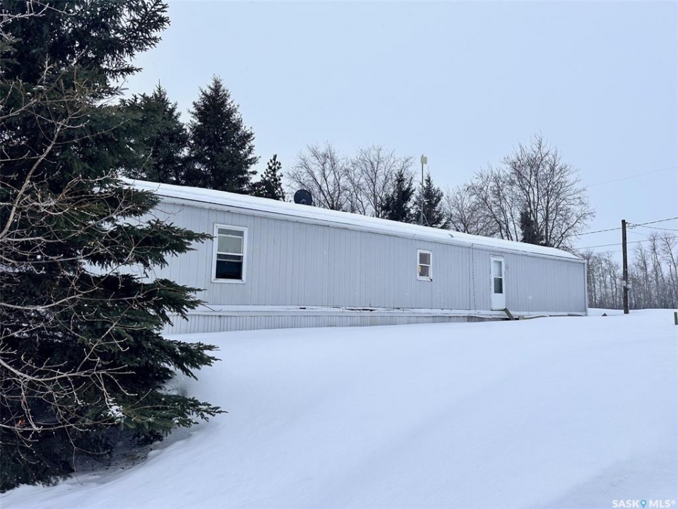 On a quiet street in the town of Dorintosh you will find this modern mobile home that backs onto green space for all the privacy you could want. This home is nicely laid out with a very spacious primary bedroom that includes en-suite and large walk-in closet. Tons of cupboard space in the kitchen, along with pantry shelving and an office space just off the kitchen. The utility & laundry room offers even more cupboard space and plenty of room as a second entry. Small town living in the peaceful north is just down the road from the city of Meadow Lake and all the amenities and recreation while being just minutes from Meadow Lake Provincial Park.