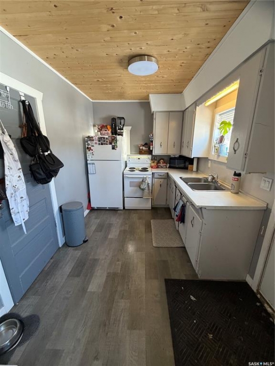 This recently updated 2 bedroom bungalow offers a functional layout and comfortable living space, perfect for first-time buyers, retirees, or as a rental property. The home features fresh paint and new flooring throughout, creating a clean and modern feel. The open concept kitchen and dining area flows nicely into the living room, making the space bright and practical for everyday living. The home also includes an updated 4-piece bathroom. The basement is primarily used for storage and includes a laundry area. Basement walls are block construction that have been reinforced and spray foamed for added stability and efficiency. The electrical panel was updated in 2025. Outside, the yard offers plenty of parking space along with a front deck and storage shed. A great opportunity for a starter home, retirement property, or investment rental!