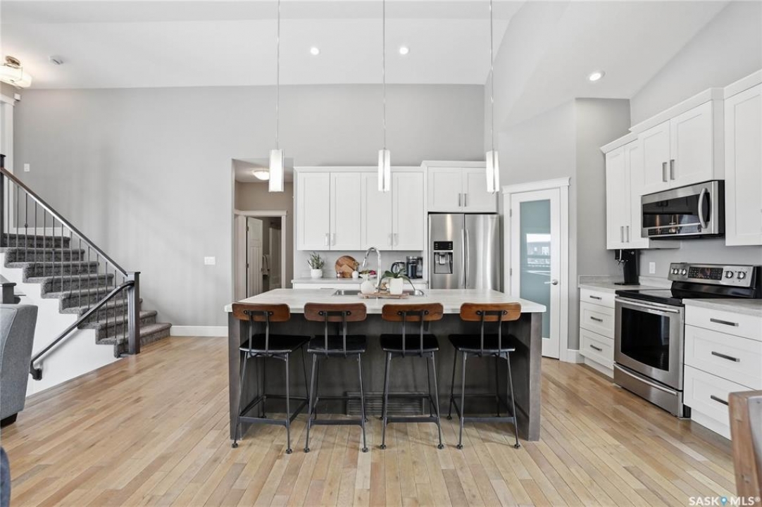 Welcome home to beautiful 504 Snead Lane located in Warman's Legends Community! This 1428 sq ft modified bilevel will be sure to impress with its quality and layout. This home comes completely developed with 4 bedrooms, 3 bathrooms and 2 large living rooms. Walking in you will notice the large welcoming foyer and huge front window which brings in tons of natural light. The main floor boasts a great kitchen for entertaining and cooking, feature wall fireplace in living room, and a large dining room. Upstairs is the Primary bedroom complete with walk in closet and a 5pc ensuite offering a walk in glass shower and separate soaker tub. Downstairs opens up into a huge 2nd living room, 4th bedroom, bathroom and laundry room. The attached oversized double garage (26x27) comes natural gas heated and allows extra space for 2 vehicles and storage. Out back you have a composite maintenance free deck opening into the fully fenced back yard. Other notables: central air conditioning, appliances, underground sprinklers, triple wide concrete driveway and much more. Close to schools, golf course, and amenities makes this a perfect family home. Don't miss out on this one!