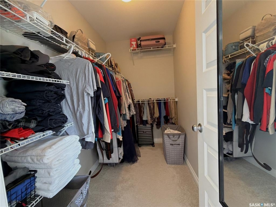 Welcome to this stunning two-storey home situated in Regina's highly desirable Greens on Gardiner. Built in 2017 by Homes by Dream, this move-in-ready property offers an exceptional blend of style and everyday function. The main floor boasts a bright, open-concept layout with high-end finishes, seamlessly connecting the spacious living room, dining area, and modern kitchen. Upstairs, you will find three bedrooms, including a generous primary suite complete with a walk-in closet and private ensuite. The basement is a wide-open blank canvas, ready for you to design and develop to suit your exact needs with frost walls insulated and poly installed. Step outside to your private backyard oasis, featuring a deck that is perfect for summer barbecues and plenty of wide-open green space for kids to play. Value-added upgrades include a double attached garage, high-efficiency triple-pane windows, and an owned water heater. Perfectly located just steps from local schools, Green Meadow Park, and major East-end amenities, this home truly checks all the boxes.