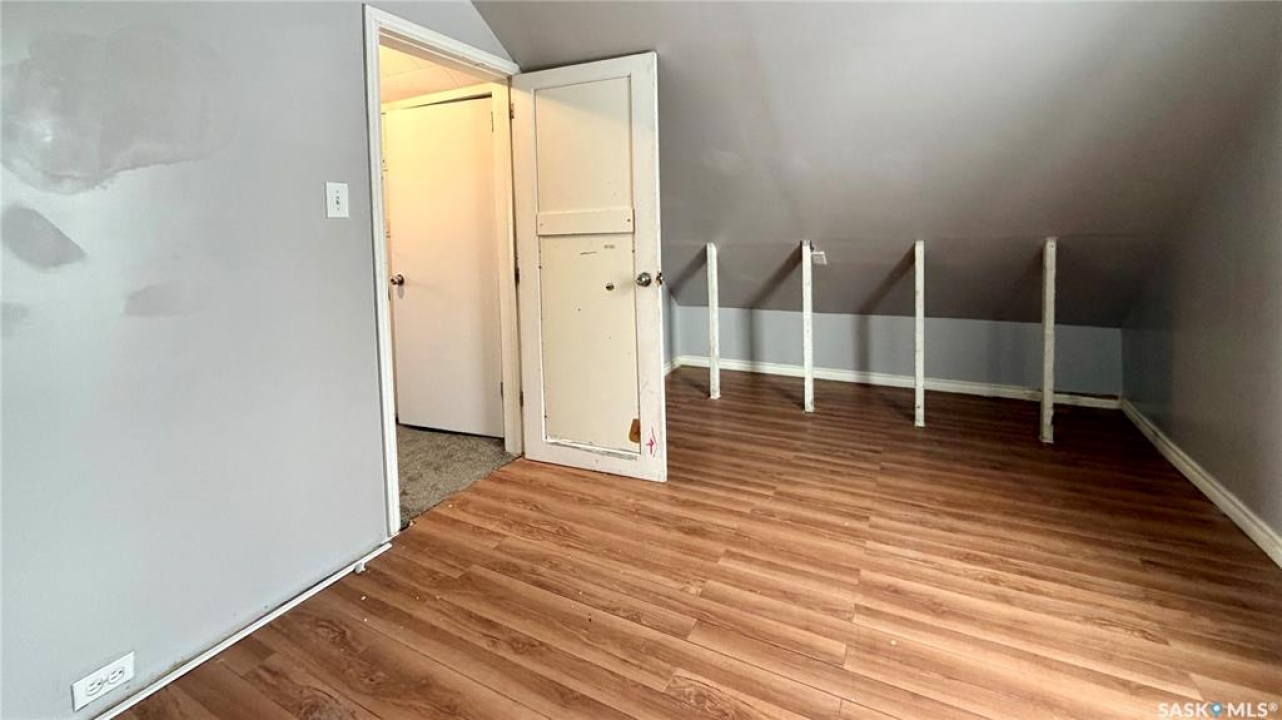 217 L Ave N, Saskatoon, SK Charming 1 �-storey home in WESTMOUNT! Built in 1927, this 863 sq ft home offers 2 bedrooms and 1 bathroom. Bright living and dining area with HARDWOOD FLOORS, functional kitchen, and front and rear porch entries. CENTRAL AIR CONDITIONING included. Upstairs features two bedrooms and a 4-PIECE BATH. Basement provides LAUNDRY and additional storage. Situated on a 25' x 125' lot with lane access to a DOUBLE DETACHED GARAGE. Fully fenced yard with lawn, shed, and private BACK DECK off the dining room. Exterior features siding and stucco with asphalt shingles. R2 ZONING with great potential!