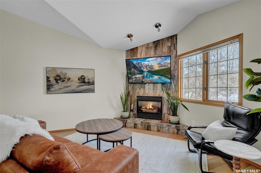 Welcome to sophisticated executive living in the prestigious gated community of Lakeshore Court. This timeless contemporary 3 bedroom plus office bungalow has been completely redesigned to offer a luxurious open concept layout with impressive vaulted ceilings and premium engineered oak hardwood flooring throughout the main level. The bright front living room welcomes you with a large picture window that fills the space with natural light. The beautifully designed kitchen is both stylish and functional, featuring maple cabinetry with soft-close drawers and cabinets, a large island with additional storage, stainless steel appliances, tiled backsplash, and Cambria quartz countertops. The elegant dining area is ideal for entertaining, highlighted by a skylight and stunning Swarovski crystal chandelier. The inviting family room offers a warm atmosphere with a fireplace adorned in classic Italian tile. The spacious primary suite is a private retreat with a wall-to-wall ergonomic closet system and a spa-inspired 5-piece ensuite featuring dual sinks, Cambria quartz countertops, heated tile floors, heated towel rack, a Kohler VibrAcoustic soaking tub, and a large 10mm glass tiled shower. A second bedroom, dedicated office with built-in bookshelves, and a conveniently located 4-piece bathroom complete the main level. The laundry room offers tiled flooring, abundant cabinetry, and direct access to the double attached garage. The fully developed basement is perfect for entertaining with a large recreation room currently set up as a home theatre with projector, built-in cabinetry, and bar area. This level also features a third bedroom, 3-piece bathroom, cedar storage room, and a large utility/storage area with HRV system, newer high-efficiency furnace, humidifier, air conditioner, steel beam construction, and web trusses. This exceptional home is located in one of the city's most exclusive communities and ready for new owners to call it home.