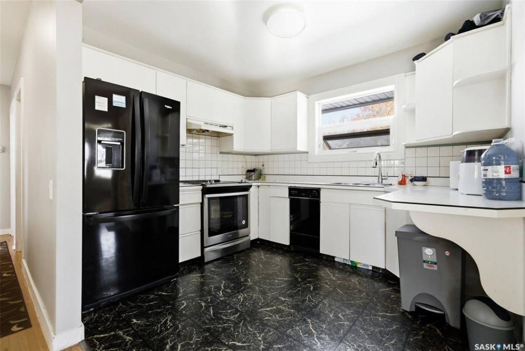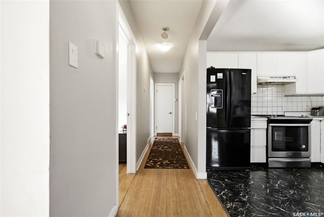 Welcome to 33 Scott Street, situated in the highly sought-after Hillsdale neighbourhood. This 1092 sq ft bungalow presents an excellent opportunity for both homeowners and investors, offering a flexible layout and strong income potential. The main floor welcomes you with a bright and spacious living room, highlighted by large windows, original hardwood and provides options for a dining area/living room space. The kitchen is open and includes all appliances, and looks out into the spacious backyard. This level includes three comfortable bedrooms and a full 4-piece bathroom, providing a practical and family-friendly layout. The basement features a non-regulation suite with its own separate living area, making it an ideal mortgage helper or space for extended family. You'll find two additional bedrooms, a 4-piece bathroom, a kitchen, and a cozy living room. Also downstairs, you will find a large utility room for storage, and the shared laundry. Outside, the property offers a generous yard with plenty of space to relax, garden, or enjoy outdoor activities. As well as a 3 car driveway, with potential to access the backyard to build a future garage. This home has been fully braced, as well as the north half of the home blueskinned in 2025 with new sump pump. Located just minutes from the University, one block from Marion Mcveety school, parks, shopping, and public transit, this home combines comfort, convenience, and investment potential. Whether you're a first-time buyer, growing family, or savvy investor, 33 Scott Street is a fantastic opportunity in a prime location.