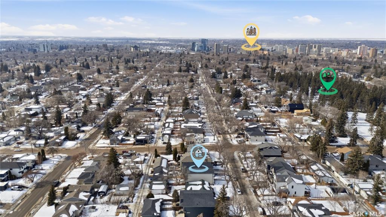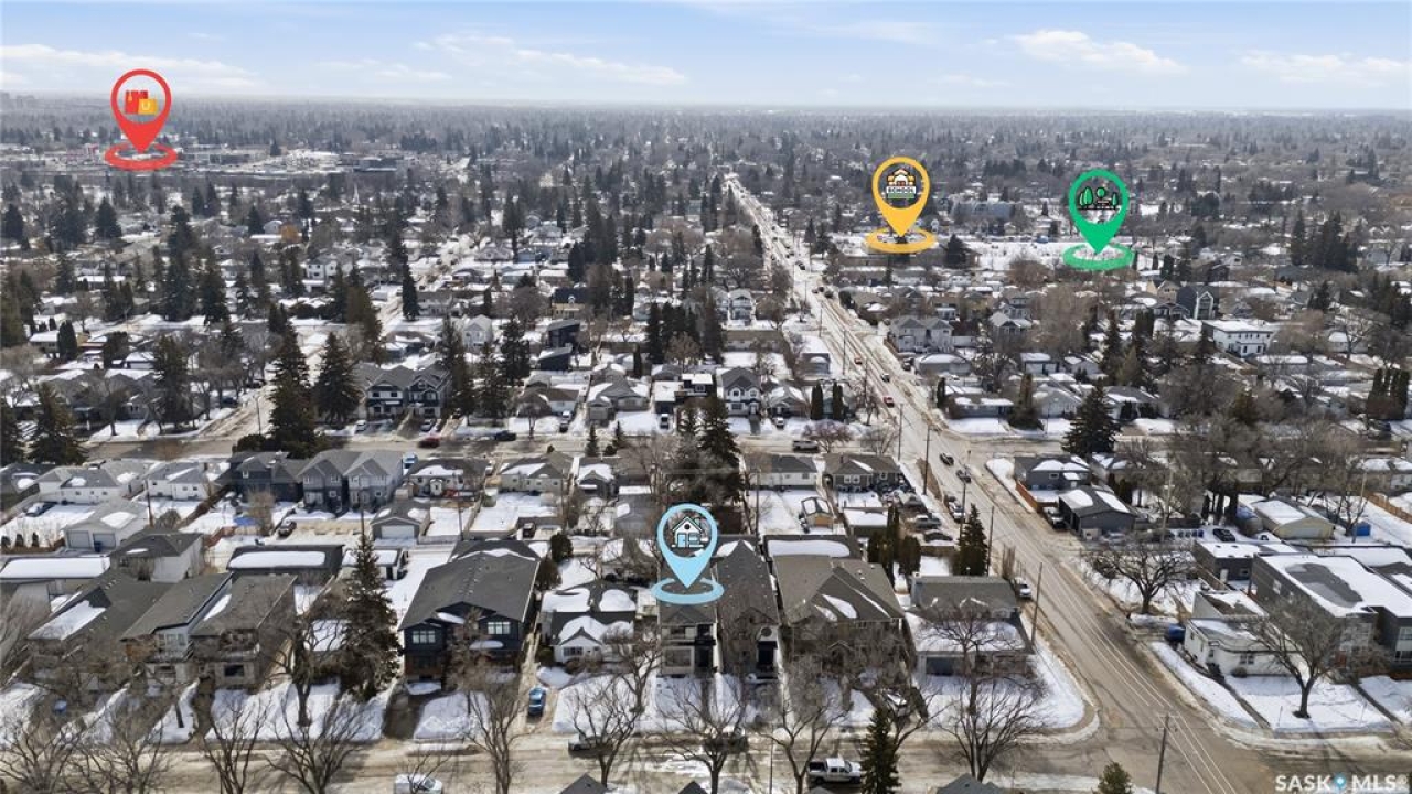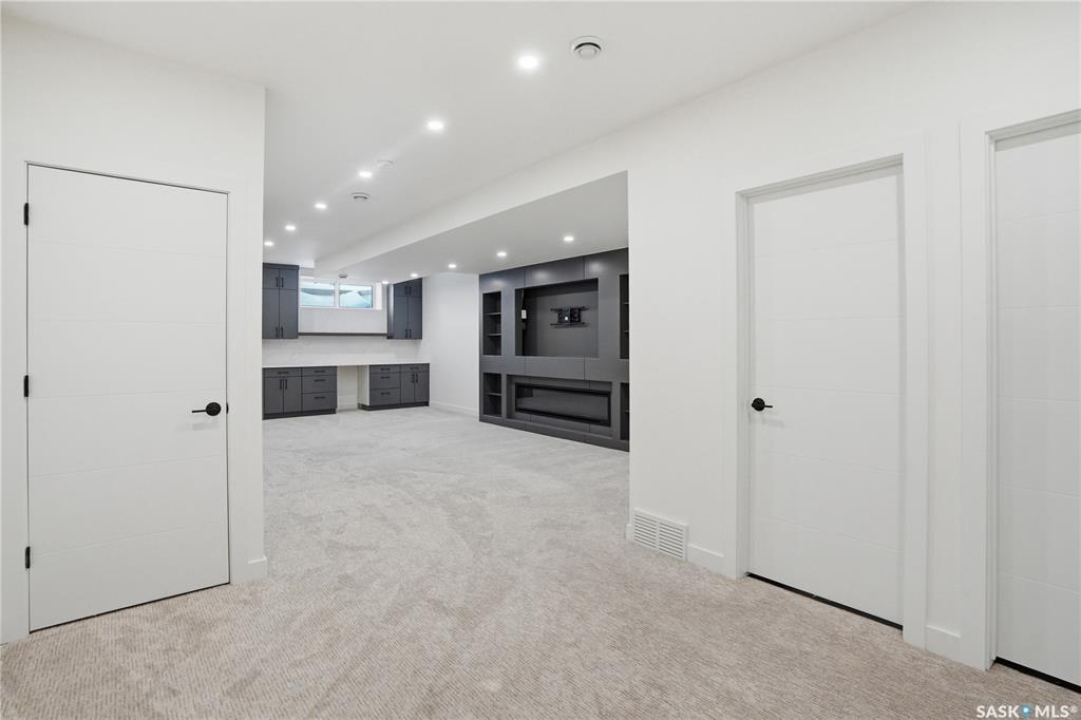 Welcome to 1312 15th Street East, a former Lexus show home, nestled in the prestigious Varsity View neighborhood. This 1,944 sq ft two-storey residence offers refined elegance and premium living throughout. Step inside to a stunning open-concept main floor, where engineered hardwood floors flow seamlessly beneath 10 ft ceilings. A gas fireplace with custom modern trim anchors the living space, while a bespoke wine bar with integrated fridge leads to the high-end kitchen. Designed for both function and style, the kitchen features a large island with seating, pendant lighting, stainless steel appliance package including a convection oven and custom hood fan, two-tone soft-close cabinetry to the ceiling with walnut accents, tile backsplash, and quartz countertops. Enjoy direct access to the rear deck, complete with built-in seating and hooks. A 2-piece powder room completes this level. Upstairs, the spacious primary suite showcases a custom ceiling detail, a walk-in closet with built-in organizers, and a luxurious 4-piece ensuite featuring in-floor heat, a soaker tub, 24x24 tile flooring, and a walk-in tile shower with 10mm tempered glass. Two additional bedrooms, a full 4-piece bathroom with tile shower, and a dedicated laundry room complete the second floor. The fully finished basement offers 9 ft ceilings, recessed lighting, plush carpet with upgraded underlay, a generous family room with electric fireplace, and a custom composite panel feature wall. Entertain effortlessly with the bar, complete with quartz countertops and backsplash. This level also includes a 3-piece bathroom with walk-in tile shower, an additional bedroom, and mechanical room. Thoughtfully curated with cohesive, high-end finishes throughout, home includes motorized blinds on main. The exterior features a composite deck, landscaped yard, and walkway leading to a heated double detached garage with flex seal flooring. Ideally located near the South Saskatchewan River, university, schools, parks.