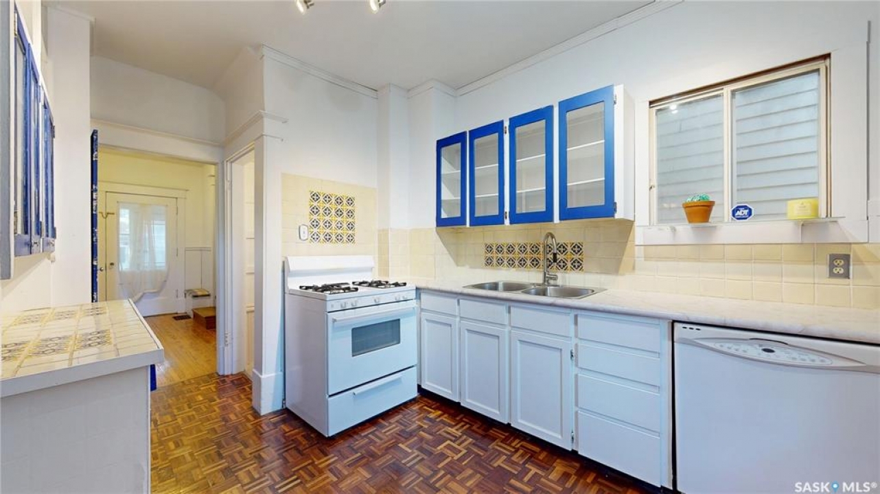 Location, Location, Location! Welcome to this charming character home in Regina's highly desirable Cathedral neighborhood. Known for its vibrant community and incredible walkability, this area boasts one of the best walk scores in the city. Enjoy tree-lined strolls to nearby coffee shops, restaurants, grocery stores, schools, and entertainment. Both Downtown Regina and Wascana Park are just a short walk away. Built to last, this home retains its original charm while showcasing thoughtful updates that enhance its timeless appeal. Beautiful hardwood flooring runs throughout, accented by freshly refinished doors and window frames. The spacious kitchen features a gas range, built-in dishwasher, and plenty of storage — ideal for both everyday cooking and entertaining. Vaulted ceilings in the main living spaces create an airy, open feel. Recent updates include fresh paint throughout, new faucets and lighting fixtures, and shingles replaced within the last 6 years. Upstairs you'll find three generous bedrooms, including a primary suite with a walk-in closet. Another large bedroom offers the opportunity to add a door leading to a potential balcony overlooking the tree-lined street. Step outside to your private backyard oasis, perfect for entertaining or relaxing. A large deck overlooks the lawn, outdoor fireplace, raised garden beds, and mature cherry and apple trees alongside blooming yellow roses. This rare Cathedral gem blends historic character with modern updates — all in a location that's second to none. Don't miss your chance to make it yours!