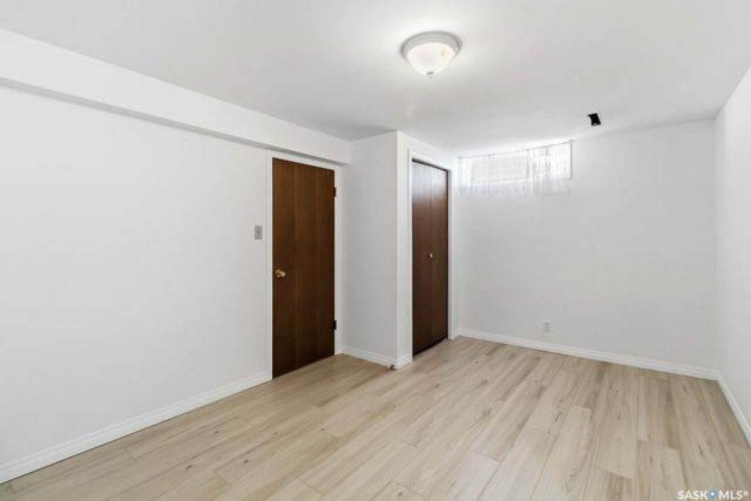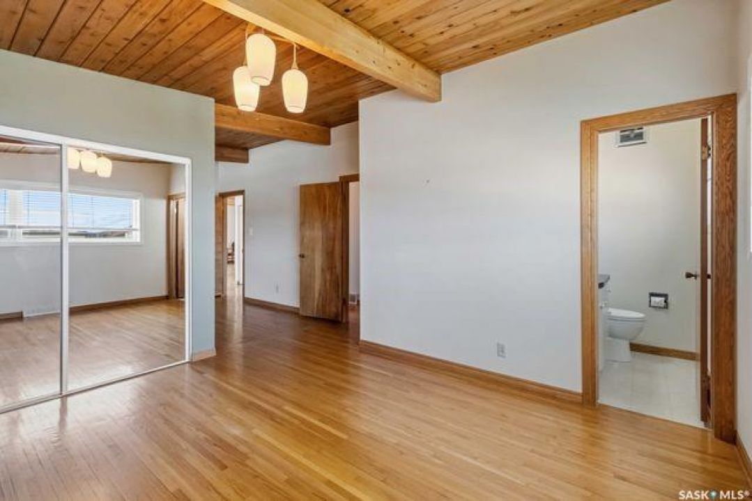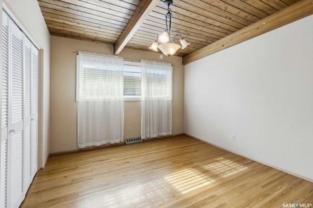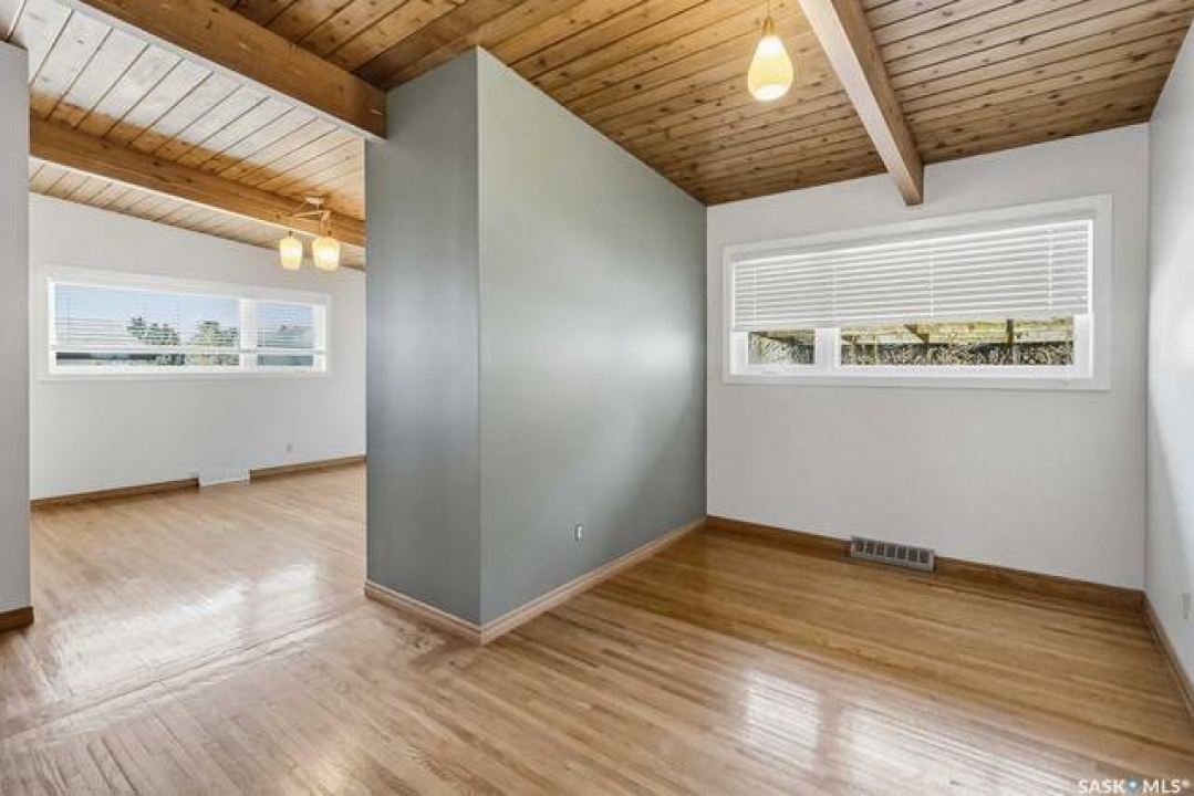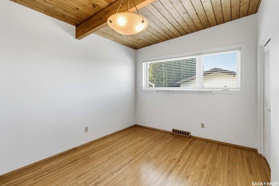 Looking for your forever home?!? This could be it. Spacious and bright this mid-century modern bungalow (1522 sq ft) is on a large lot that backs James Anderson Park. The location is unbeatable situated on a beautiful cul de sac, in the heart of East center, with shopping and services close by (market mall). The morning commute will be that much easier for your kids as both elementary and high schools are in walking distance. Take advantage of the walking paths that connect the parks in the area. This solid house was custom designed and built with post-and-beam construction. The main living area is stunning, featuring an abundance of natural light from the beautiful East facing windows. The original hardwood floors keep the character of the house which run throughout the main living areas and all bedrooms. There is plenty of brick and wood adding warmth and character to the space including the brick fireplace (mostly ornamental).The main floor has 3 huge bedrooms. The primary bedroom measures 13.9 X 23.10 has views of the park, and a 2-piece ensuite. This room could very easily be converted back to a 4th bedroom depending on your needs. The basement features a huge family room with gas fireplace, and retro bar with a fridge and sink. Additionally, there is another bedroom and 3 piece bath which have both been recently upgraded. The backyard is truly special and incredibly manicured (a definite gardeners paradise). There is plenty of space to enjoy thanks to the oversized lot which has direct park access. Plus, the property includes an oversized heated workshop (15 wide X 30 deep) with a 220V plug. This space was used as a wood working shop but would also be ideal for mechanics, hobbyists, or a place to escape from it all. Additionally, the roof was recently redone giving buyers piece of mind for years to come. This is a rare opportunity to own a spacious, character-filled home in a fantastic location steps away from parks, space, and community.