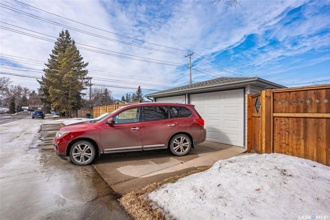 IMMACULATE bungalow in Brevoort Park located on an OVER SIZED corner lot!! Pride of ownership is definitely evident in this property! Many upgrades over the last few years such as shingles, triple pane windows on the main floor, newer exterior doors, furnace and water heater new in 2021, brand new dishwasher. Spacious east facing Livingroom which is open into the separate eating area. Custom designed oak kitchen. Newer stainless steel appliances. 3 bedrooms on the main along with a 4 piece bathroom including a deep soaker tub. Hardwood floors underneath all the carpeted areas. Basements offers separate entrance to a updated non-conforming suite. There are 3 layers of sound proofing (way more than what is required) Shared laundry room with main floor. Modernized suite with Ikea cabinets complete with eating ledge. it features a large 4 piece bathroom with an over-sized jacuzzi tub. one bedroom and a den (it has a window and closet but fairly small room) Central air & Central Vac. Beautifully landscaped yard complete with pergola situated on interlock brick pad and is enclosed with fruit producing grape vine. Other fruit trees include goji berries, Haskap's, Saskatoon berries and Cherry tree PLUS garden spot/boxes. Underground sprinklers with drip lines through the whole yard. Concrete curbing is a great touch! 6 foot Cedar fence with 12ft removal portion for the RV parking which is right next to the Double HEATED garage. 2 newer door openers. House and garage are maintenance free with vinyl siding. Located in fantastic neighborhood of Brevoort Park!! Short distance to 8th street shopping and Market mall! Whether you are looking for an investment property, your first time home with a mortgage helper, or a convenient place for extended family members, this property is what you've been searching for!!