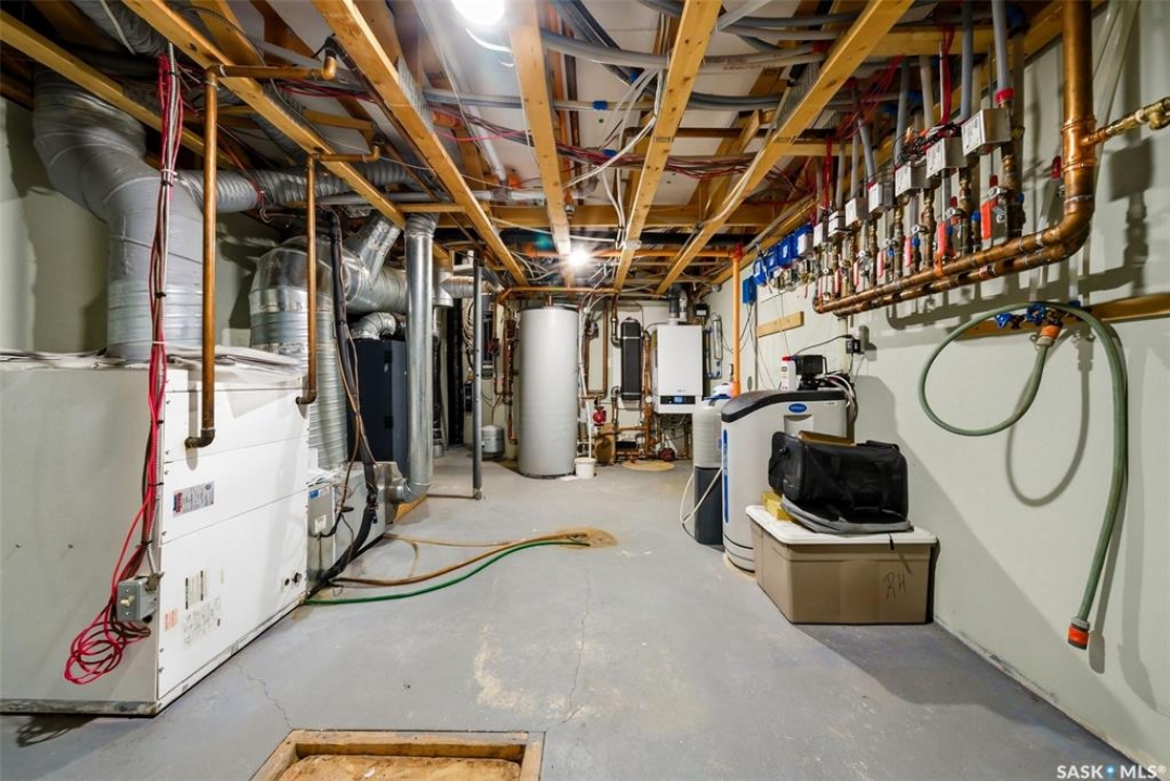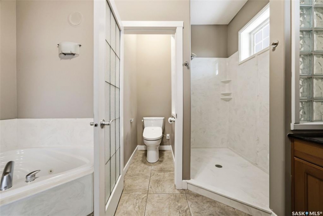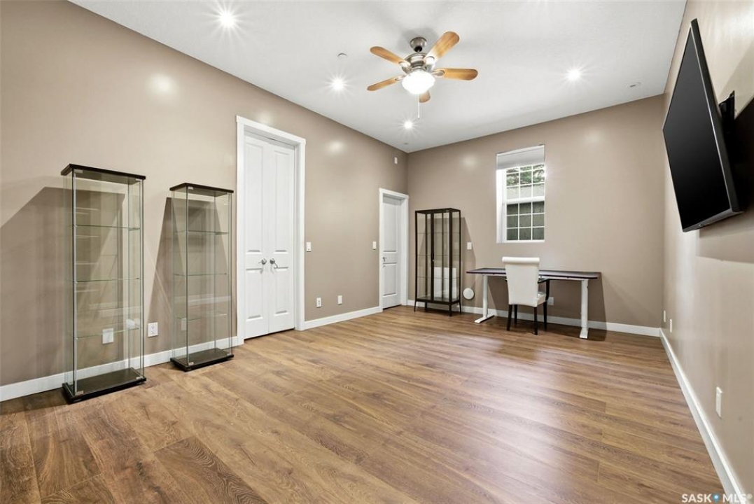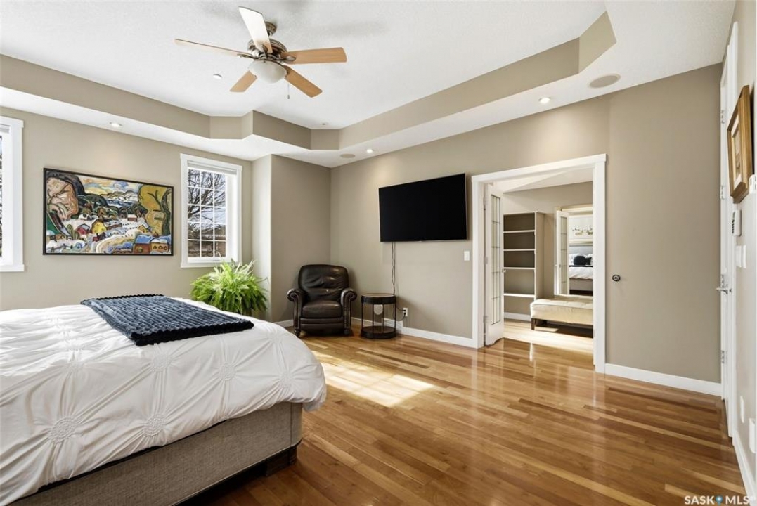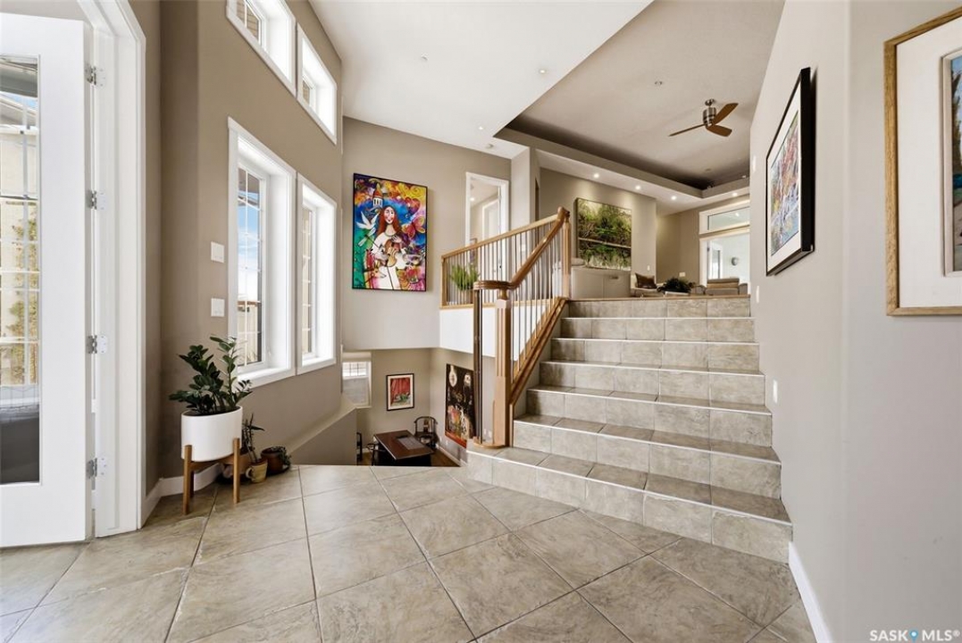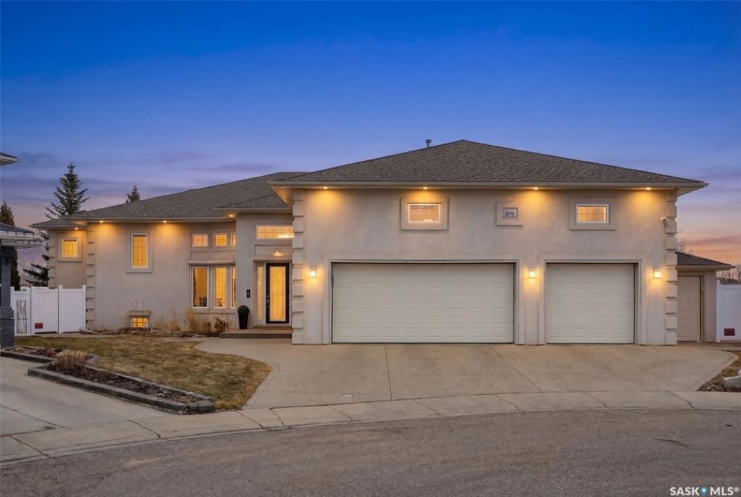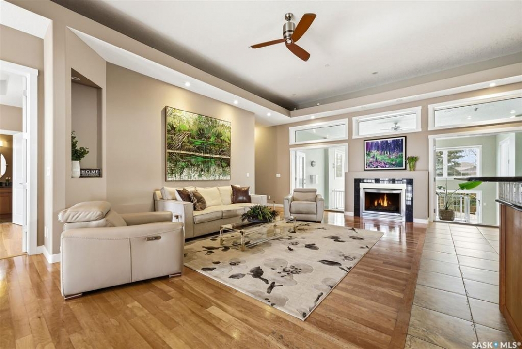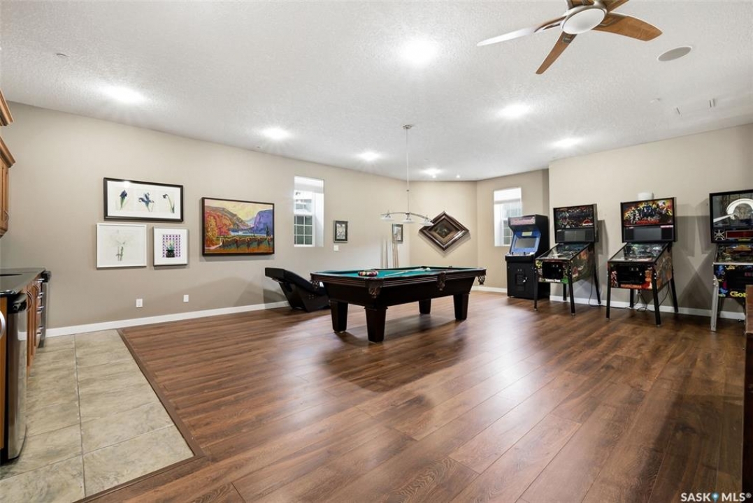 One of a kind in every sense, this custom built home was thoughtfully designed from the ground up. Offering over 3,600 sqft on the main level alone, from the moment you step inside, the scale and quality are undeniable. Featuring 10-ft ceilings & 8-ft doors throughout, hardwood flooring, dimmable pot lighting & expansive windows creating a bright, airy, space that feels more than grand. In the heart of the home, you'll find a chef's kitchen with cherry cabinetry, granite countertops, ceramic tile & walk-in butler's pantry. The open-concept kitchen, dining & living rm layout flows into the stunning four-season sunroom with poolspa, separated by a 2-way gas fireplace creating the coziest space. The main level is complete with 4 generous sized bedrooms with ceiling fans, walk-in closets & direct access to a bathroom. 2 more bedrooms & another bathroom on the fully developed lower level, where you will also find a projector & full-screen theatre setup, pool table, gas fireplace & wet bar complete with granite top, sink, mini-fridge & dishwasher. The perfect space for teenagers, a growing or extended family & friends. Comfort and efficiency were top priorities in the design with radiant in-floor heating, powered by a boiler system & furnace (2023), air exchanger & humidifier. Additional features include reverse osmosis. air exchanger &humidifier, built-in sound system, 200-amp service, backup generator, electric roll-up security shutters, cold storage &built-in fire sprinkler system. The oversized triple garage (tandem for 4 vehicles) includes a separate 125-amp panel, floor drain, side overhead door for backyard access, and a loft space ideal for a workshop. Outside, the expansive crescent lot is fully fenced yard with mature trees, fenced garden & outdoor kitchen. Located on a quiet cul-de-sac & steps from Jack Mackenzie &St.Gabriel, Sandra Schmirler Leisure Centre &all east-end amenities. A truly distinctive property in one of Regina's most established neighborhoods.