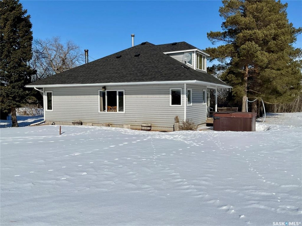 Escape to peaceful country living with direct access off of Highway 20 and just minutes from Bulyea! This beautiful 10.87-acre acreage is ideally located approximately 0.5 km from town, a 15 minute drive to Rowan's Ravine Provincial Park, and only 35 minutes from Regina—offering the perfect balance of convenience and privacy. Built in 1996, this spacious two-storey home features 3 bedrooms and 2 bathrooms, with a bright, open-concept main living area filled with natural light. The home offers both comfort and character, including a WETT-certified wood stove and a cozy gas fireplace. Upstairs, you'll find a versatile layout with a family room, office space, an additional bedroom, and storage, plus room to add another bathroom—ideal for growing families or guests. Step outside and enjoy your own private retreat, complete with a covered deck off the back of the home, perfect for relaxing or entertaining. The yard features a mature shelterbelt, established perennial gardens, a great garden area, and an abundance of wild Saskatoon and chokecherry bushes. Unwind year-round in the 2-year-old saltwater hot tub and take in the peaceful prairie views. The property is well-equipped for country living with a deep well (drinking water tested March 2026),There is a single garage and a heated workshop with shingles replaced on both in 2022, and new shingles on the house also completed in 2022. There is plenty of parking space for vehicles, trailers, and recreational toys. Families will appreciate convenient school bus service to the elementary school in Bulyea and to the high school in Strasbourg, just 10 minutes away. This is a rare opportunity to own a well-maintained acreage with space, privacy, and endless potential—all within an easy commute to the city and close to lake life amenities.