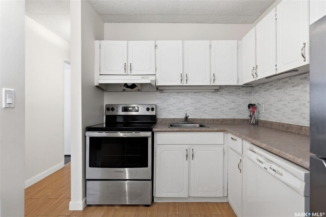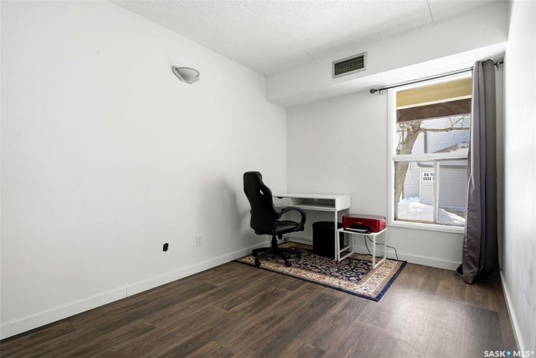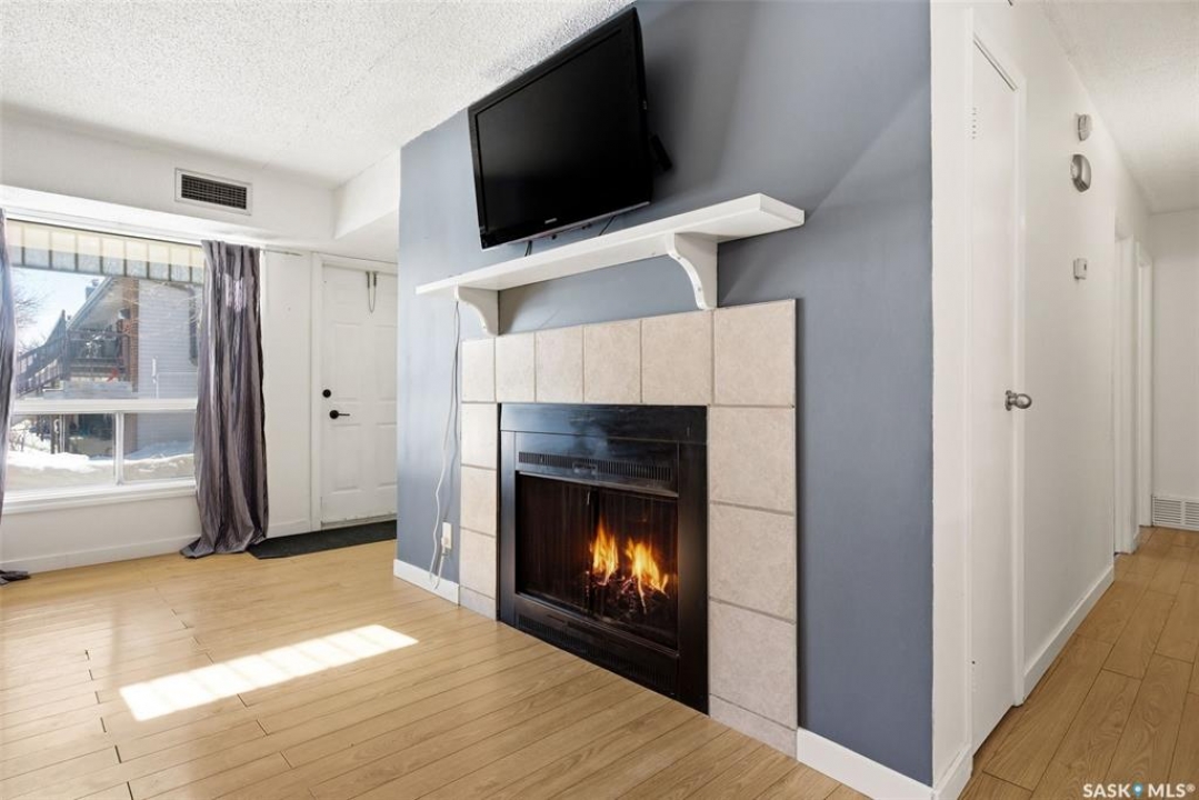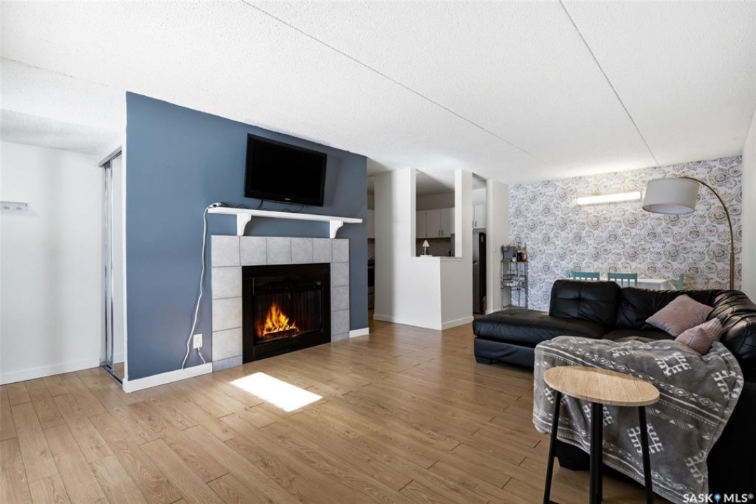 Welcome to this beautifully updated 2 bedroom condo in the heart of Normanview West, where comfort, style, and convenience come together effortlessly. Step inside to a functional front entry with convenient coat storage, leading into a bright and spacious open-concept living and dining area. The living room offers an impressive amount of space to relax or entertain, while the dining area flows seamlessly off the kitchen—perfect for everyday living. The fireplace has been decommissioned but offers an aesthetic flare. The kitchen features ample cabinetry and newer stainless steel appliances (2023), blending practicality with a clean, modern feel. Down the hall, you'll find a fully renovated bathroom (2023) that is fresh, modern, and stylish, complemented by updated paint and baseboards (2023) throughout the unit. The primary bedroom is generously sized, easily accommodating a king bed, and features a walk-in closet with a chic pink accent wall for a touch of personality. The second bedroom is also spacious and versatile, ideal for guests, a home office, or both. Enjoy the added convenience of in-unit laundry with plenty of storage space, along with year-round comfort thanks to a new furnace (2024) and central air conditioning. Step outside to your own lovely patio space—perfect for morning coffee or unwinding at the end of the day. Located within walking distance to Starbucks, grocery stores, a gym, restaurants, a movie theatre, and more, this condo offers an unbeatable lifestyle in a well-established neighbourhood. Complete with one electrified parking stall, this is a fantastic opportunity for first-time buyers, downsizers, or investors alike.